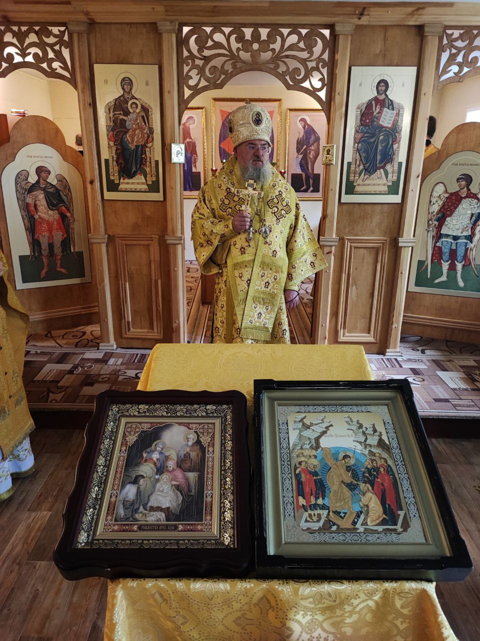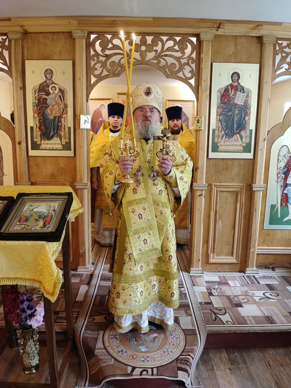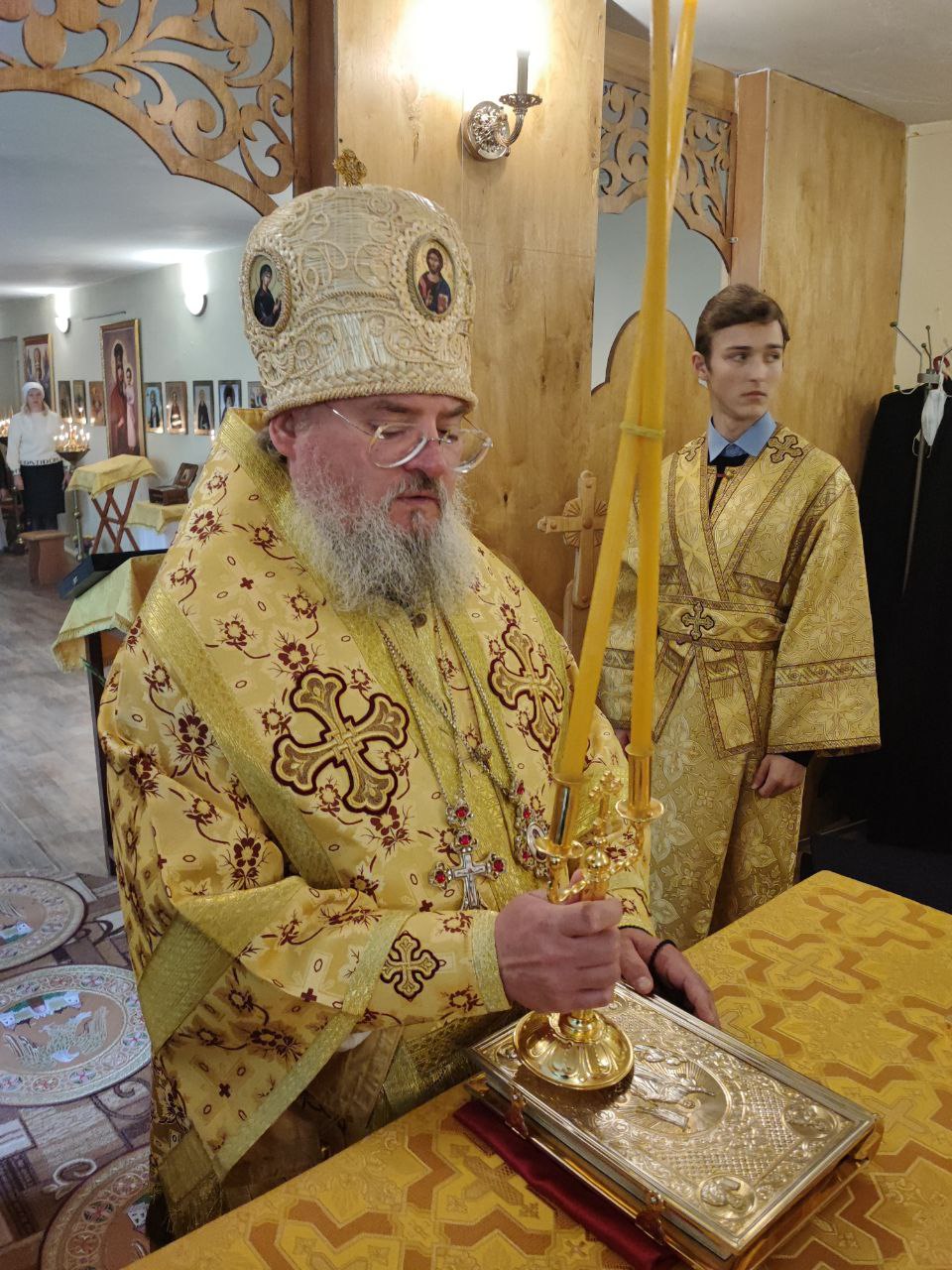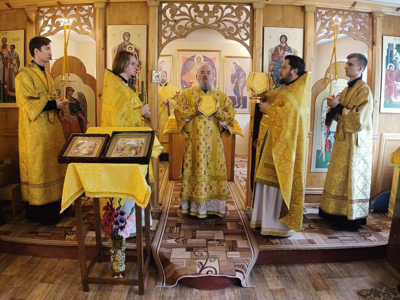 Архипастырю сослужили: протоиерей Антоний Хатунцев, иерей Кирилл Кислов – настоятель храма, диакон Евгений Ковригин и иеродиакон Лука (Старостин).