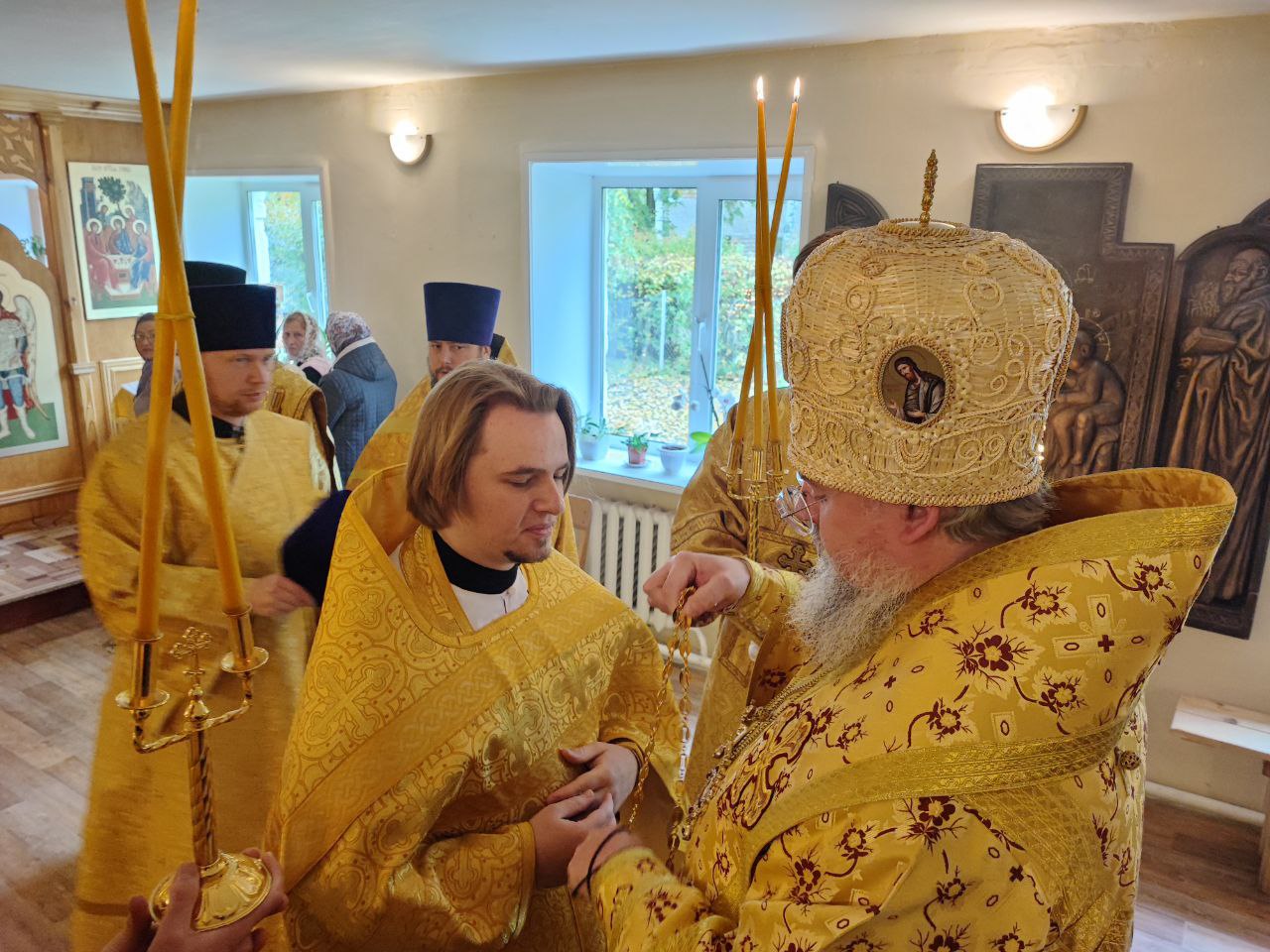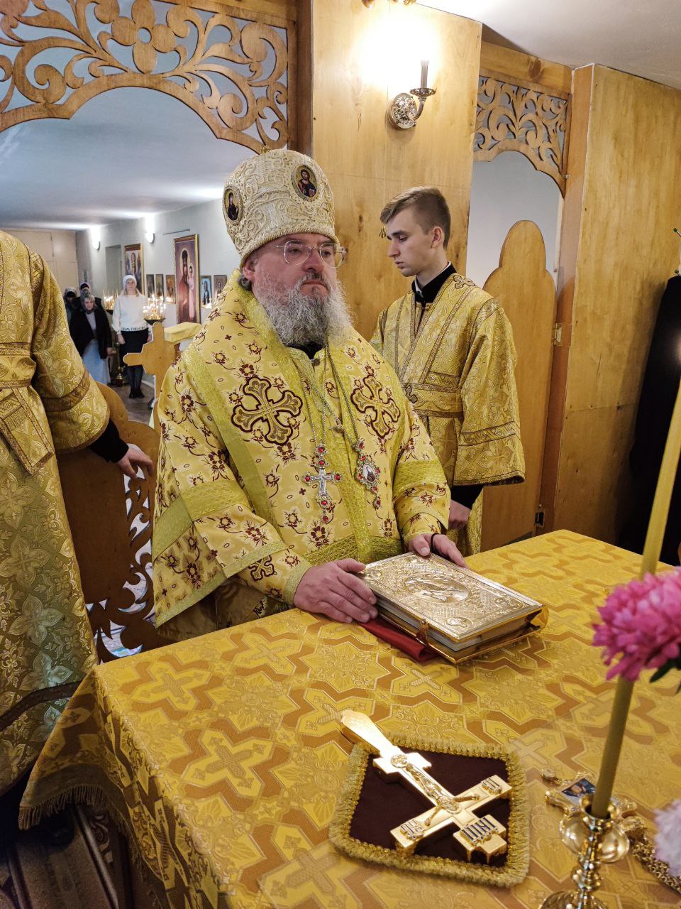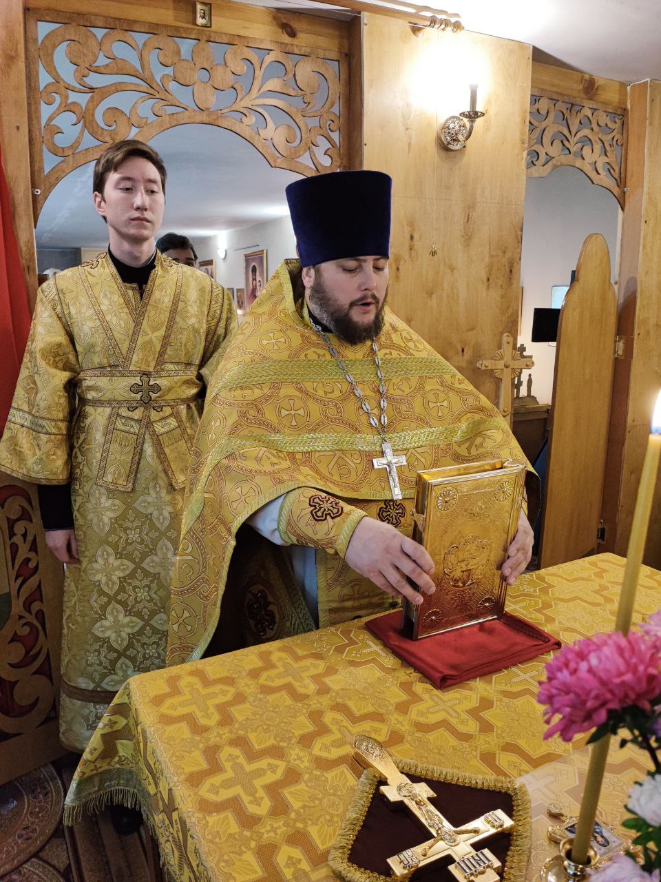 На Малом входе, во внимание к усердным трудам во славу Святой Православной Церкви, иерей Кирилл Кислов был удостоен права ношения наперстного креста золотого цвета.