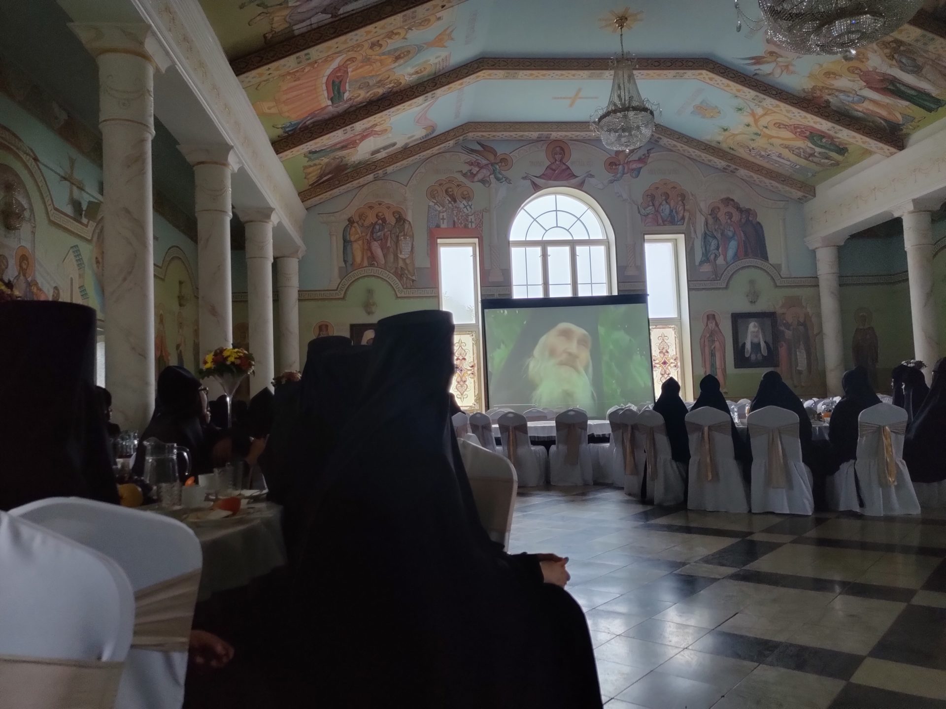 Собрание возглавила игумения Николая (Ильина), рассказавшая о старце Иосифе Исихасте с его духовными преемниками и о том, как их женский монастырь породнился с Афоном.