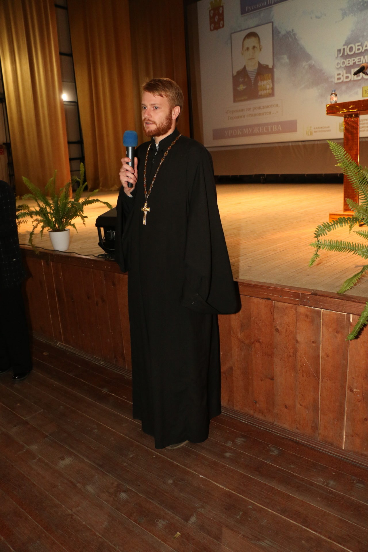 28 сентября в культурно — досуговом центре Козельского района прошла выездная конференция в рамках Богородично — Рождественских образовательных чтений Калужской митрополии «Глобальные вызовы современности и духовный выбор человека». В рамках конференции была проведена молодежная дискуссионная площадка «Урок мужества». Участники площадки — учащиеся старших классов из семи районов Калужской области. Со словами приветствия к ребятам обратился иерей Елисей Тимофеев — сотрудник молодежного отдела Козельской епархии.
