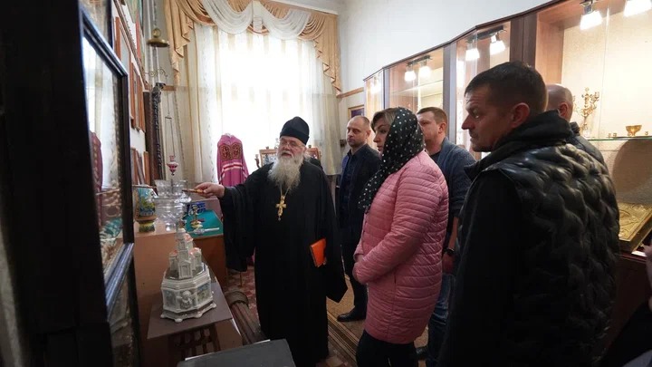 В завершении официальной части отец Алексий пригласил всех участников круглого стола в Казанский кафедральный собор, где кратко рассказал историю собора, провёл экскурсию, показав святыни храма. Гости также посетили церковно – краеведческий музей Казанского собора, где увидели и узнали много нового и интересного из истории храма, о людях, причастных к жизни собора. В экспозиции народного быта экскурсанты погрузились в русскую старину. Посетили гости и Духовно – просветительский центр «Светоч», прошли по помещениям, посмотрев классы воскресной школы и актовый зал центра.