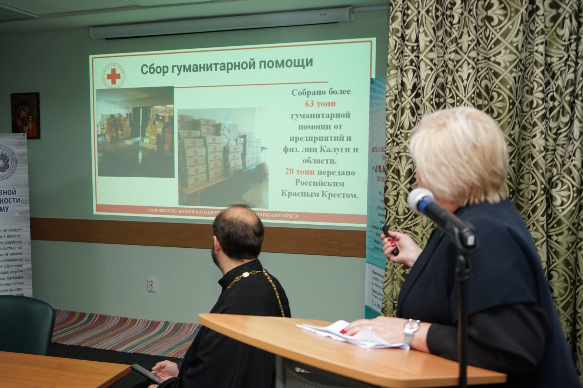 Далее прозвучали доклады по теме оказания помощи беженцам со стороны Церкви, благотворительных и волонтерских организаций Калужской области: