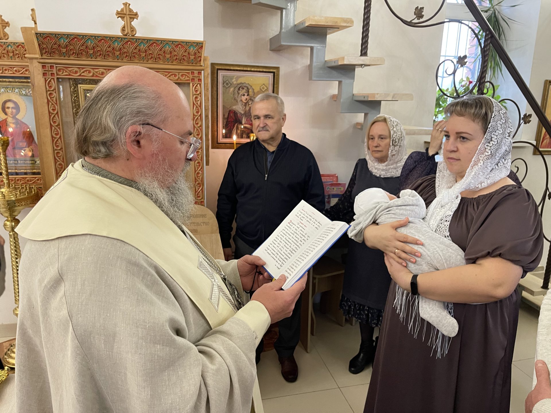 1 октября. Епископ Козельский и Людиновский Никита посетил село Овсорок Жиздринского района где в храме святых первоверховных апостолов Петра и Павла совершил таинства Крещения и Миропомазания над внуком ктитора храма Кленова Николая Николаевича младенцем Алексием.