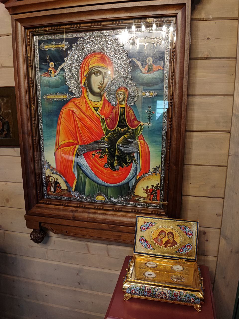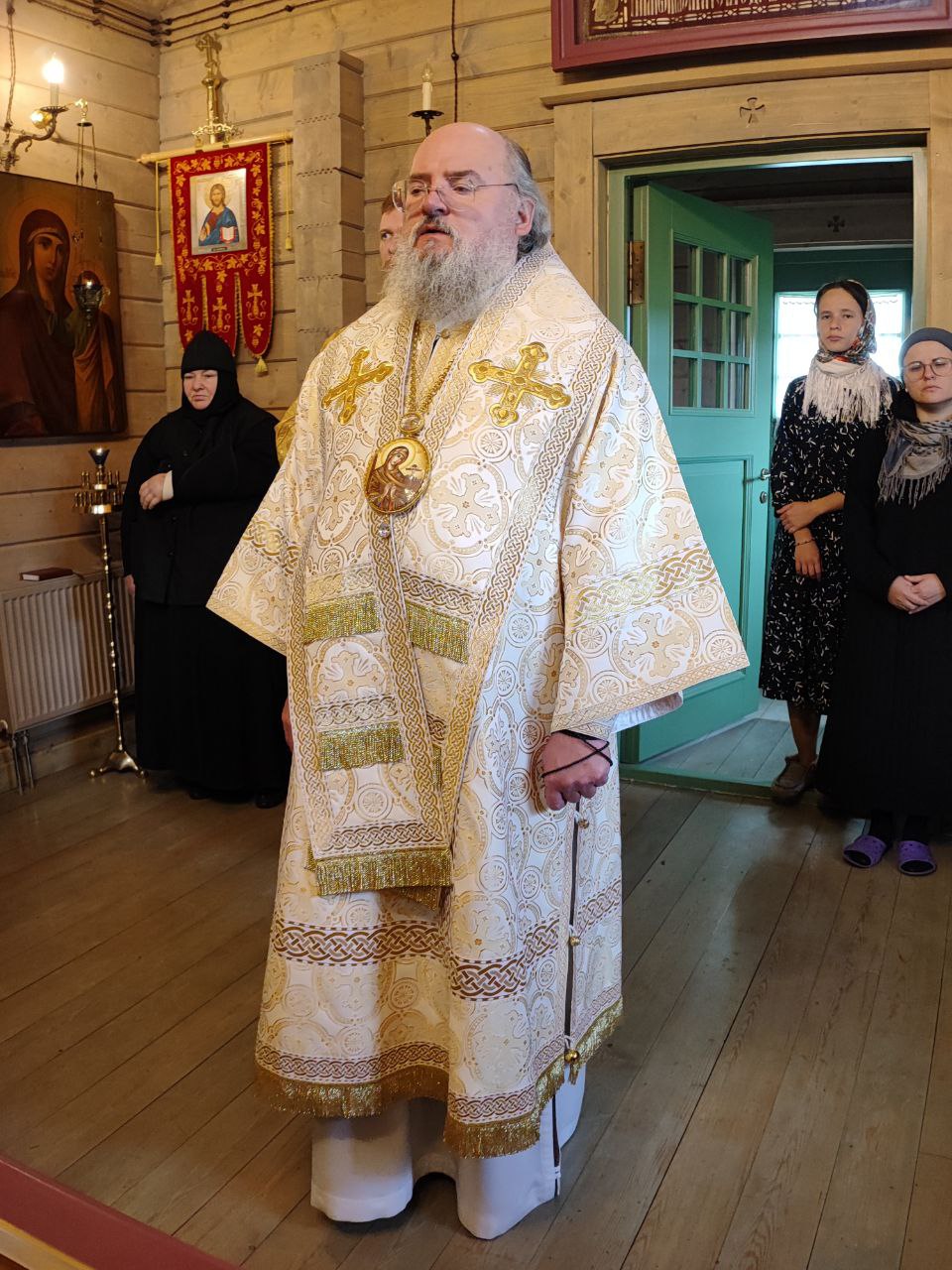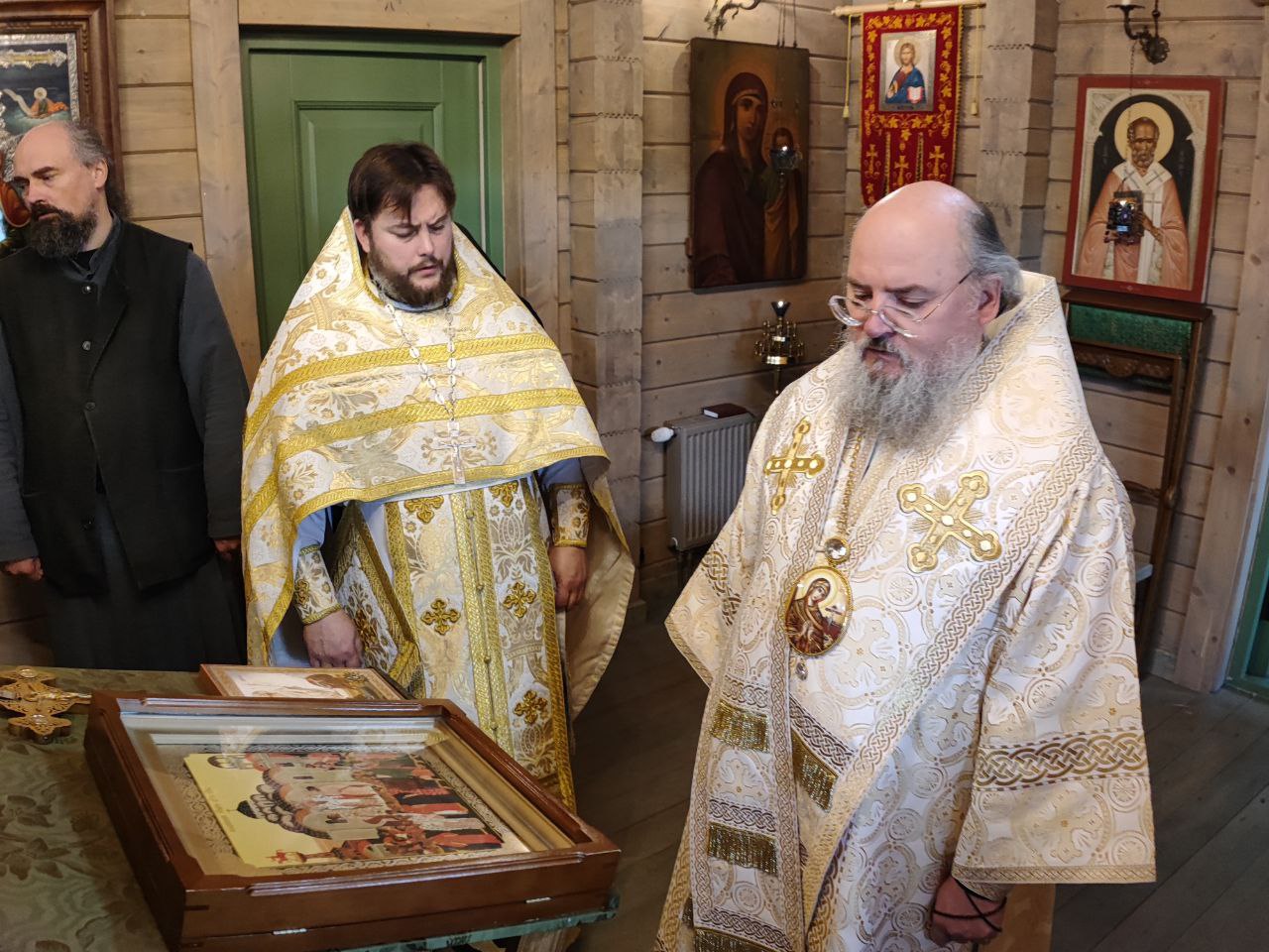Владыка для поклонения привез в обитель мощевик   в котором находятся частичка мощей святой праведной Анны, частички пояса, ризы и сандалии Пресвятой Богородицы.