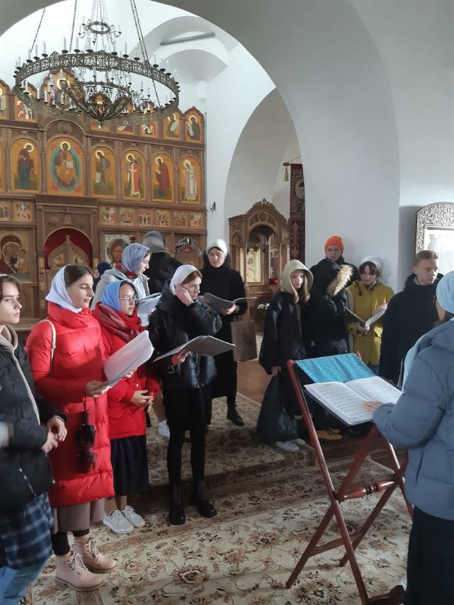 Ребята вместе с музыкальным руководителем исполнили тропари святым и другие песнопения в храме. И поблагодарили батюшку за рассказ и экскурсию.