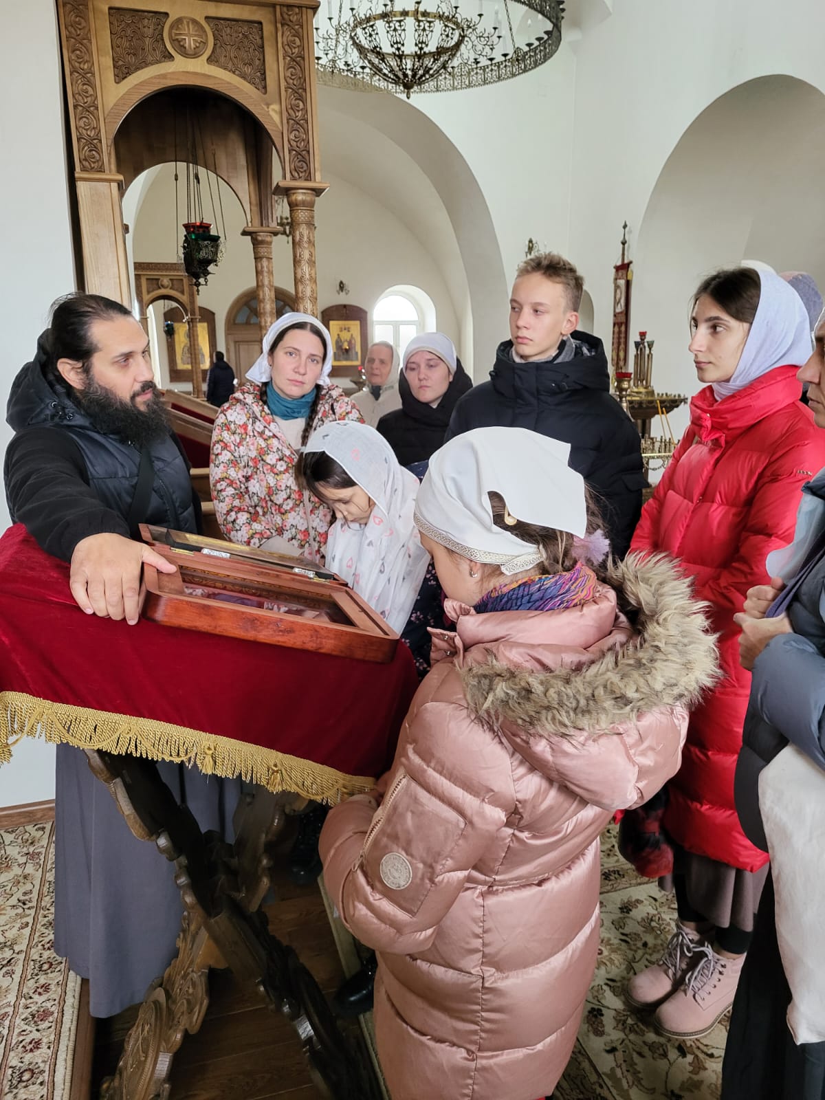 Настоятель храма иерей Максим Изопов встретил ребят, рассказал им о святынях храма, показал прихрамовую территорию и парк со скульптурами святых благоверных князей Петра и Февронии. Также рассказал историю возрождения храма, как по Божиему великому промыслу устраивалось строительство и ещё много интересного.