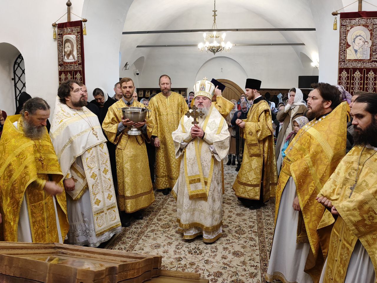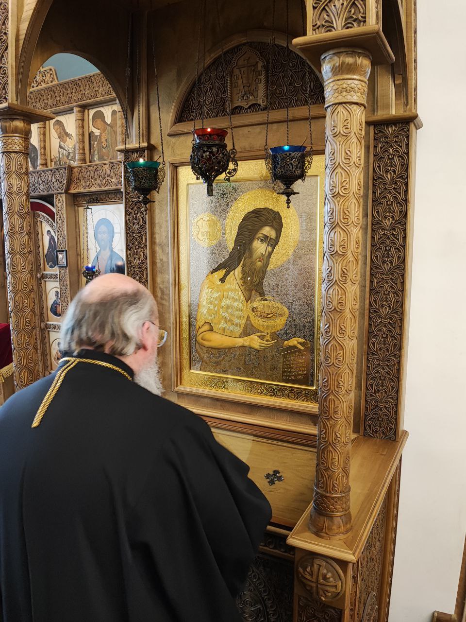 По отпусте литургии был совершен молебен, в завершение которого, вознеся молитву Честному Славному Пророку Предтече и Крестителю Господню Иоанну, владыка обратился к богомольцам с проповедью.