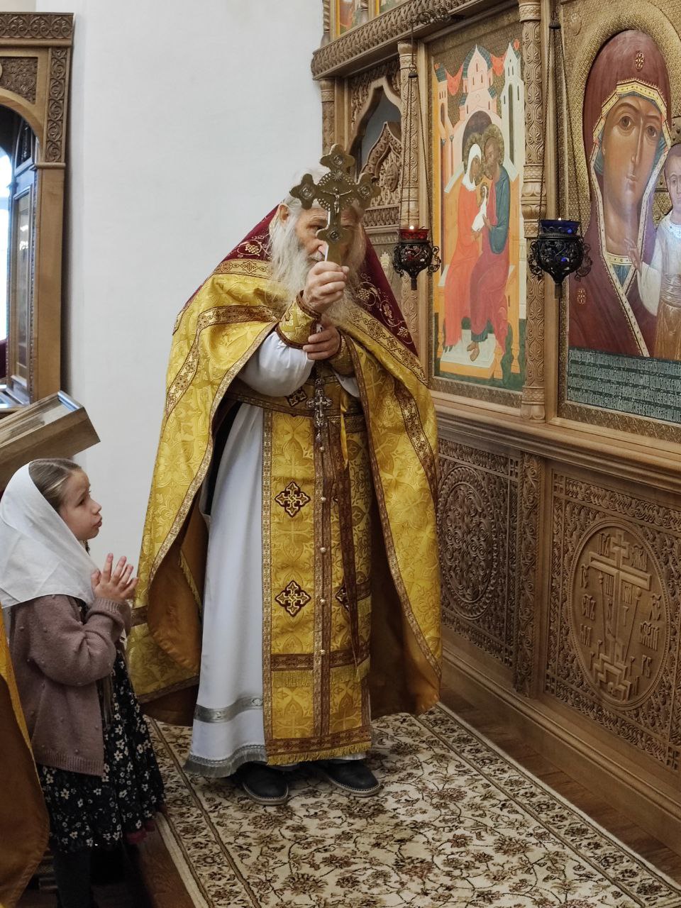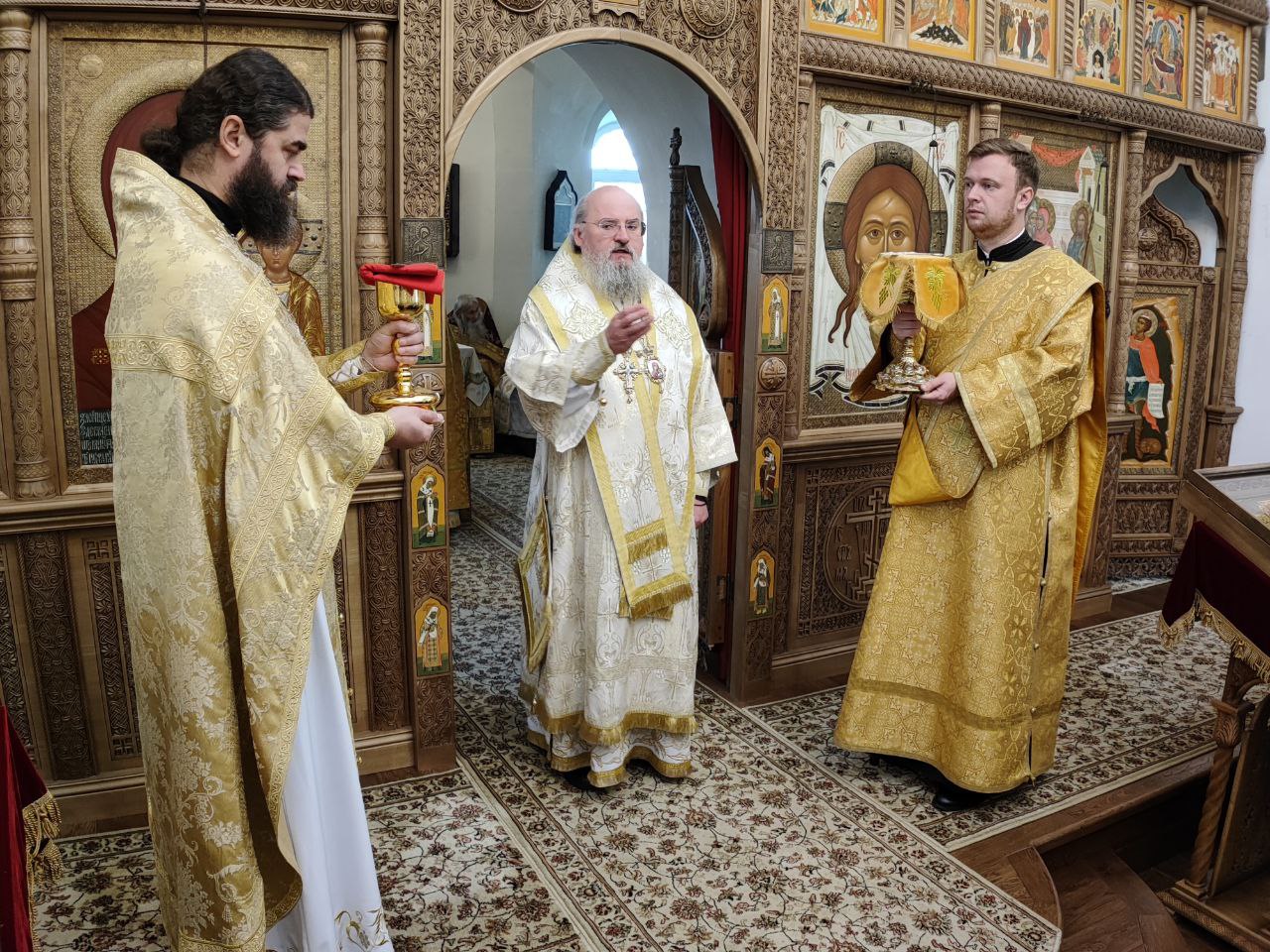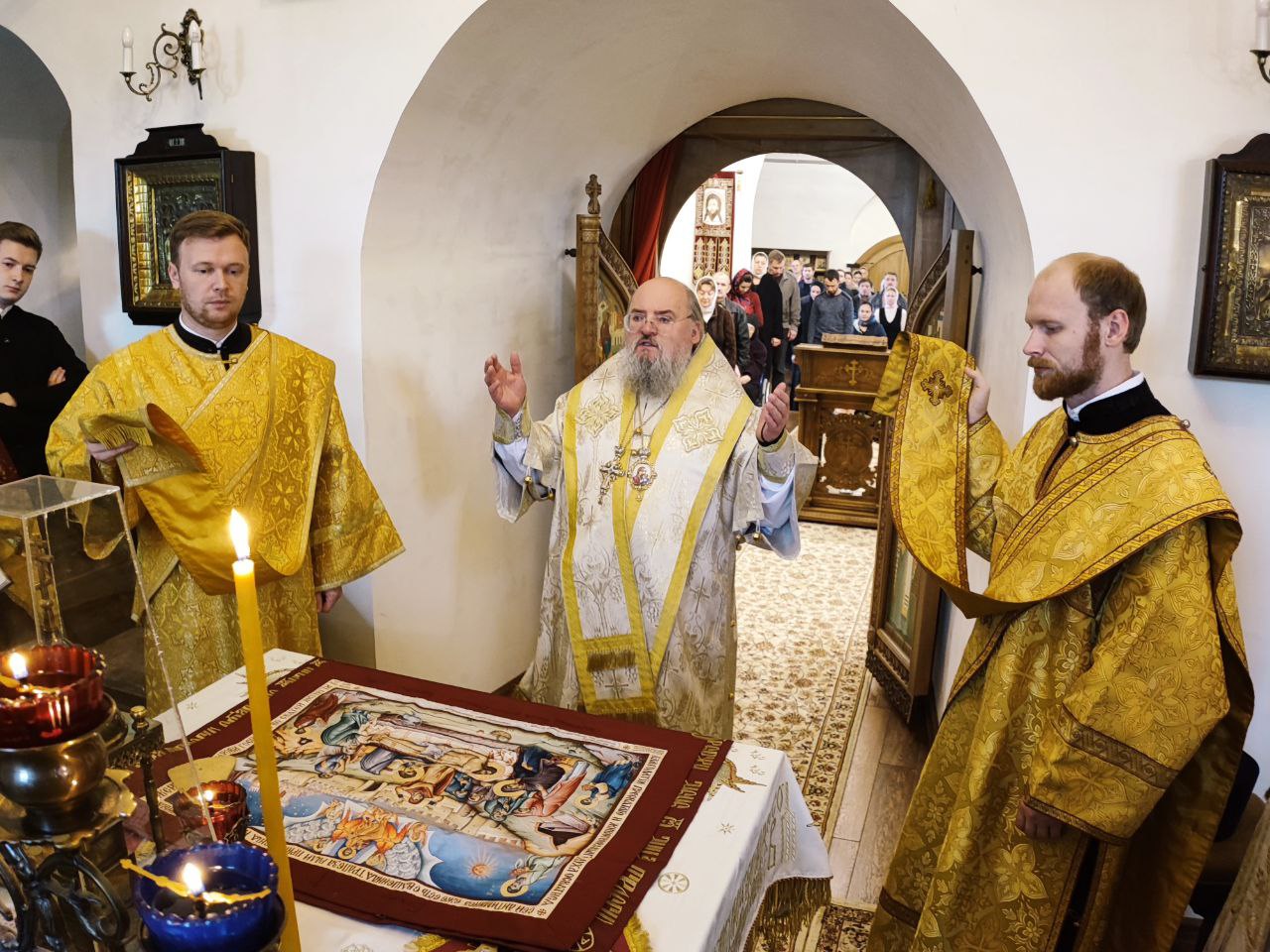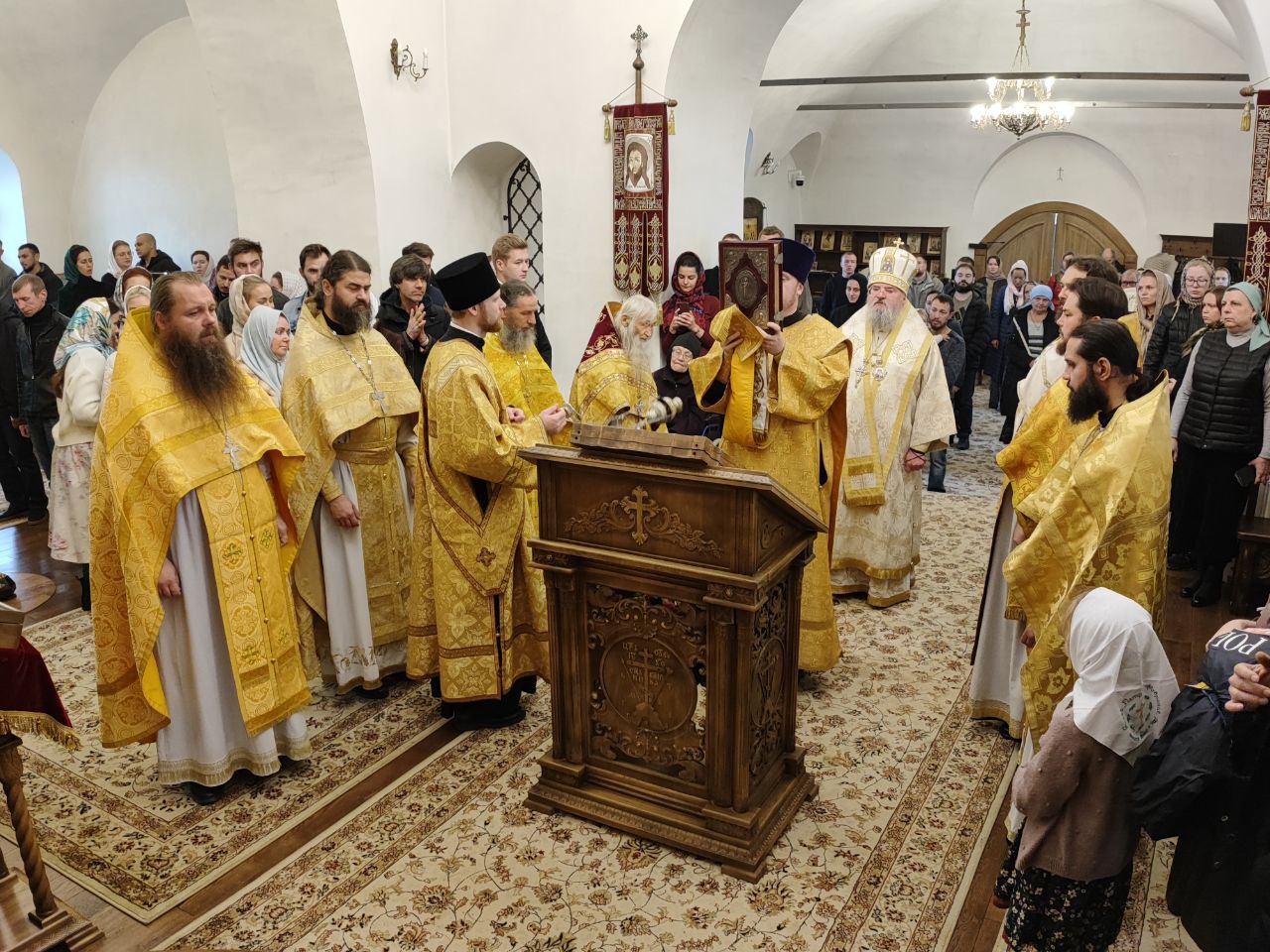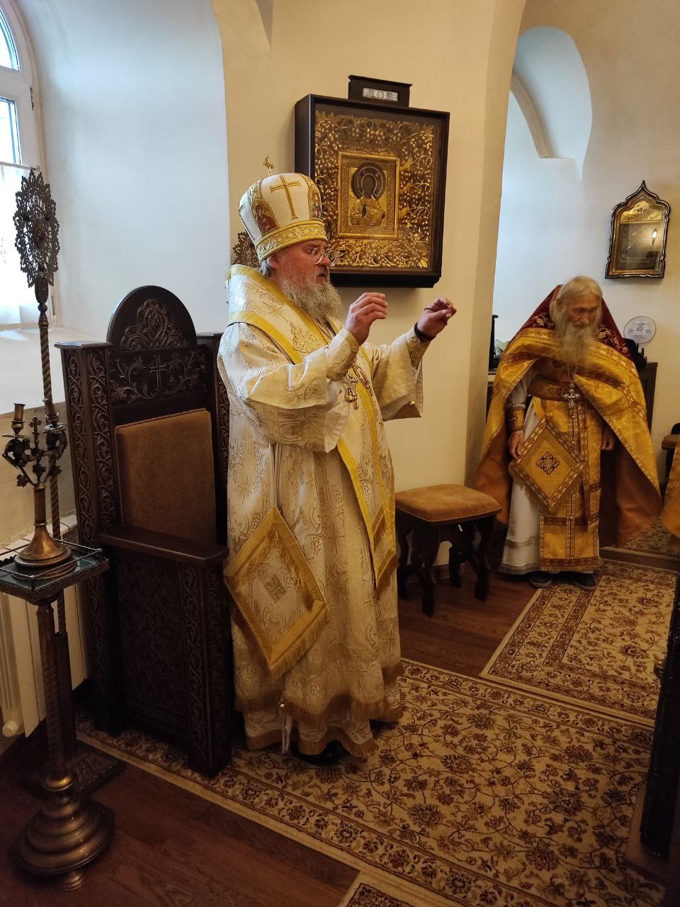 За богослужением архипастырь сугубо молился о здравии Святейшего Патриарха Кирилла.