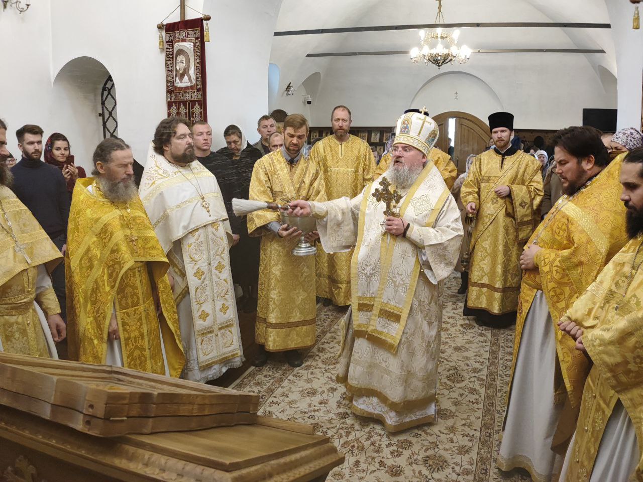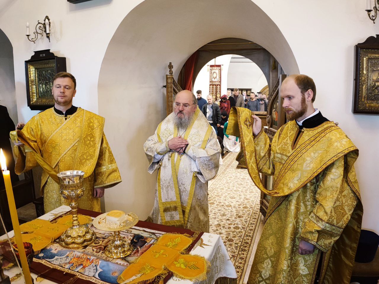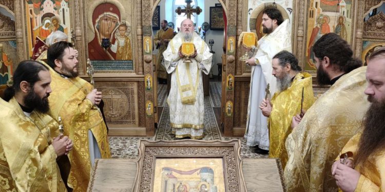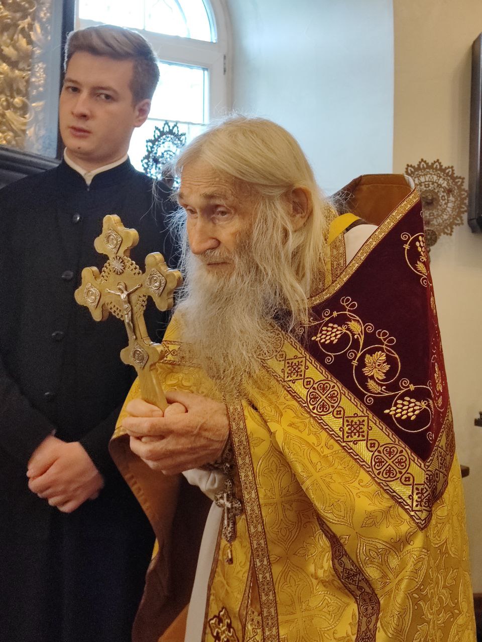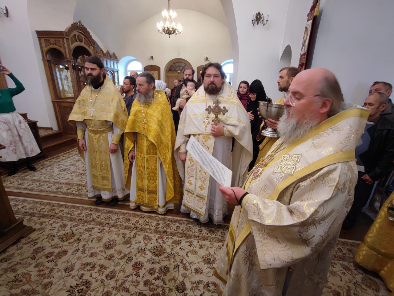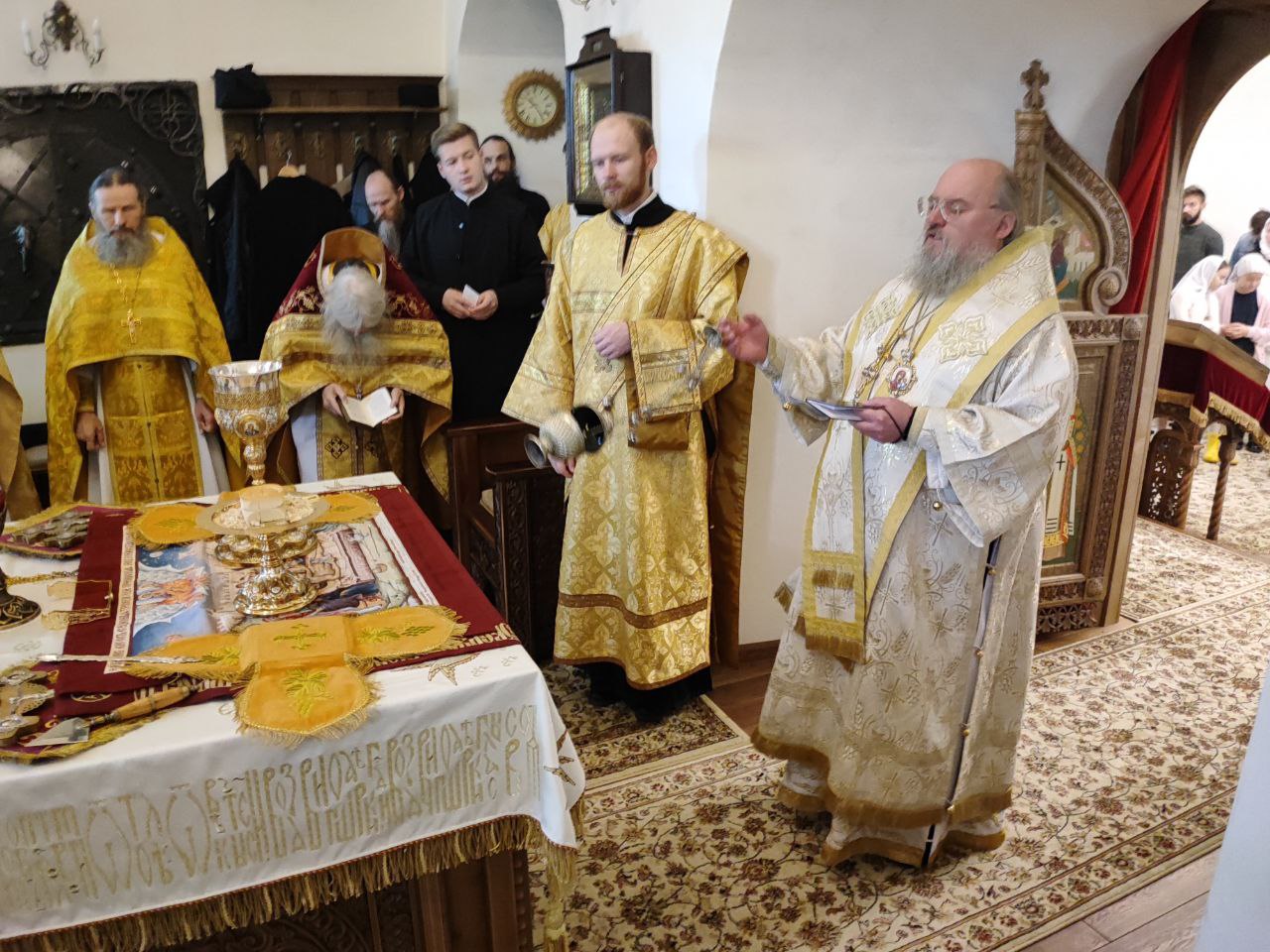 За богослужением архипастырь сугубо молился о здравии Святейшего Патриарха Кирилла.