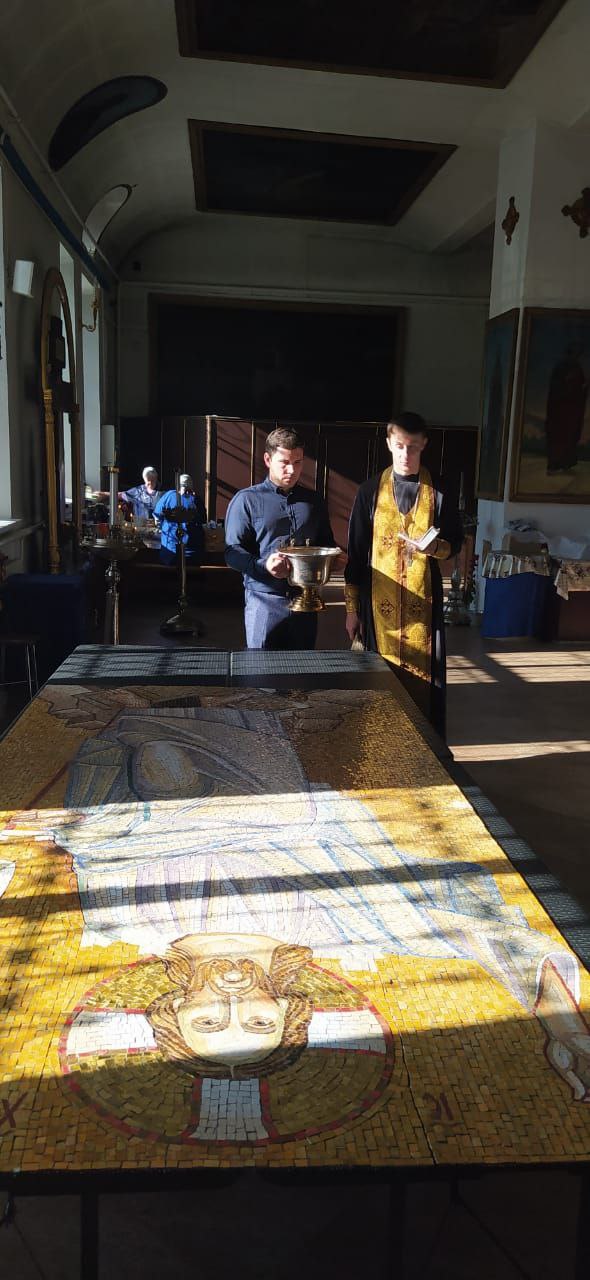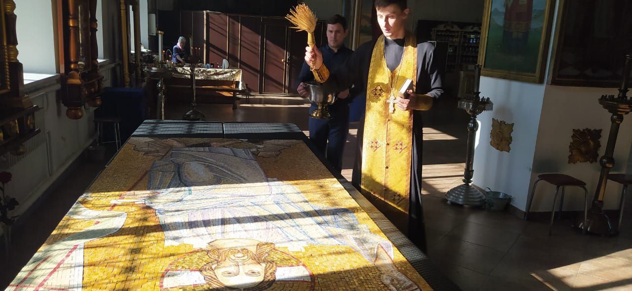 Освящена мозаичная икона для храма Смоленской иконы Божией Матери