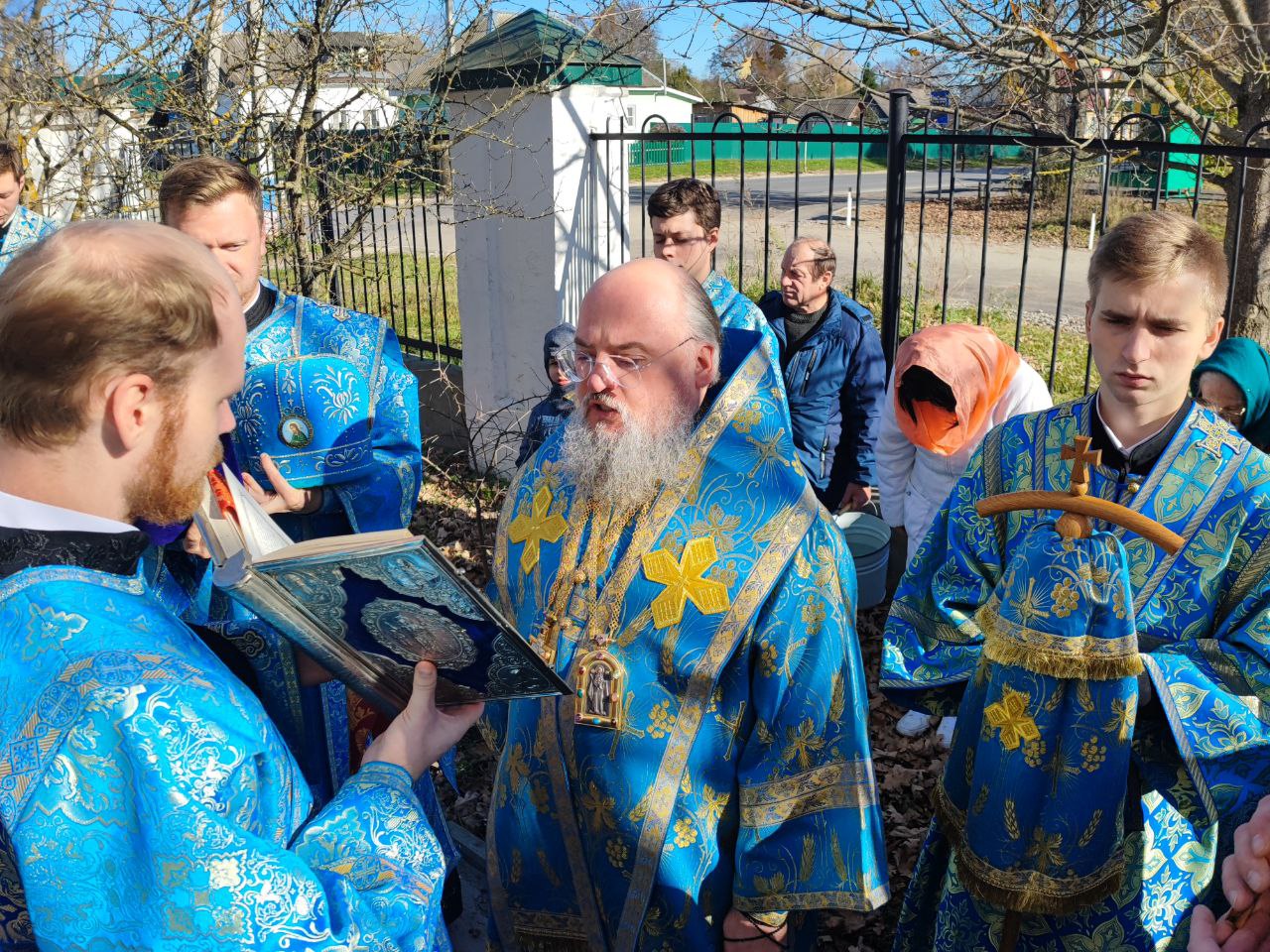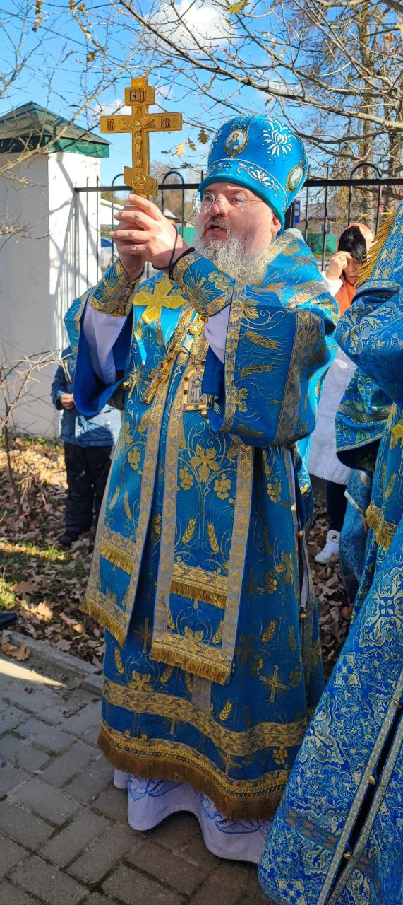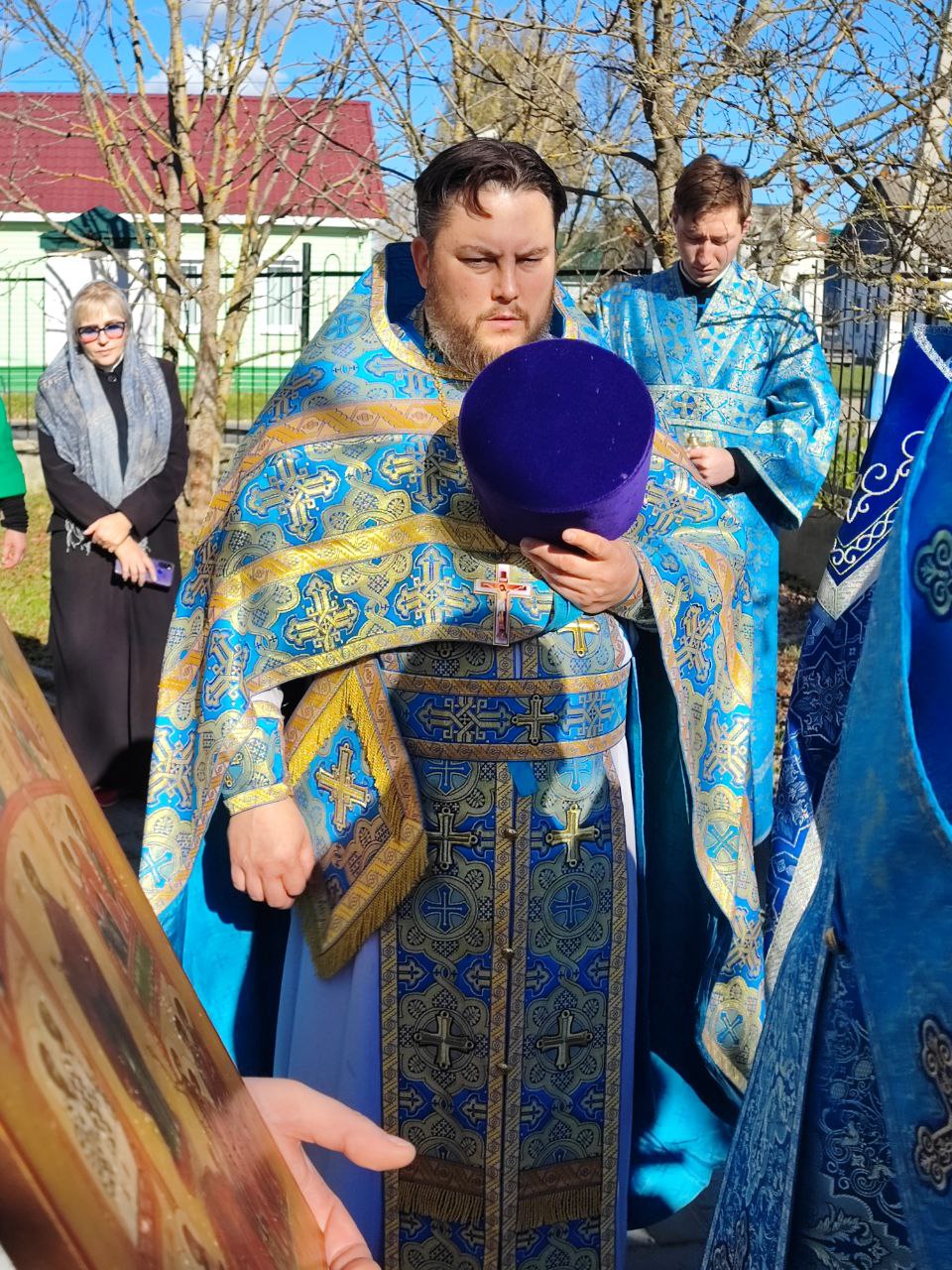 По отпусте литургии священнослужители совершили праздничный молебен с крестным ходом вокруг храма.