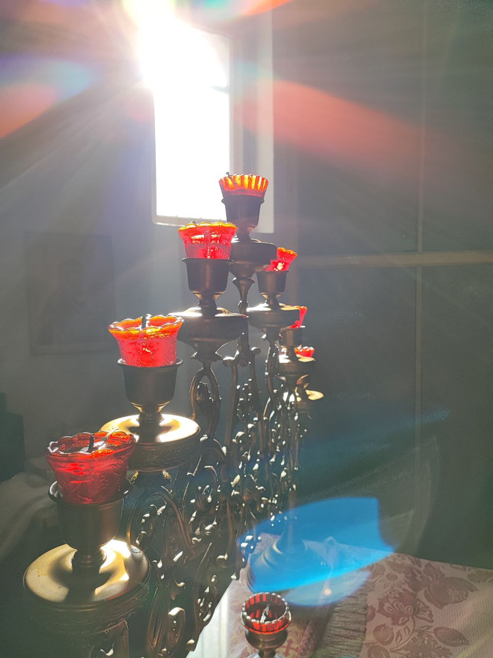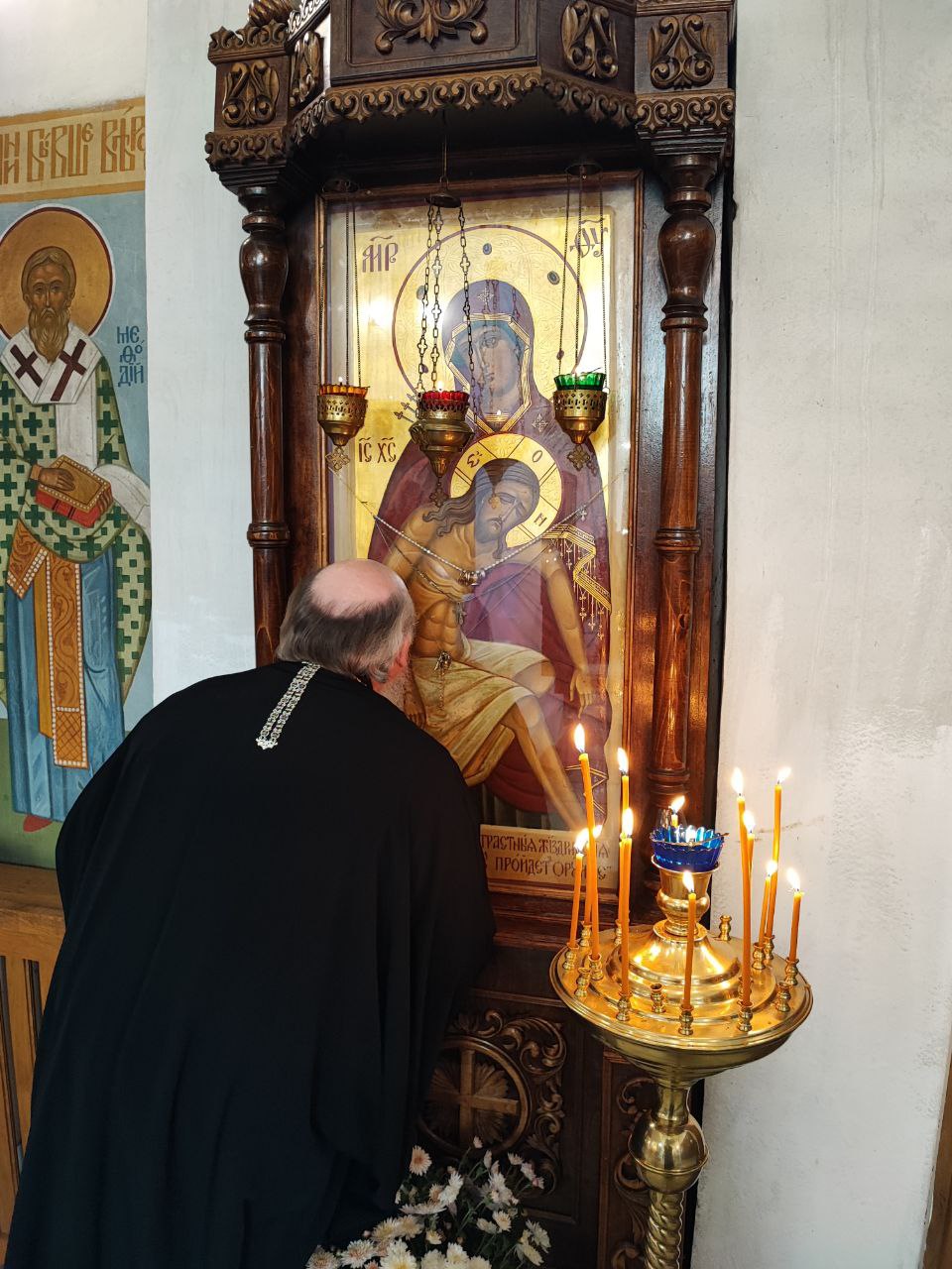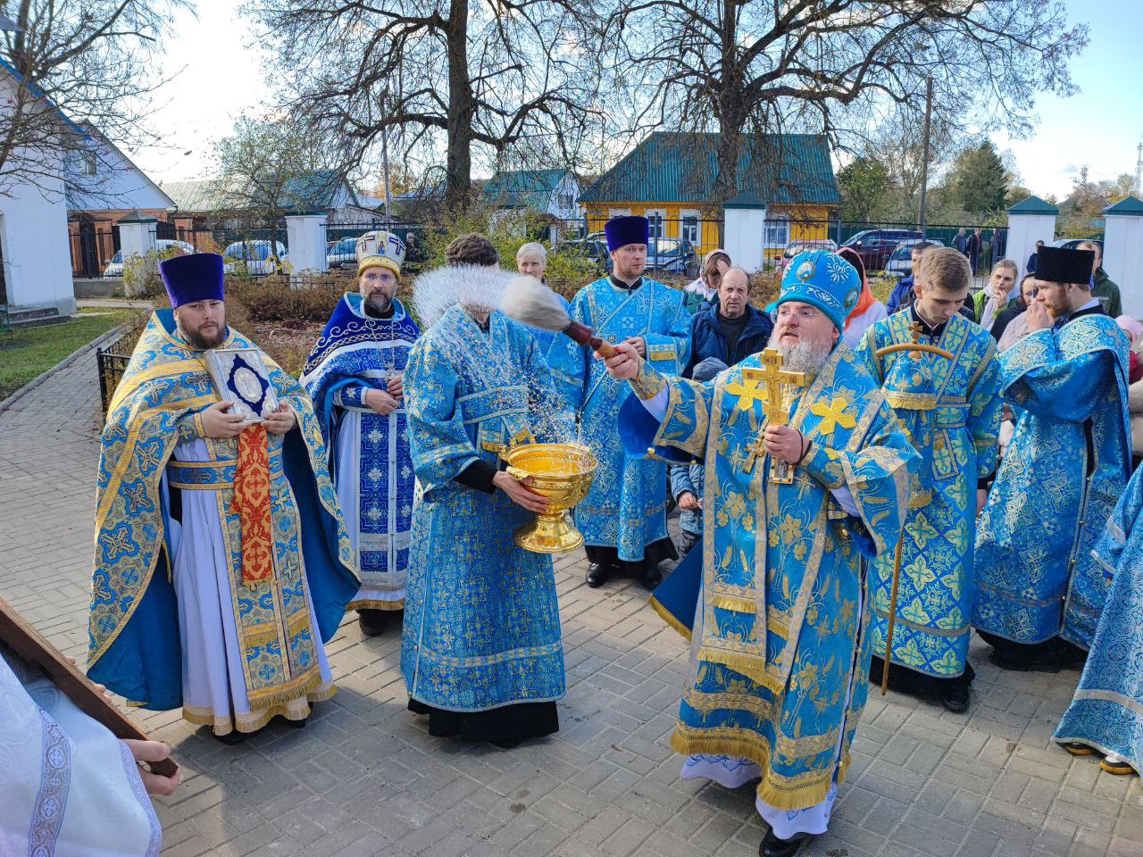 По отпусте литургии священнослужители совершили праздничный молебен с крестным ходом вокруг храма.
