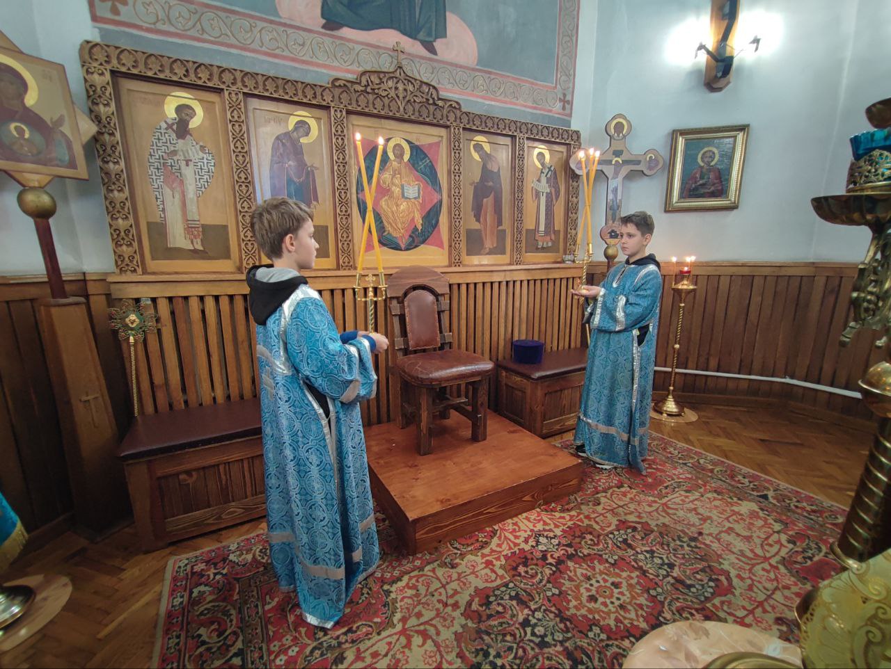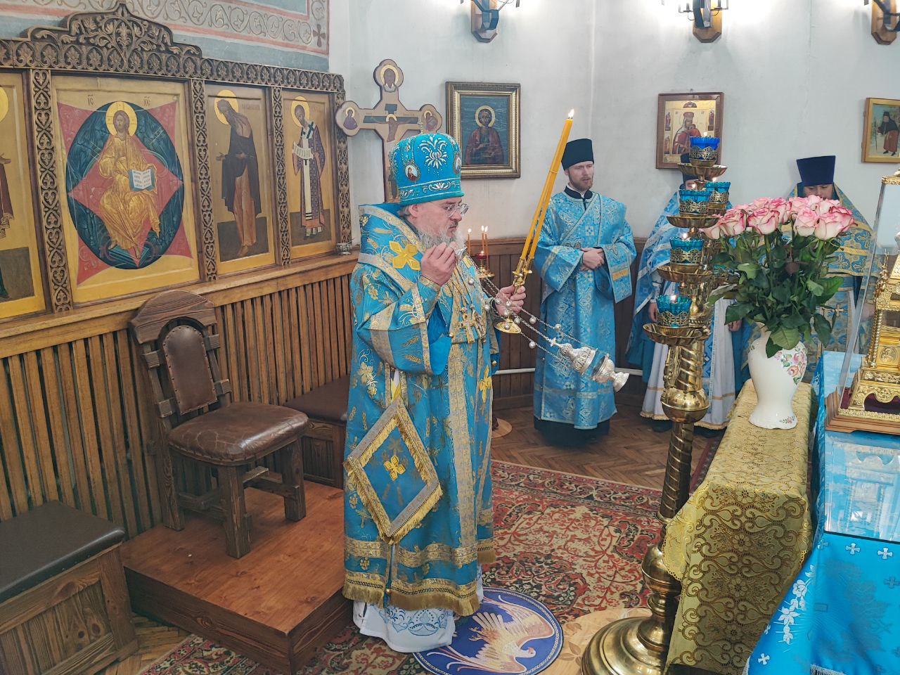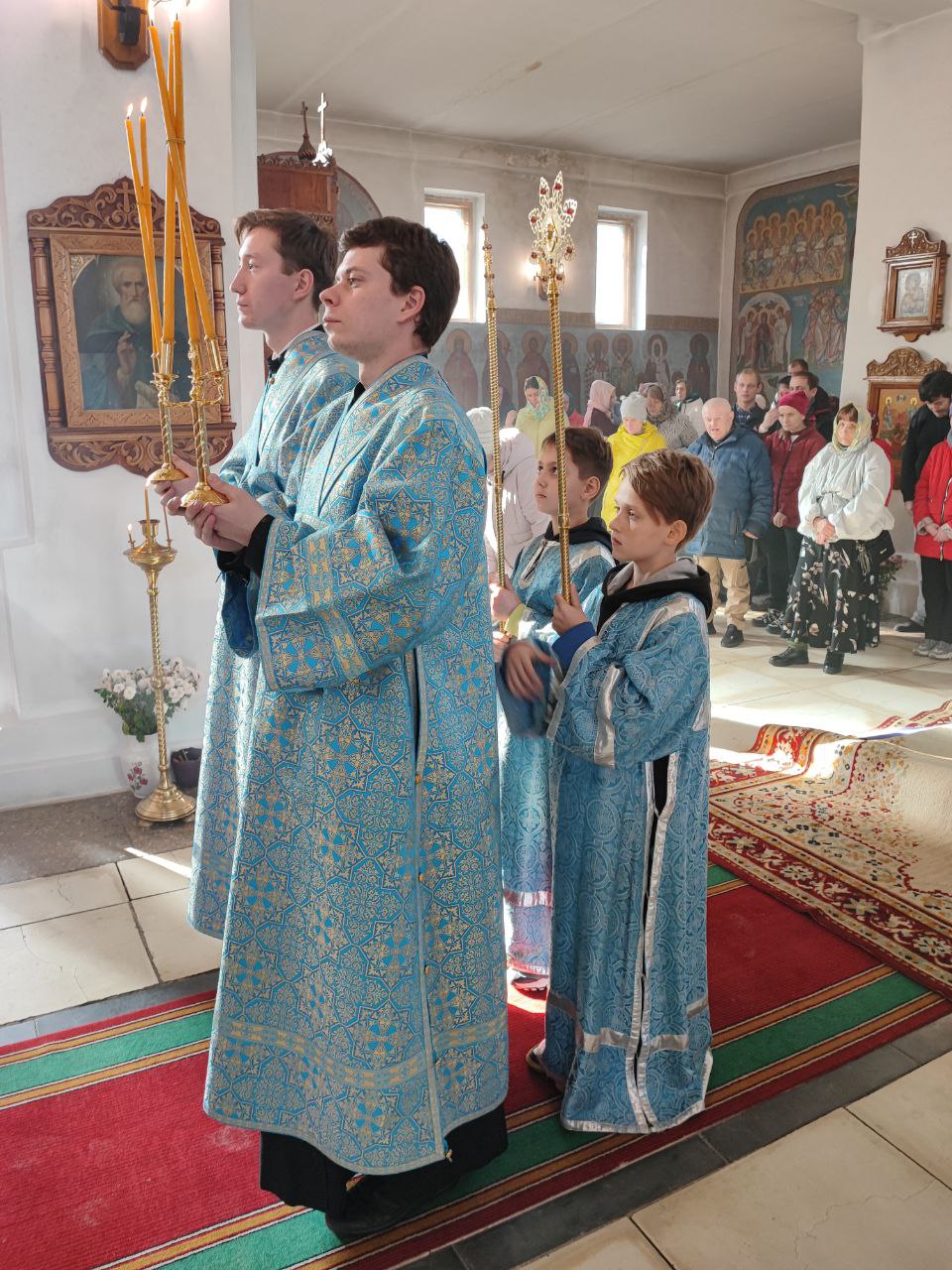 Преосвященному владыке сослужили: настоятель храма митрофорный протоиерей Константин Гипп, протоиерей Александр Карпов, протоиерей Антоний Хатунцев, иерей Алексий Ефименков – благочинный округа, иерей Николай Безручкин, диакон Евгений Ковригин и иеродиакон Лука (Старостин).