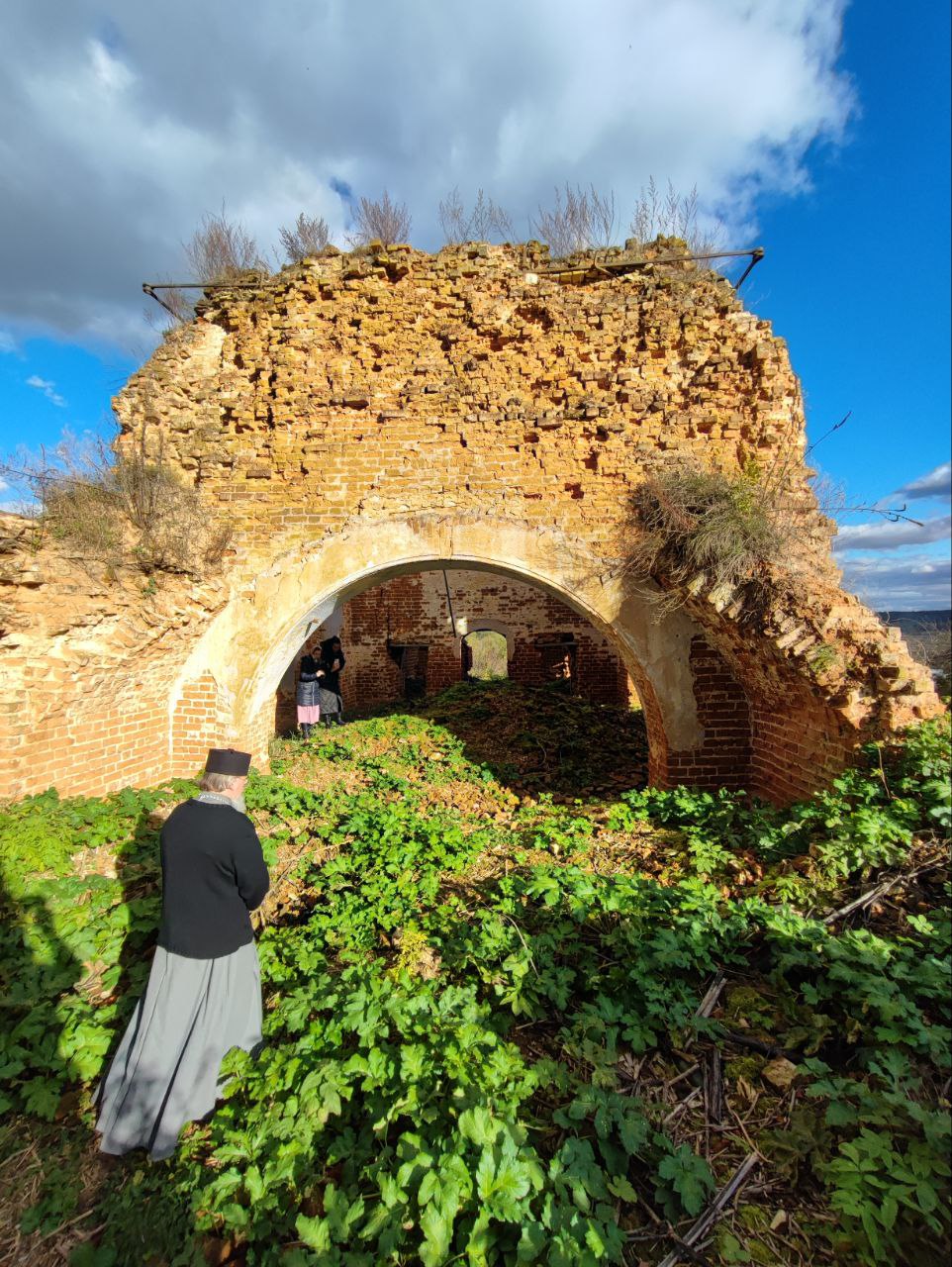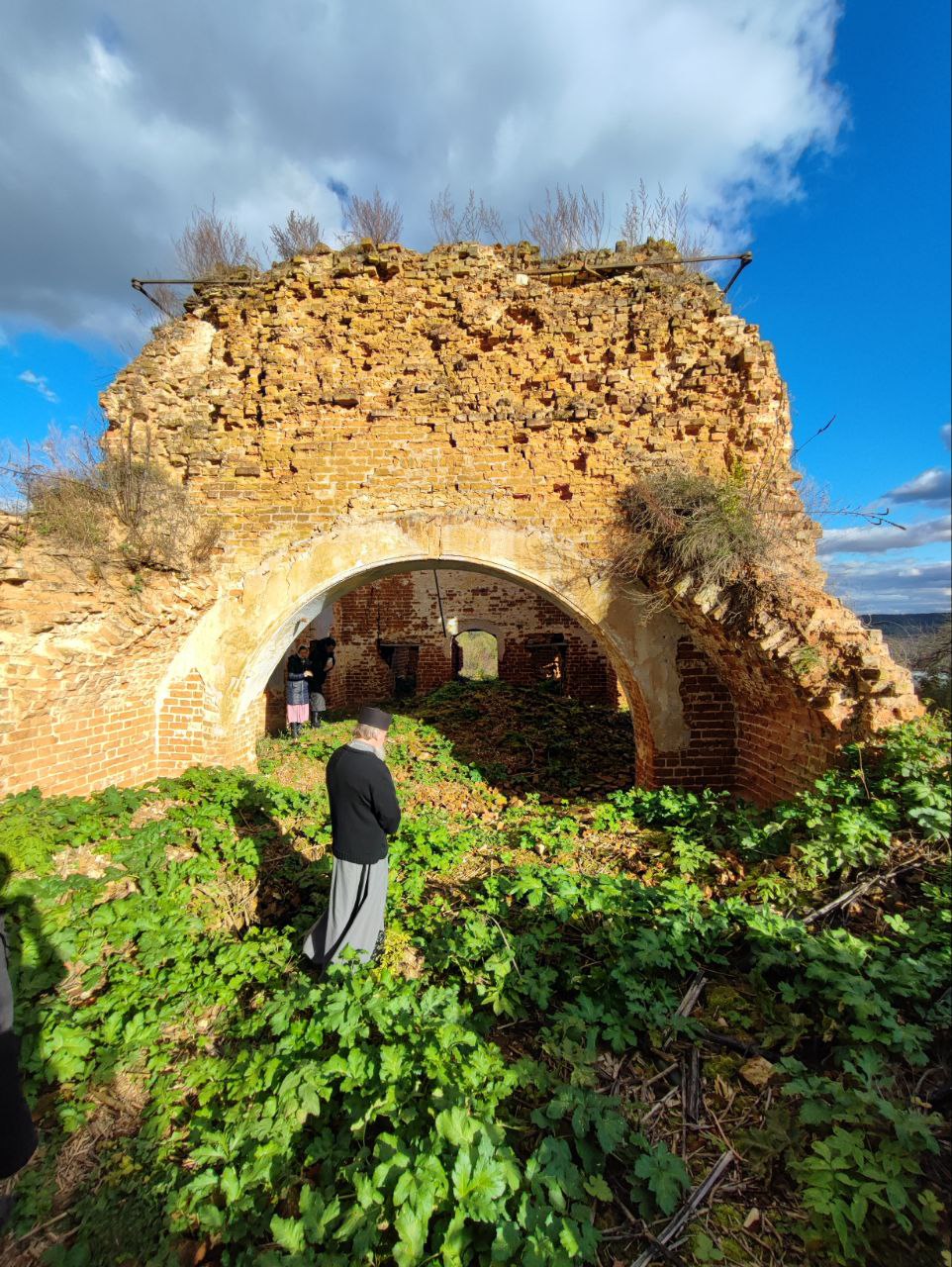Епископ Никита посетил руины церкви Покрова Пресвятой Богородицы в селе Хозцы Козельского района