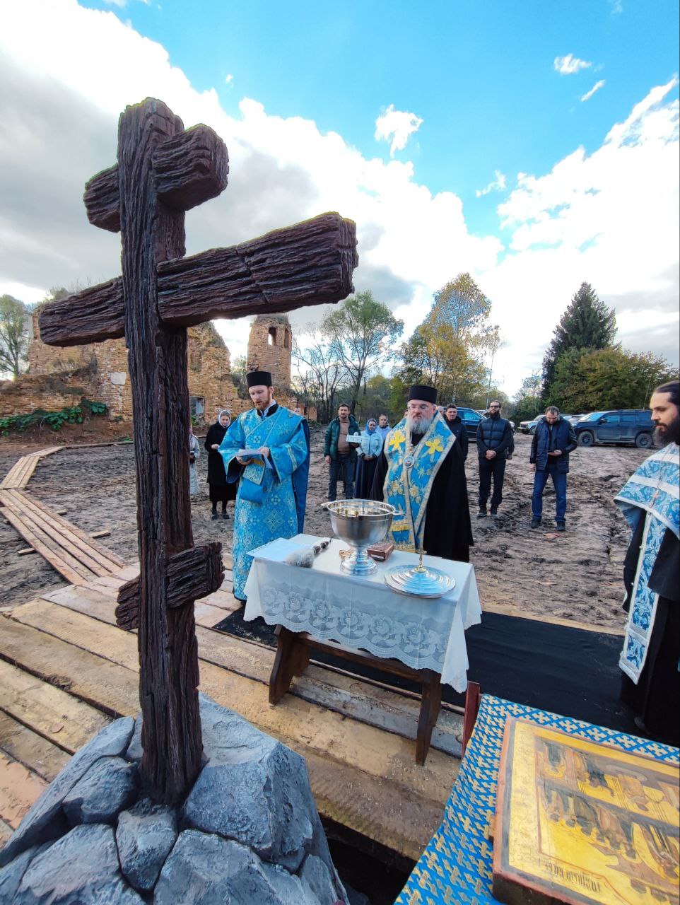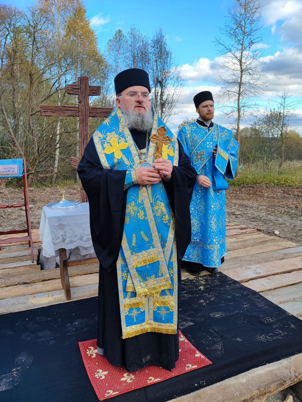 14 октября в день праздника день праздника Покрова Пресвятой Богородицы епископ Козельский и Людиновский Никита совершил освящение места под строительство храма в селе Хозцы Козельского района.