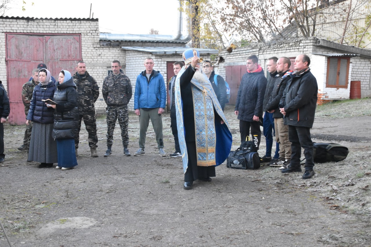 Благочинный Людиновского округа Козельской епархии настоятель Казанского собора города Людиново протоиерей Алексий Жиганов отслужил молебен у здания военкомата. Батюшка сказал напутственное слово военнослужащим запаса, благословил на достойную службу и благополучное возвращение домой: «Храни вас Господь, дорогие наши братья и сыночки. Не пускайте зла в ваши сердца, в молитвах призывайте Господа и Матерь Божию, ограждайте себя Крестом. И прошу вас возвращайтесь домой живыми. Сегодня Православная Церковь празднует Покров Пресвятой Богородицы. Мы верим, что Царица Небесная Своим Покровом убережёт вас от бед и напастей».