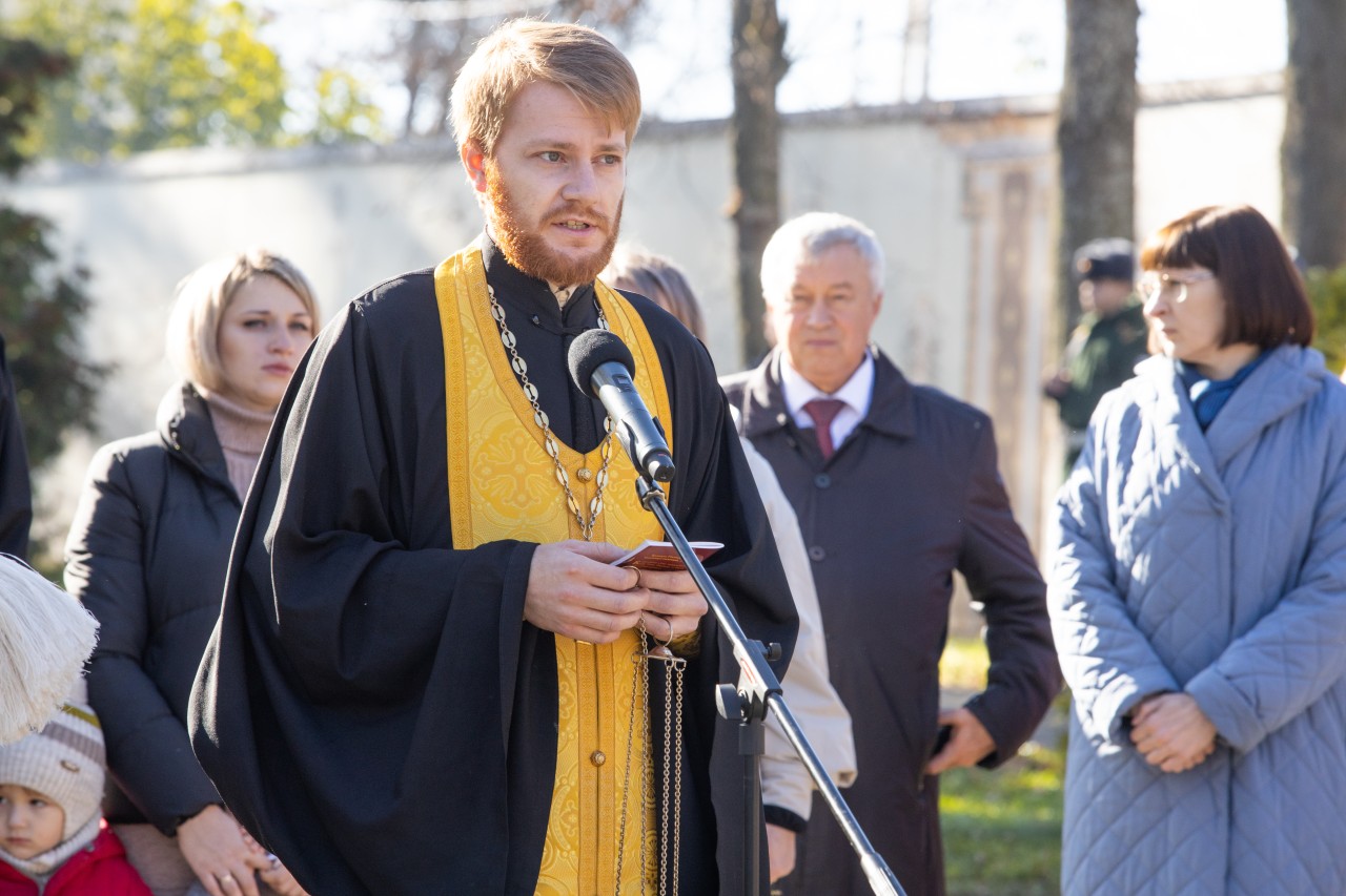 После возложения цветов клирик Успенского кафедрального собора иерей Елисей Тимофеев совершил заупокойную литию по убиенному воину Владимиру.