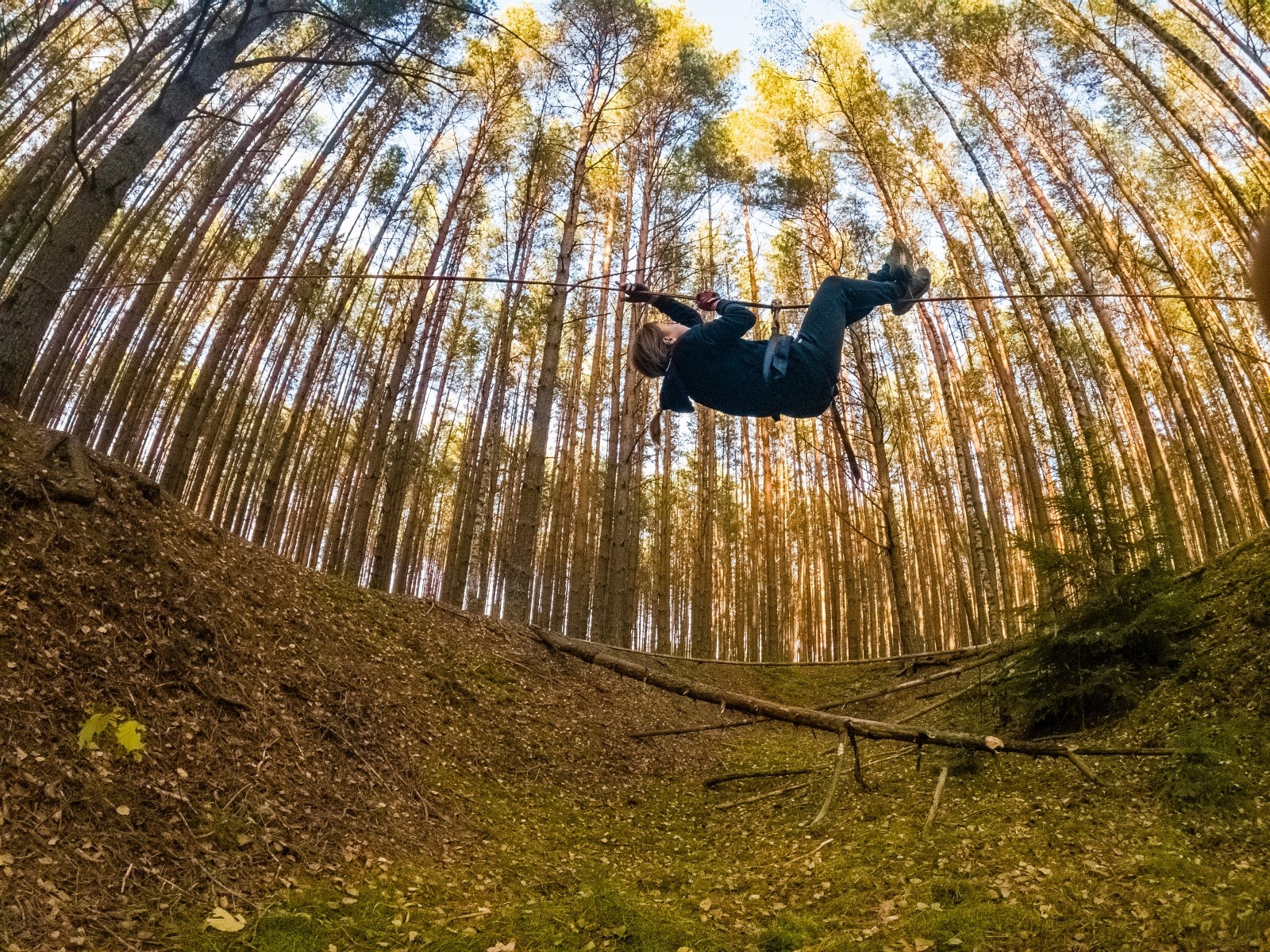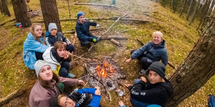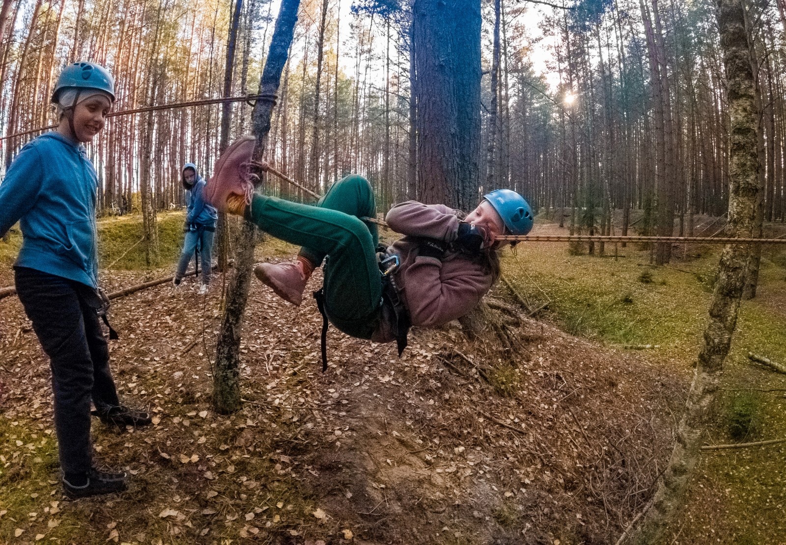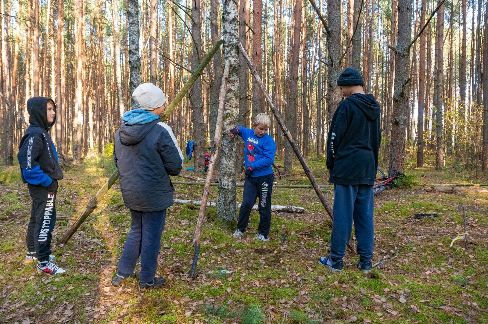 На занятии ребята практиковались в прохождении вело-трассы кросс-кантри, где учились преодолевать типичные для пересеченной местности препятствия: спуски, подъемы, песчаные участки и т. д. А также проходили навесную переправу, на этот раз она была натянута повыше, и залезть на нее было не просто. В завершении занятия было устроено традиционное лесное чаепитие.