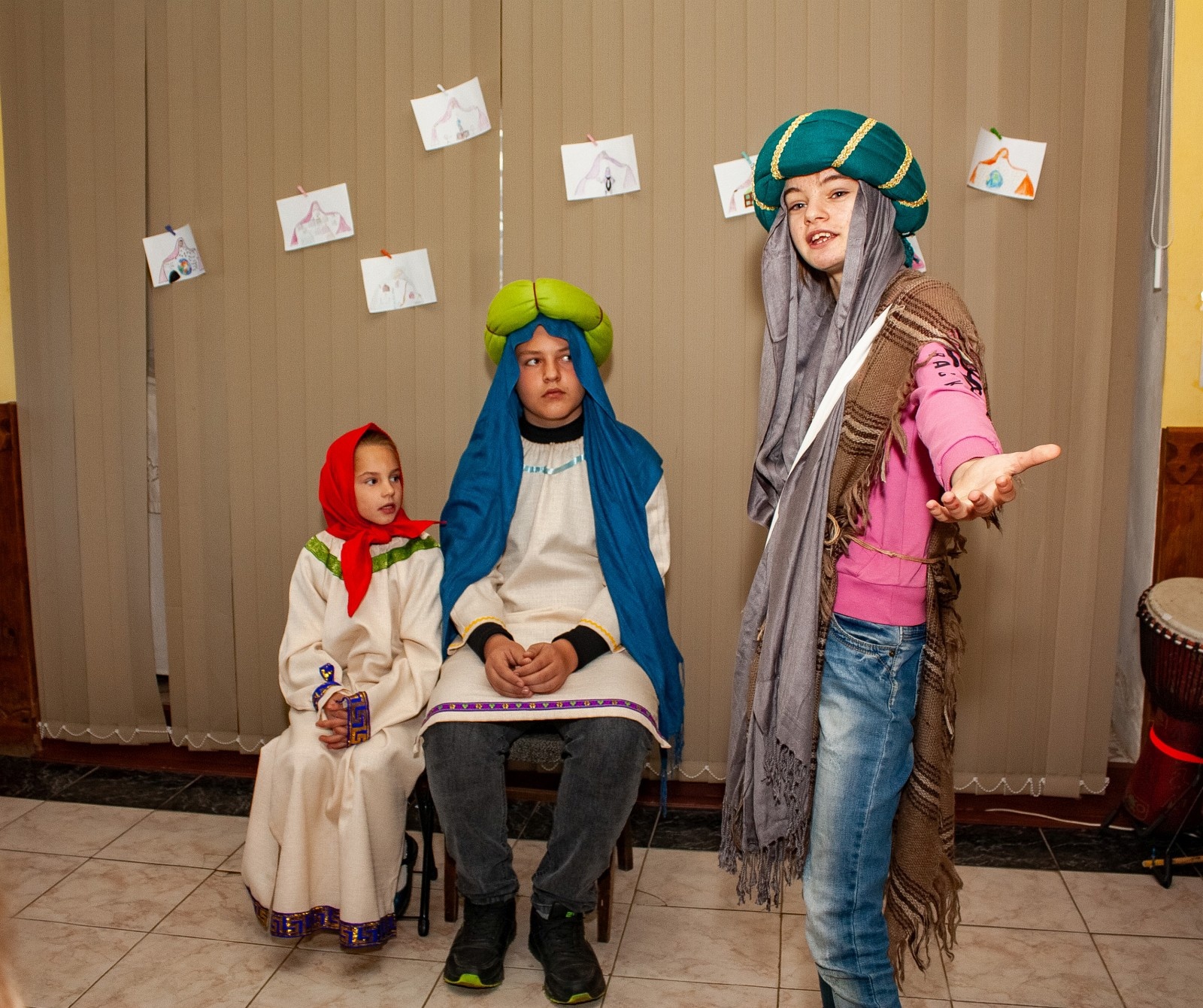Школьная (рук. – Семочкина Л. С.) и подростковая (рук. – Ефименкова Д. В.) группы подготовили небольшие сценки-притчи. Порадовали зрителей своими песнями хор «Тимпан» (рук. – Архипова Г. И.), игрой на музыкальных инструментах объединения МКОУ ДО «ДДТ» фолк-ансамбль (рук. – Снегирев А. А.) и «Квинта» (рук. – Дегтерева Л. Ю.). Также руководители Любовь Юрьевна и Галина Измаиловна дуэтом исполнили прекрасную песню, ставшую отличным завершением сценки о том «Как Христос в гости ходил».