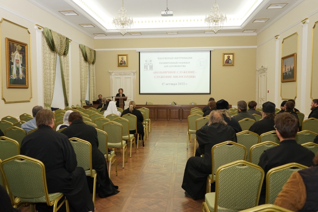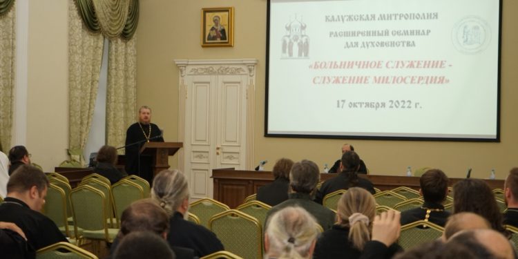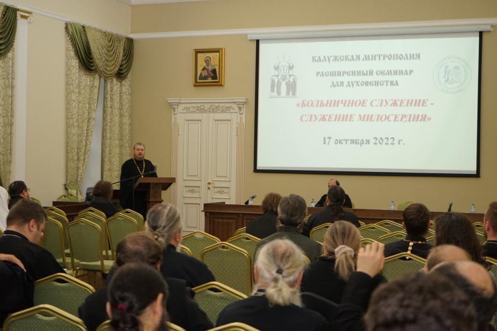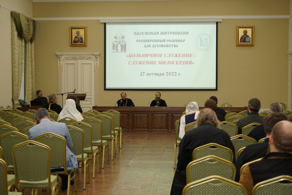 17 октября 2022 года, по благословению Митрополита Калужского и Боровского Климента, в Актовом зале Калужской митрополии прошел семинар на тему: «Больничное служение – служение милосердия». Семинар организован Комиссией по благотворительности Калужской Митрополии. Работу семинара возглавил Епископ Тарусский Леонид, викарий Калужской епархии.