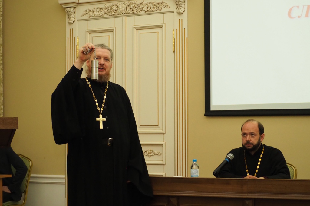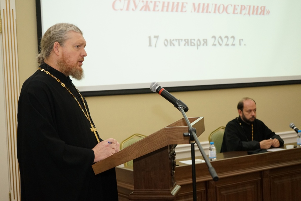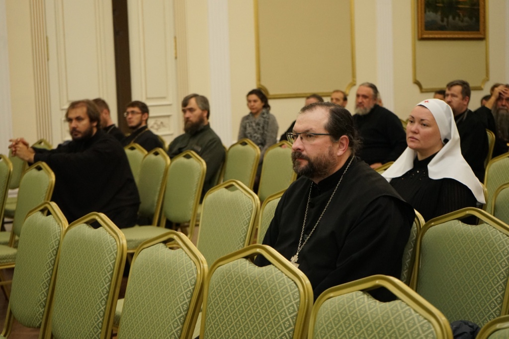 Затем, в соответствии с программой семинара, протоиерей Сергий Кляев, заместитель председателя Комиссии по больничному служению при Епархиальном совете города Москвы, выступил с докладом на тему: «Опыт и особенности пастырского служения в ковидных и военных госпиталях».