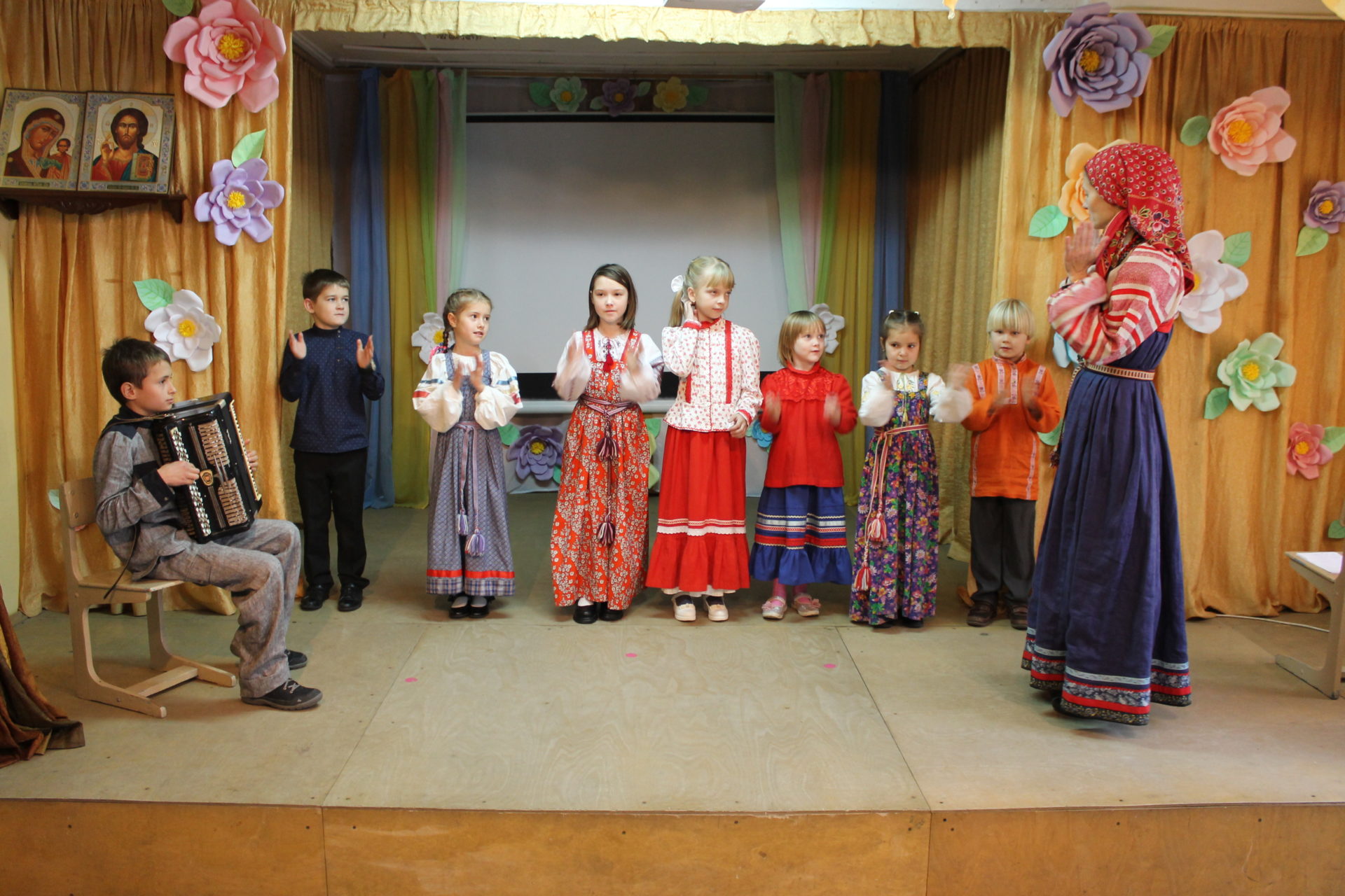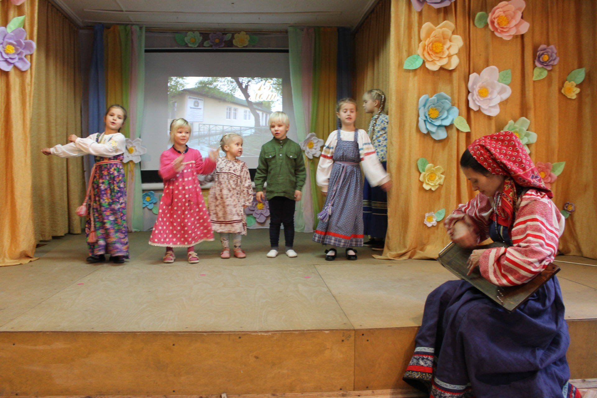 Детский фольклорный ансамбль, под руководством Дикаревой Евгении Александровны исполнил веселые поздравительные частушки для педагогов и директора ДЦ Пановой И. А.