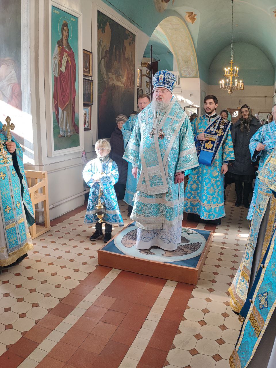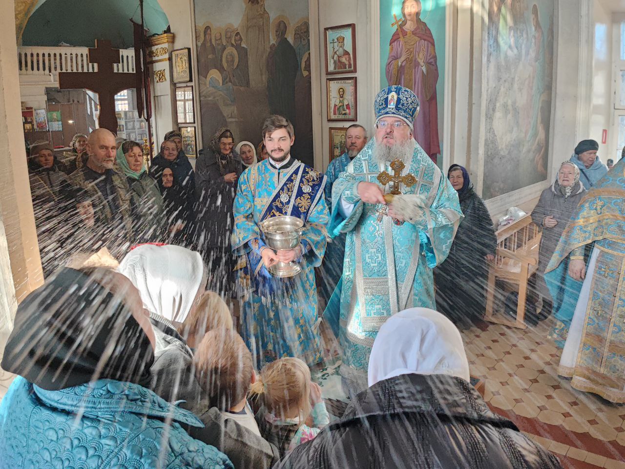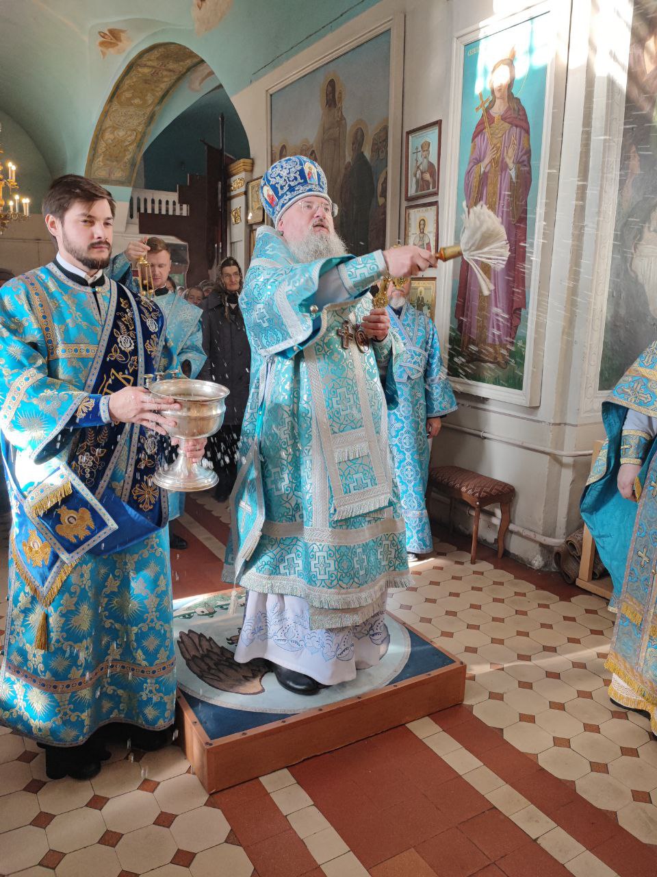 Архипастырю сослужили: протоиерей Павел Морозов, протоиерей Антоний Хатунцев, иерей Евгений Мягков, иерей Сергий Барыкин – настоятель храма, диакон Евгений Ковригин и диакон Евгений Васильев.