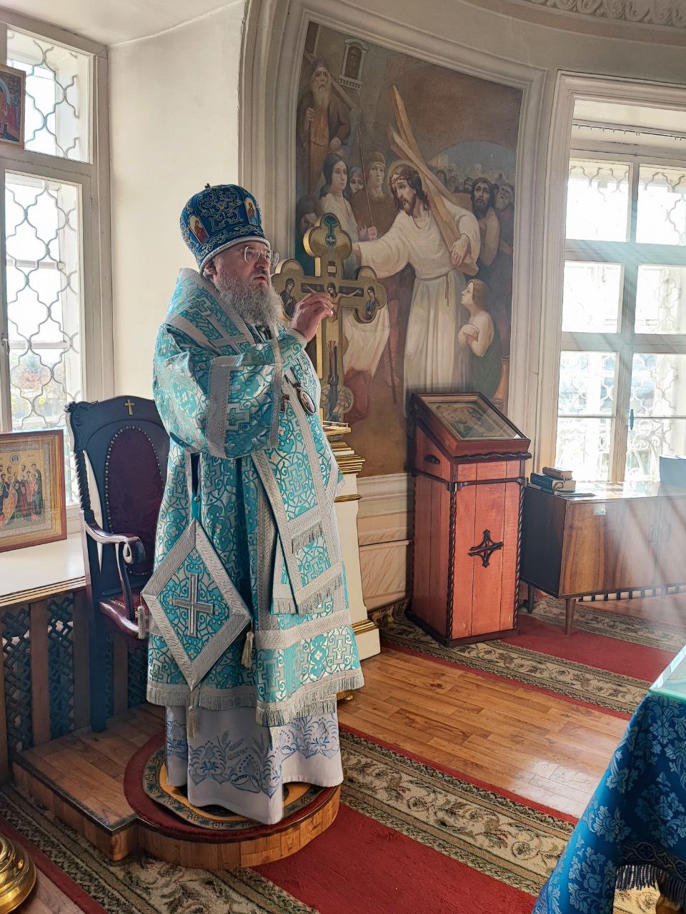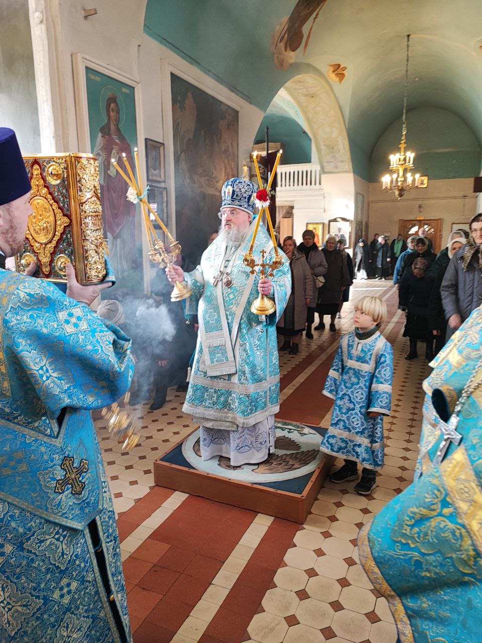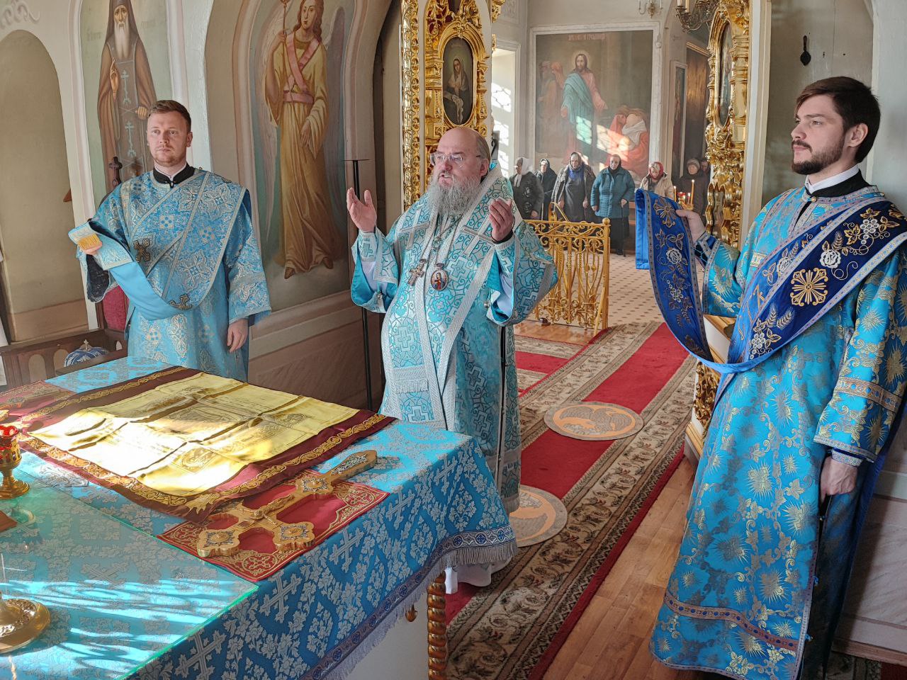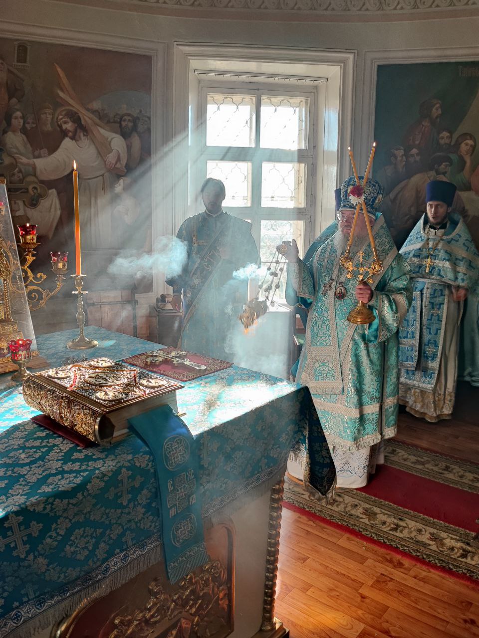 Архипастырю сослужили: протоиерей Павел Морозов, протоиерей Антоний Хатунцев, иерей Евгений Мягков, иерей Сергий Барыкин – настоятель храма, диакон Евгений Ковригин и диакон Евгений Васильев.