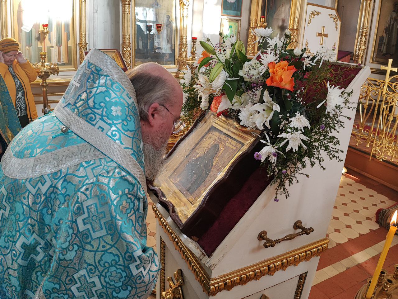 По отпусте литургии священнослужители совершили славление Пресвятой Богородице. Завершая богослужение, вознеся молитву ко Пресвятой Богородице, владыка обратился к богомольцам с архипастырским словом.