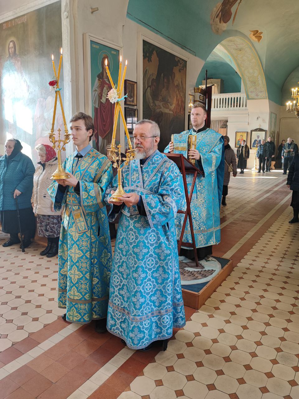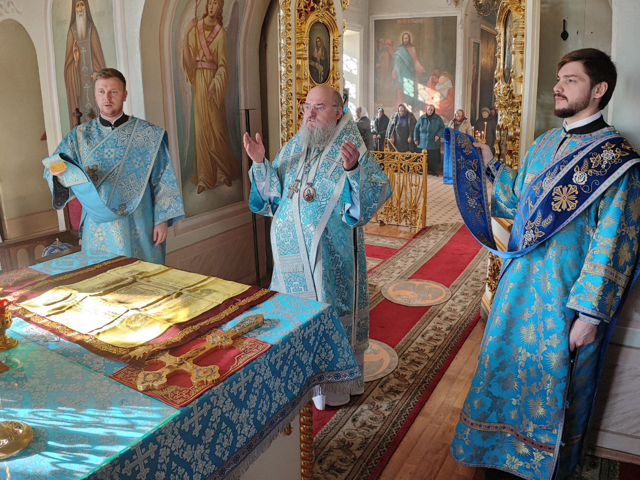 Епископ Козельский и Людиновский Никита совершил Божественную литургию в Благовещенском храме города Козельска, южный придел которого освящен в честь празднуемого образа.