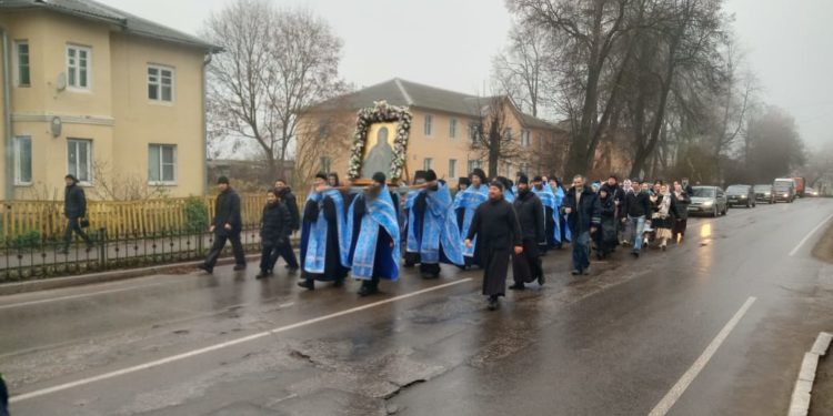 28 октября состоялся крестный ход с Калужской иконой Пресвятой Богородицы из ставропигиального монастыря Введенской Оптиной пустыни в Успенский кафедральный собор города Козельска.