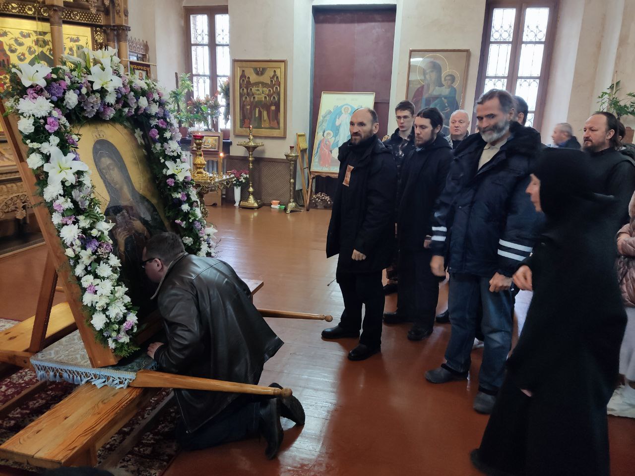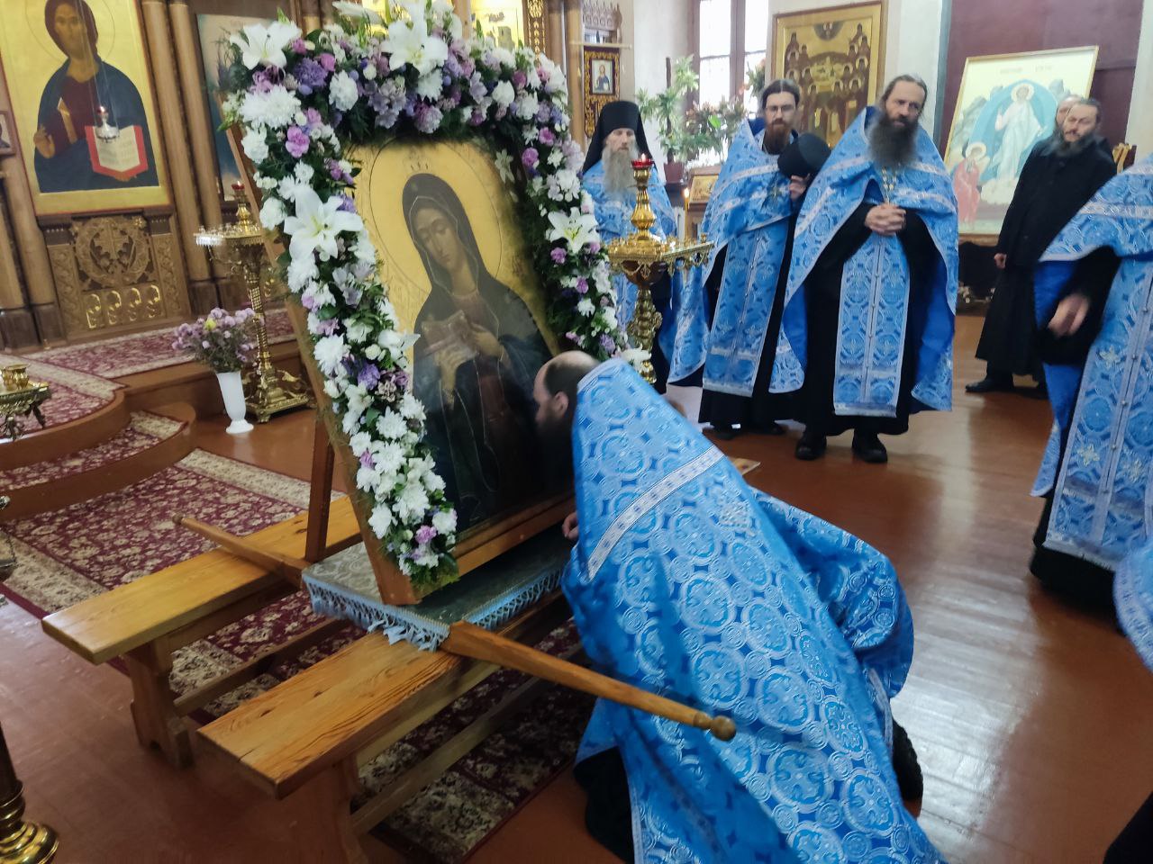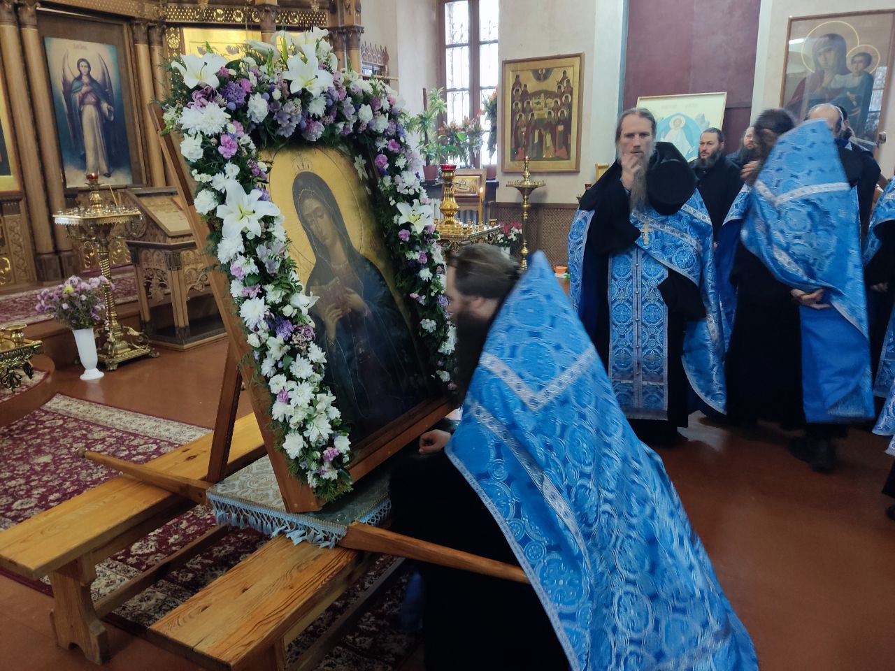 В Успенском соборе, вместе с прихожанами, икону встретил настоятель храма иеромонах Паисий (Курмаз), после чего был отслужен молебен Пресвятой Богородице.