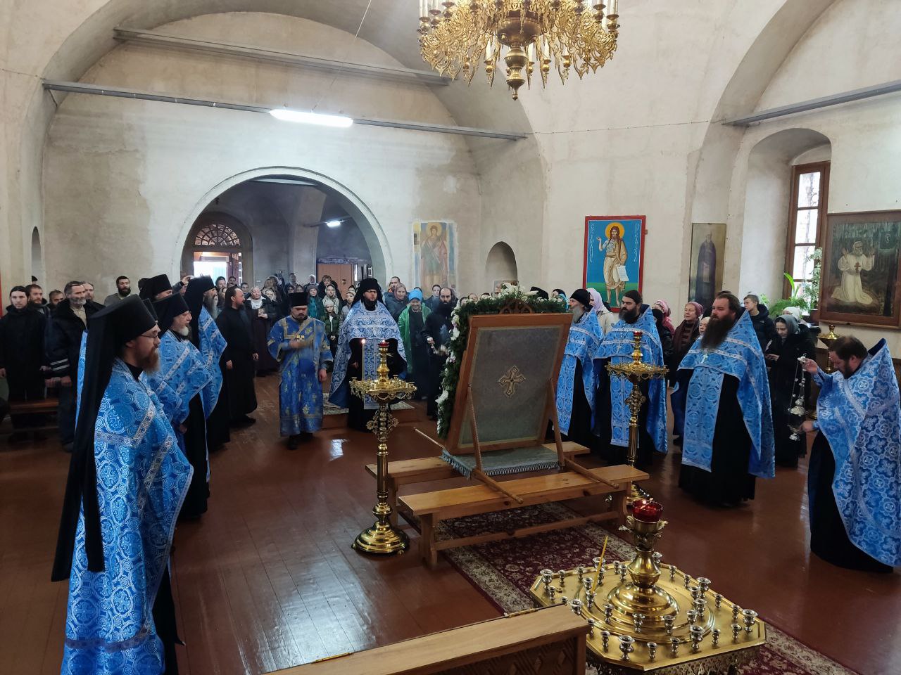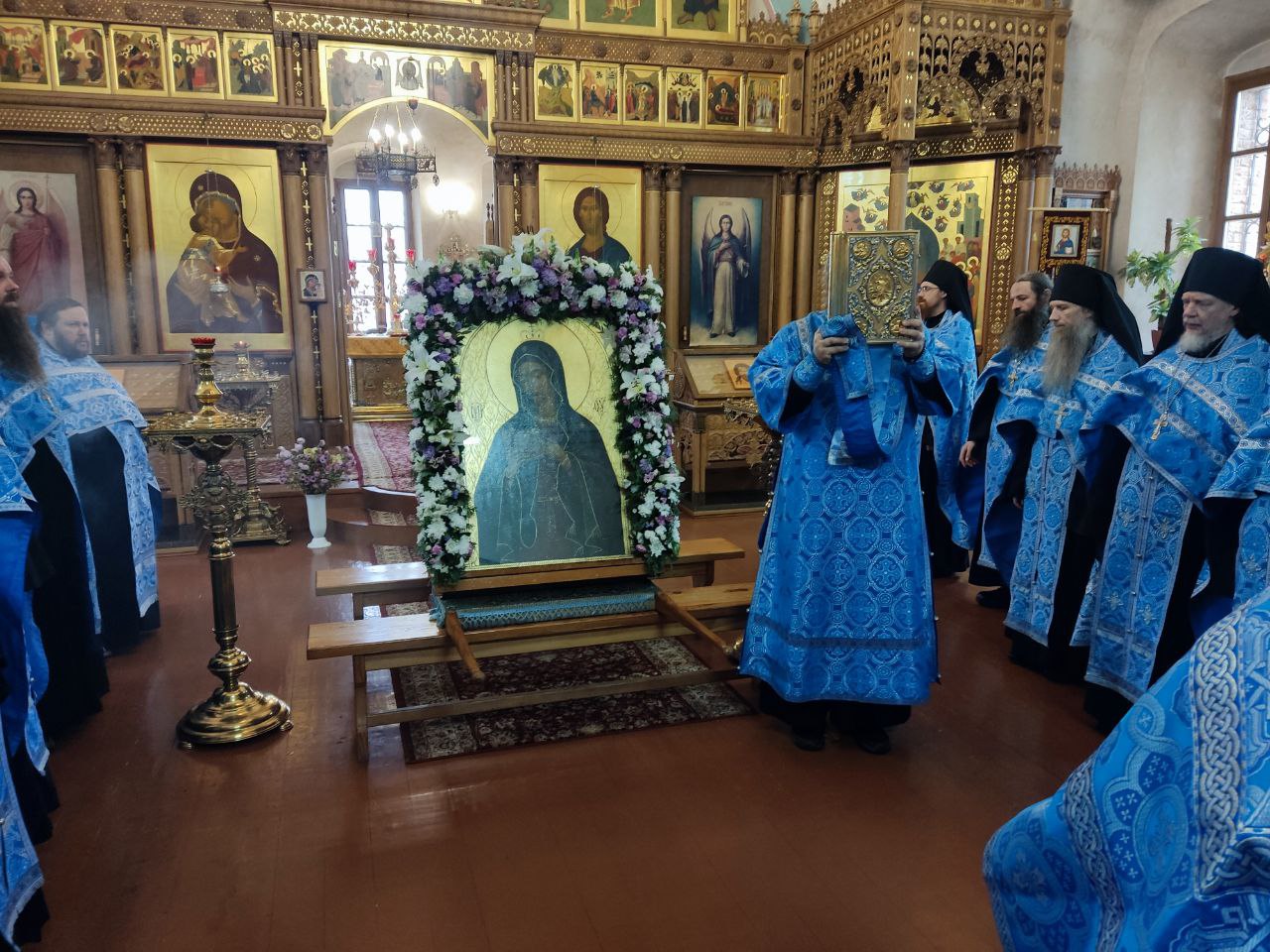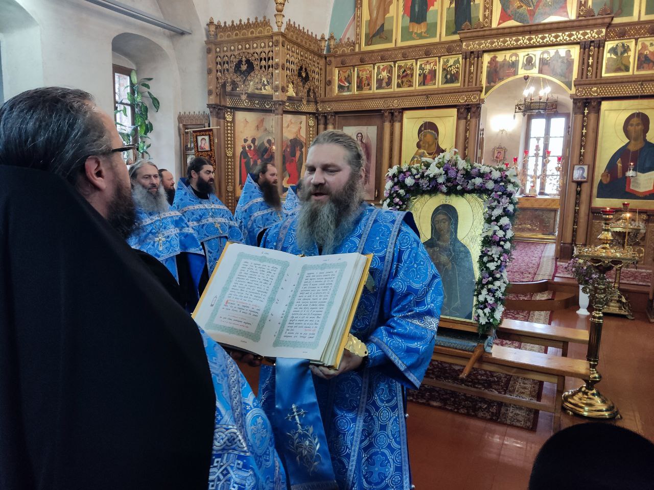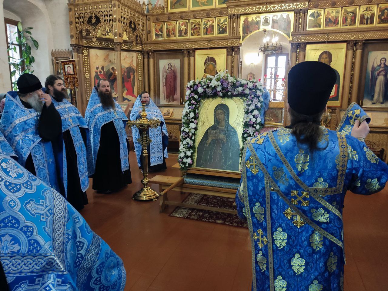 В Успенском соборе, вместе с прихожанами, икону встретил настоятель храма иеромонах Паисий (Курмаз), после чего был отслужен молебен Пресвятой Богородице.