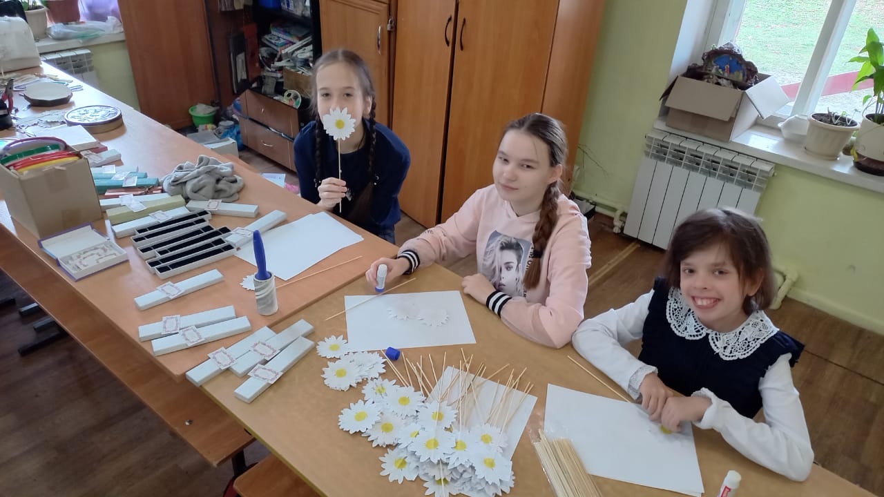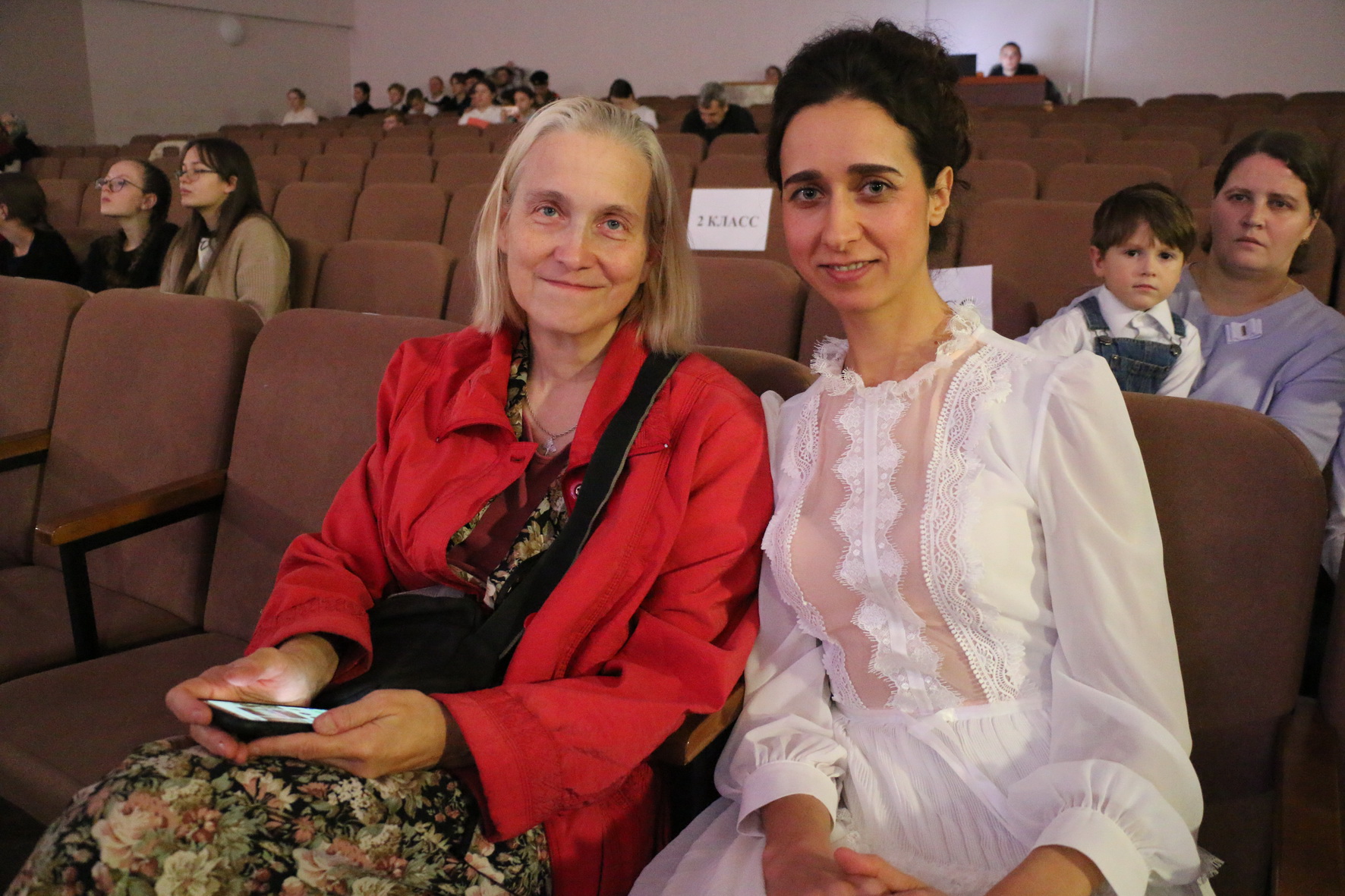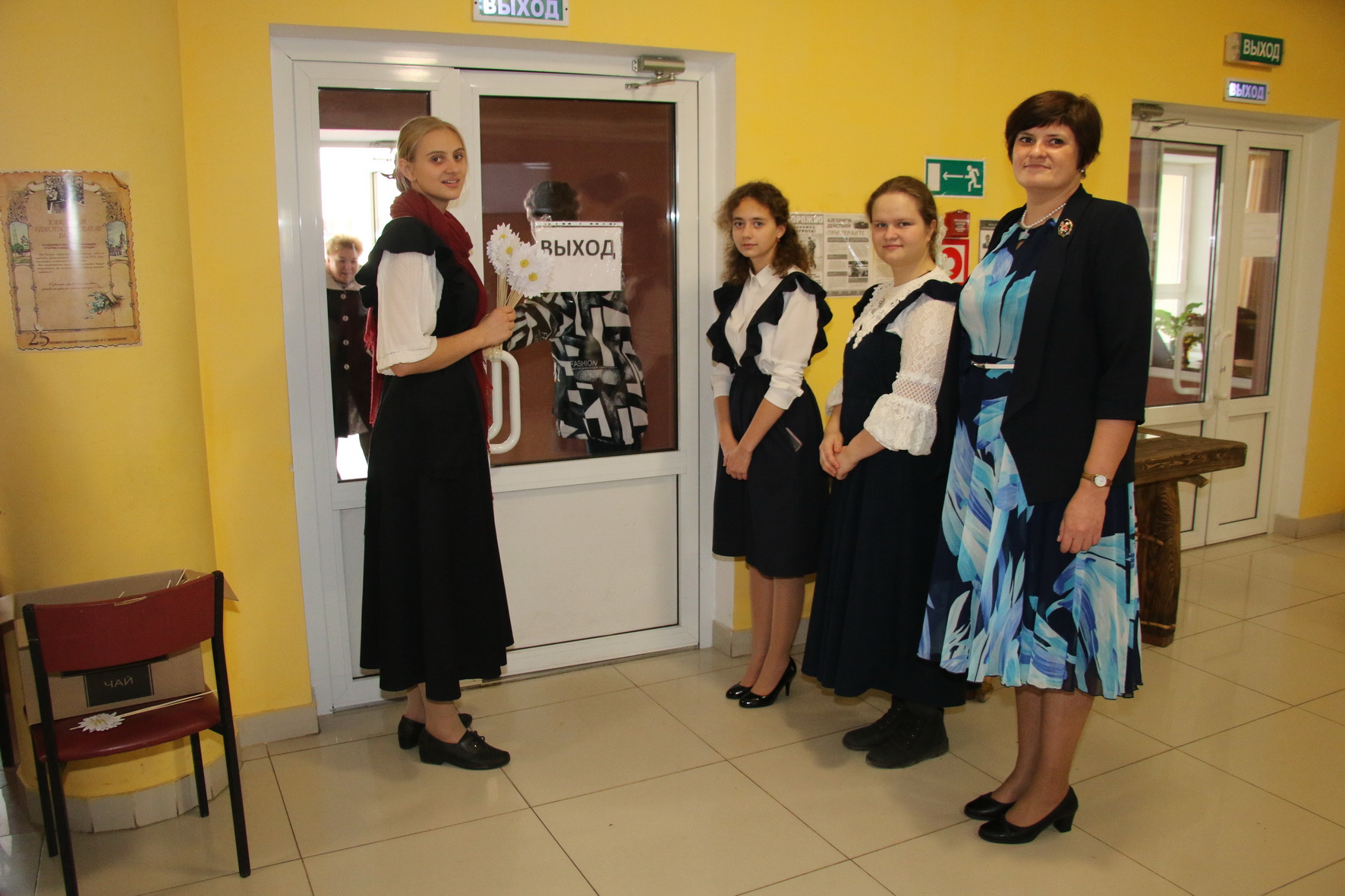 Всех гостей в фойе встречали гимназисты во главе с директором Шмырёвой Татьяной Юрьевной. Они дарили каждому самодельные ромашки, на которых были написаны изречения из дневника императрицы Александры Фёдоровны.