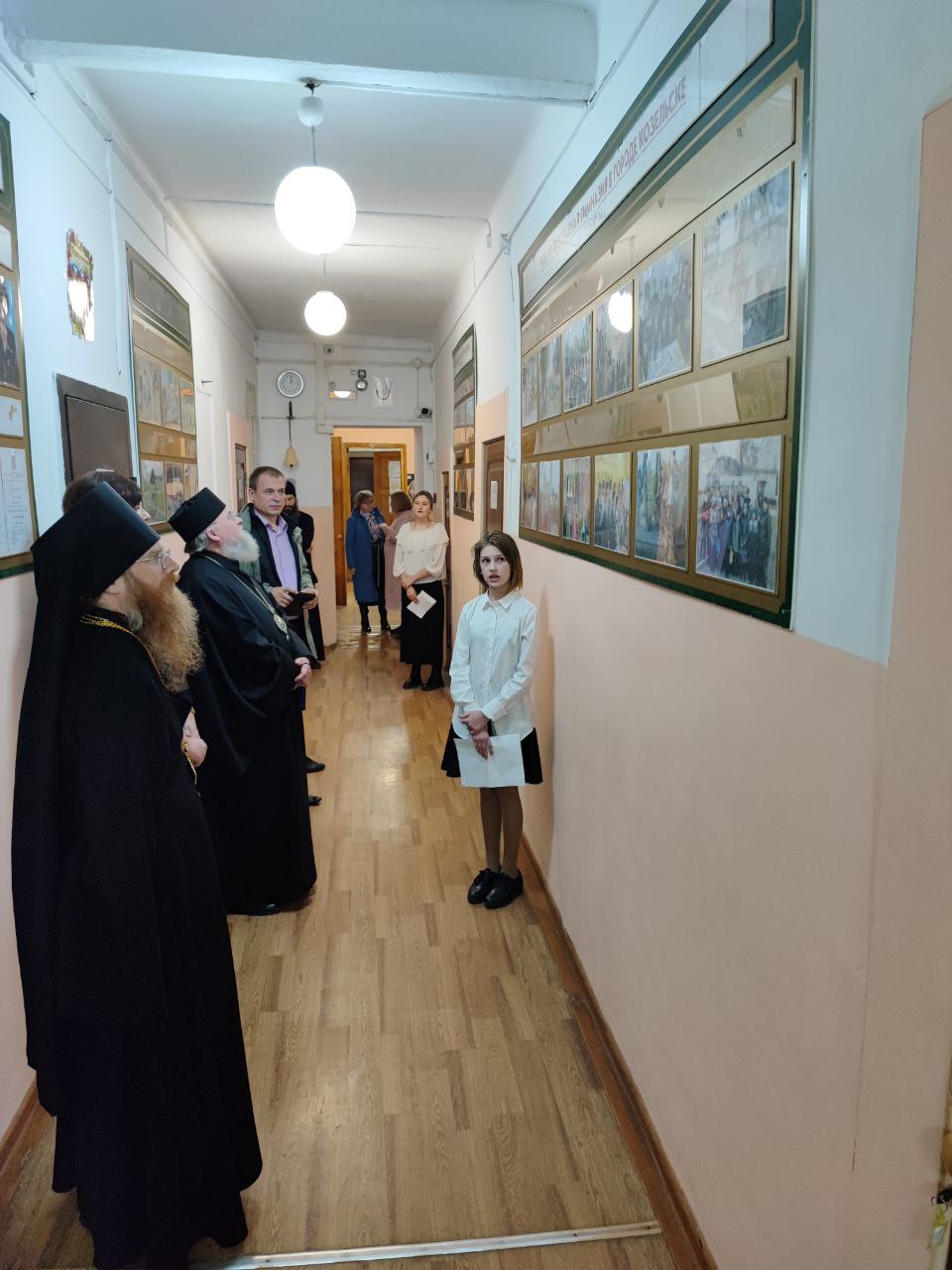 29 октября после завершения торжественного Акта, посвященного 25летию Козельской Православной гимназии, прошедшего в районном Доме культуры, почетные гости посетили здание гимназии, где познакомились с фотовыставкой, посвященной жизни учебного заведения за прошедшие четверть века. У каждого стенда гостей встречал учащийся гимназии, подробно повествующий о том или ином этапе жизни родной школы.