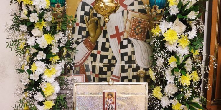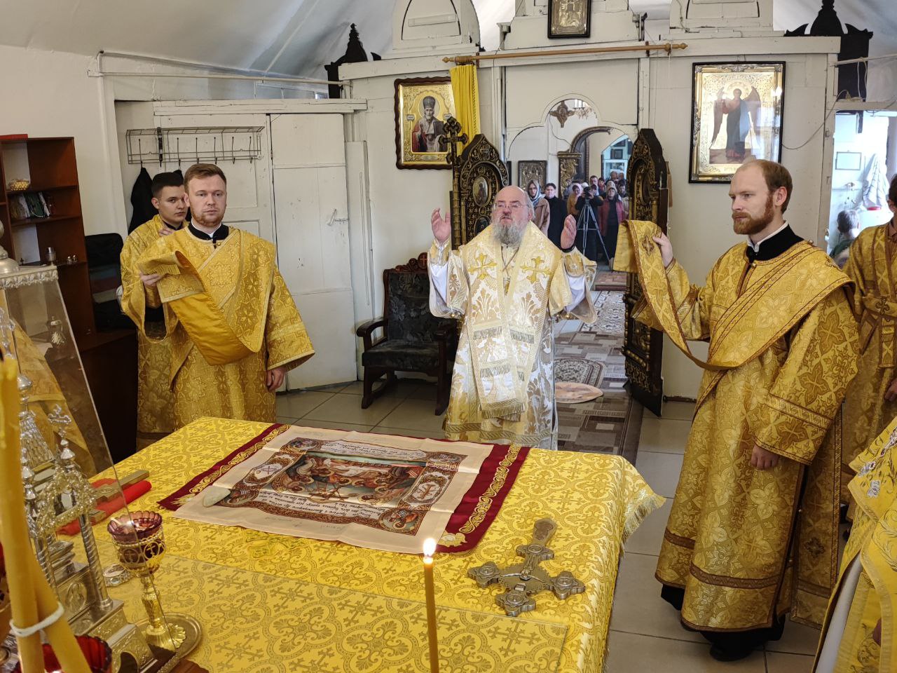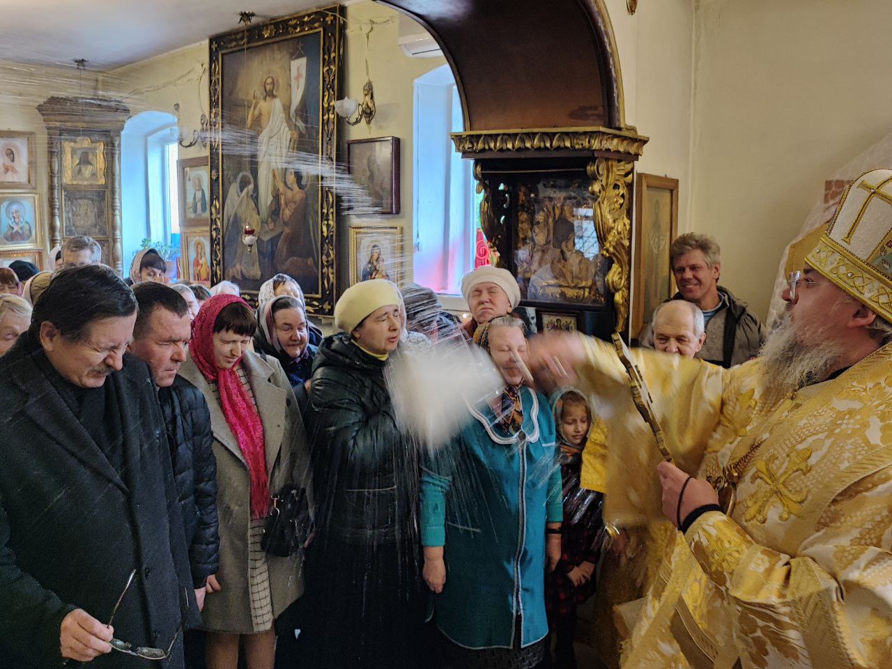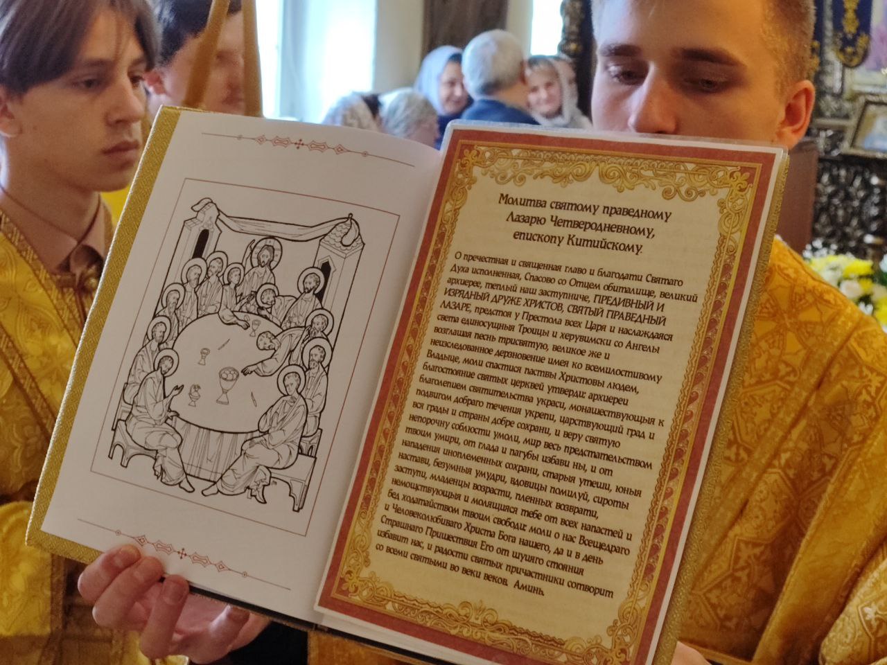 По отпусте литургии священнослужители совершили праздничный молебен пред образом святого праведного Лазаря, а затем, вознеся молитву святому, владыка обратился к богомольцам с проповедью.