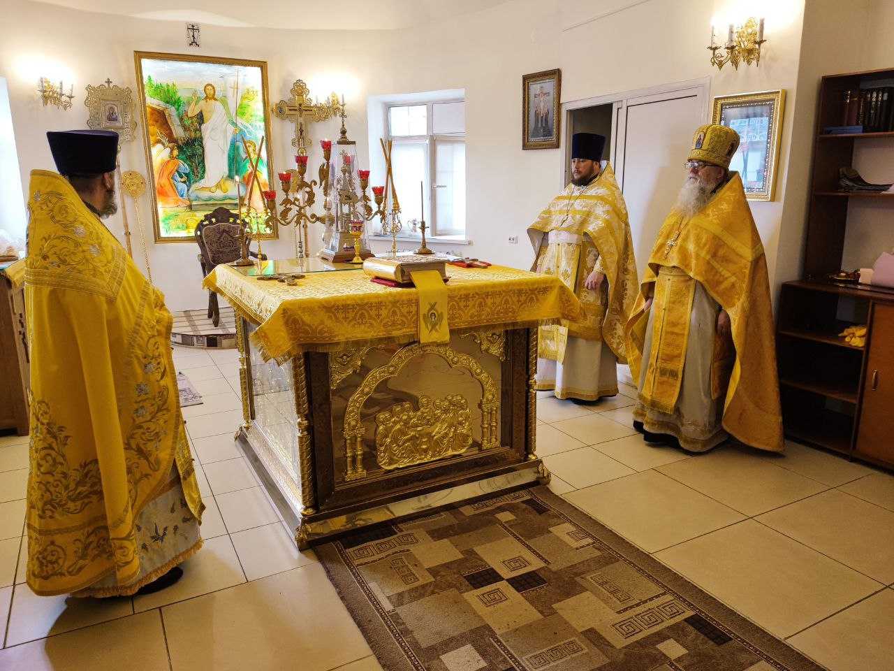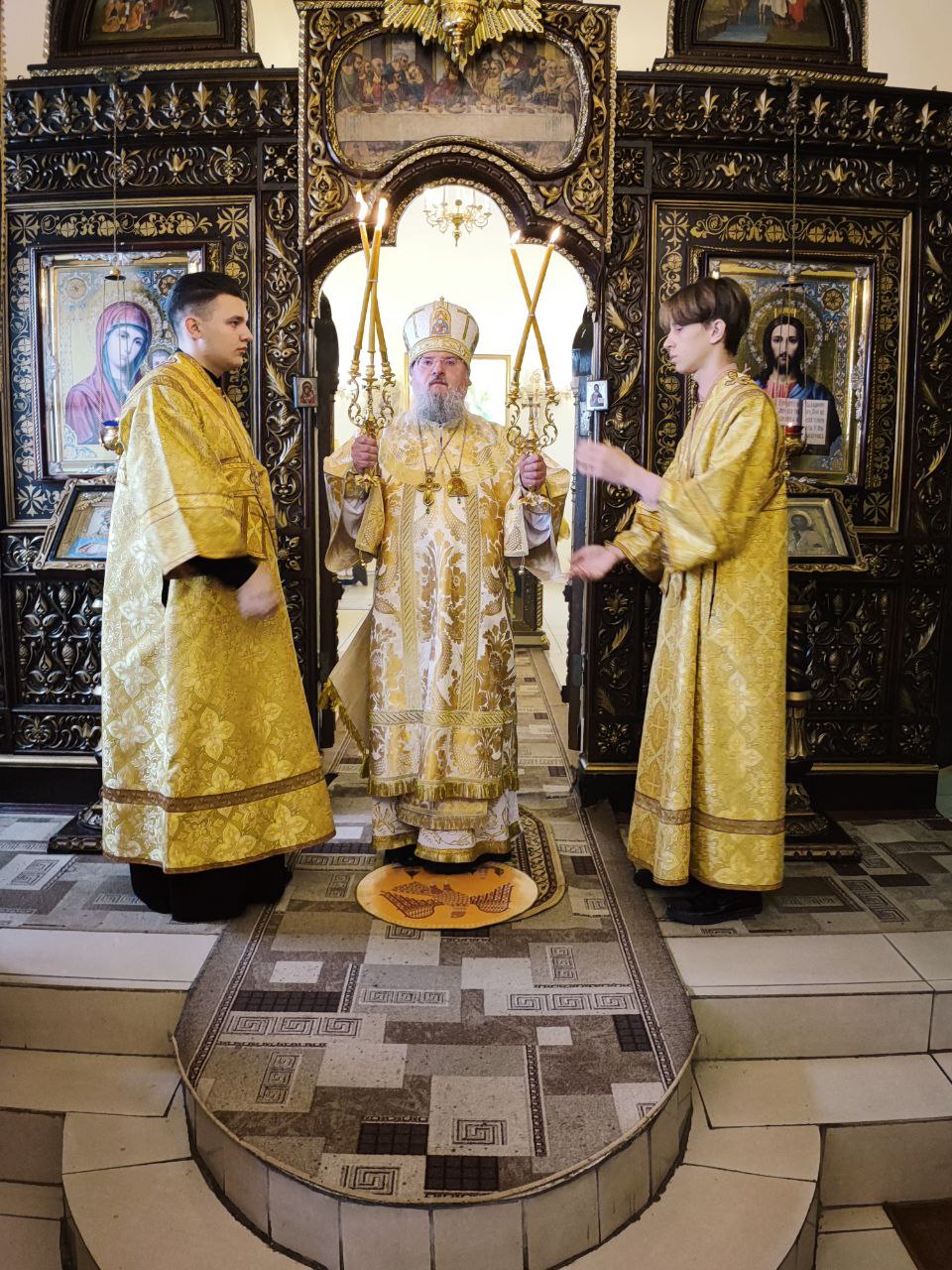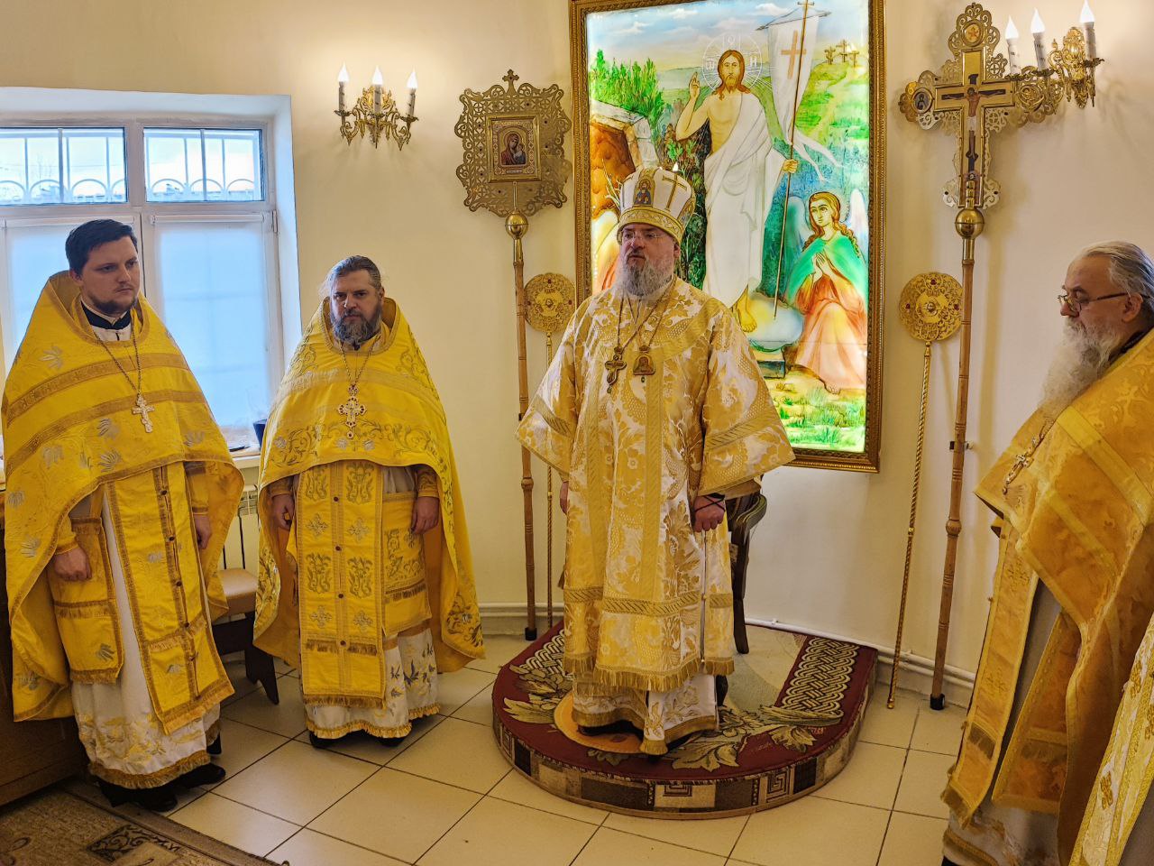 Архипастырю сослужили: благочинный округа протоиерей Алексий Жиганов, настоятель Лазаревского храма протоиерей Михаил Карпенко, протоиерей Антоний Хатунцев, иерей Иоанн Майоров, иерей Георгий Краснов, диакон Евгений Ковригин и иеродиакон Лука (Старостин).