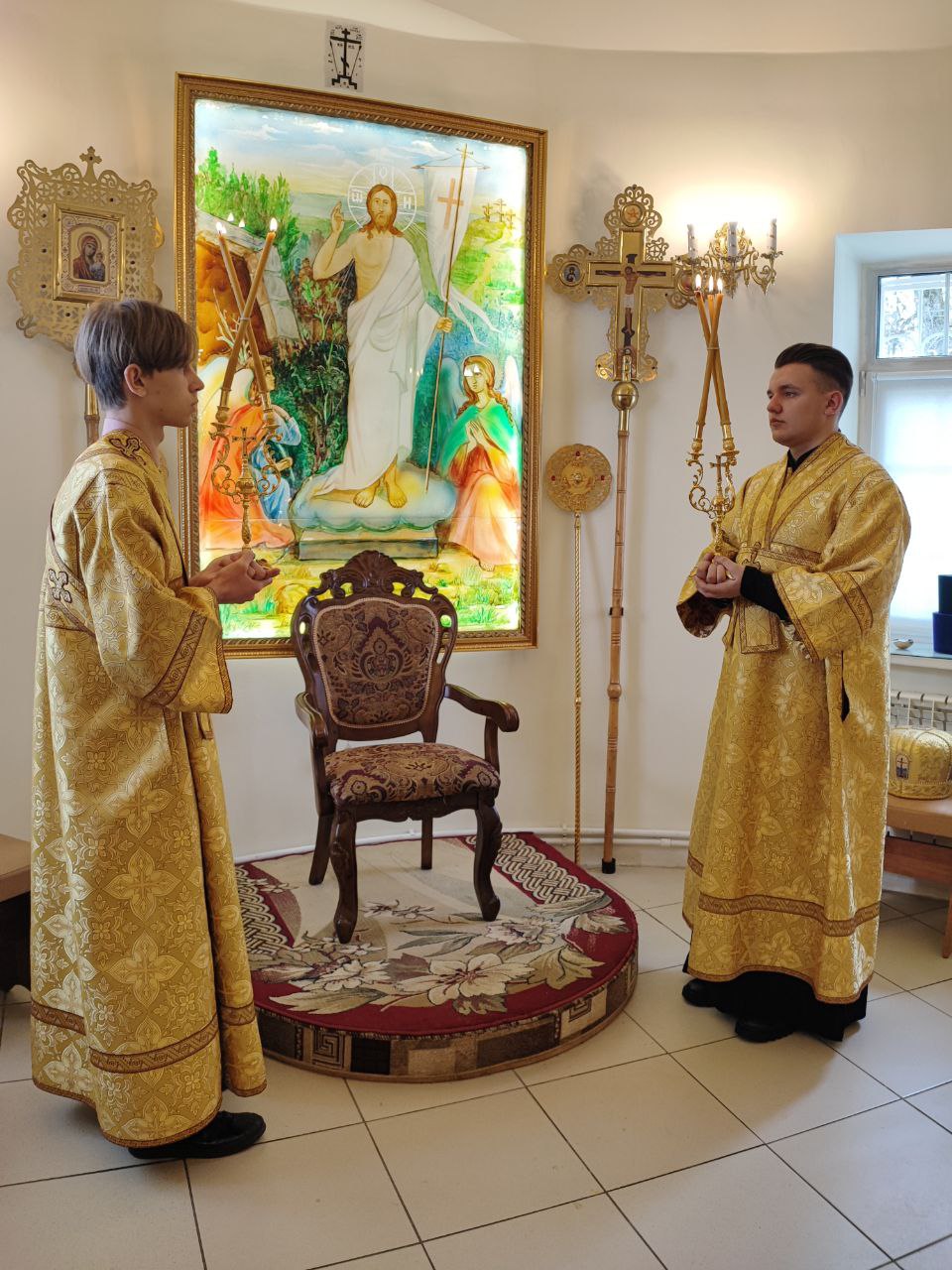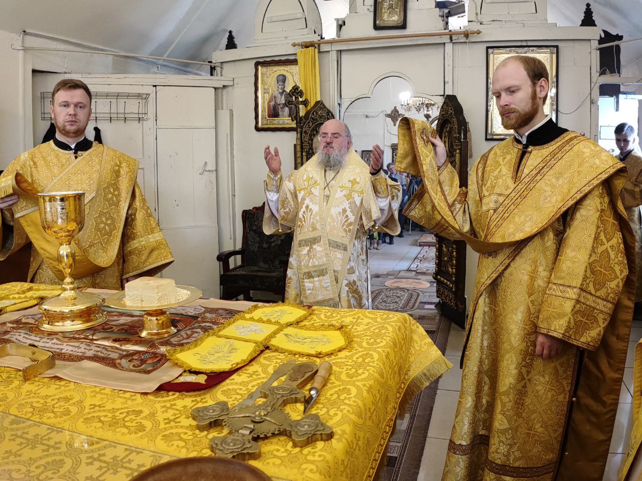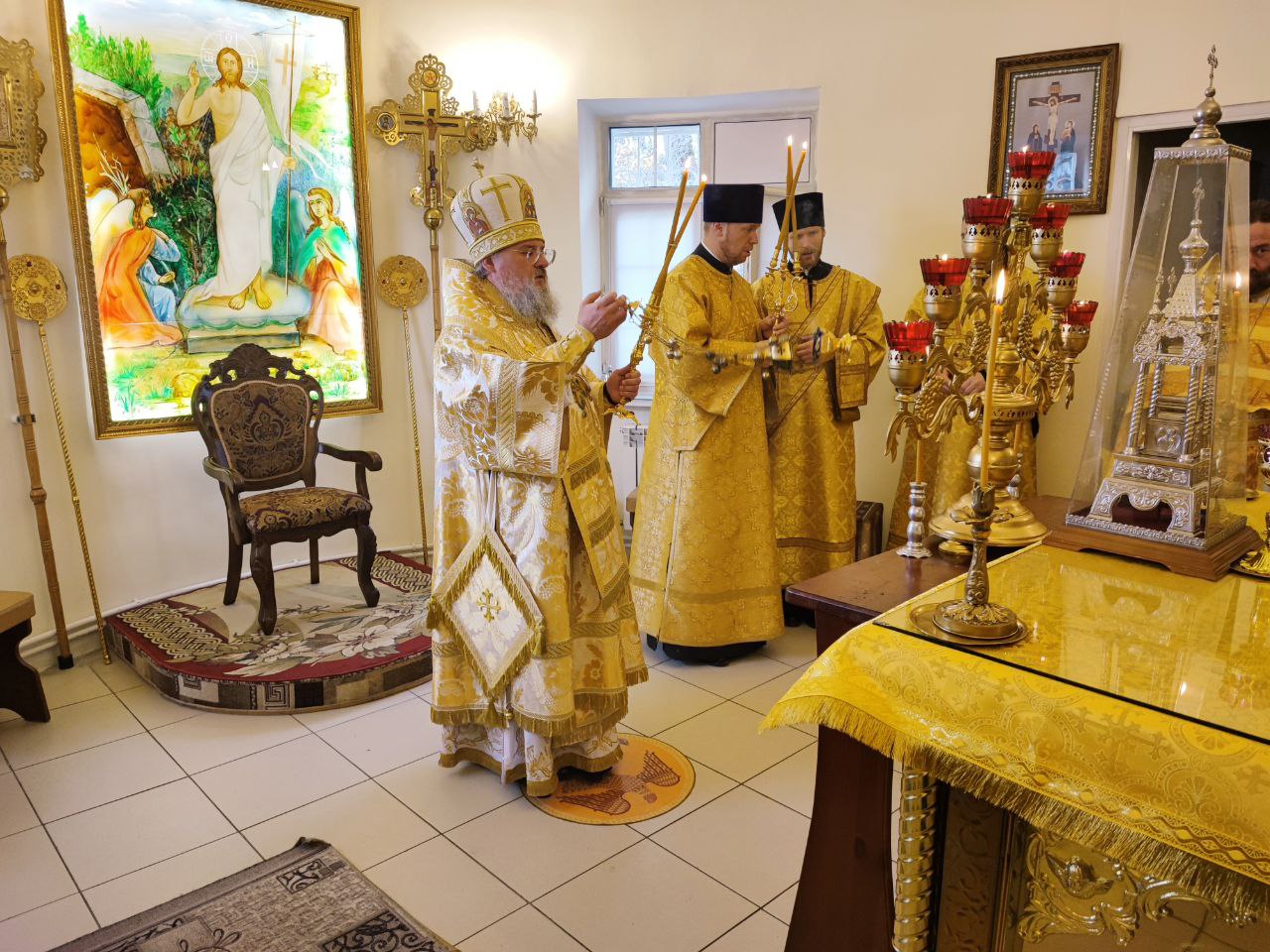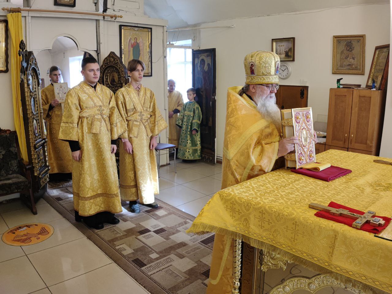 Архипастырю сослужили: благочинный округа протоиерей Алексий Жиганов, настоятель Лазаревского храма протоиерей Михаил Карпенко, протоиерей Антоний Хатунцев, иерей Иоанн Майоров, иерей Георгий Краснов, диакон Евгений Ковригин и иеродиакон Лука (Старостин).