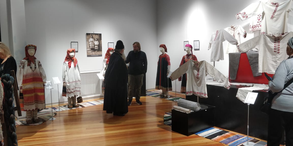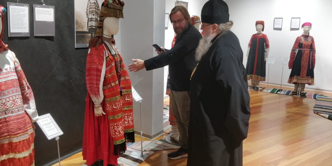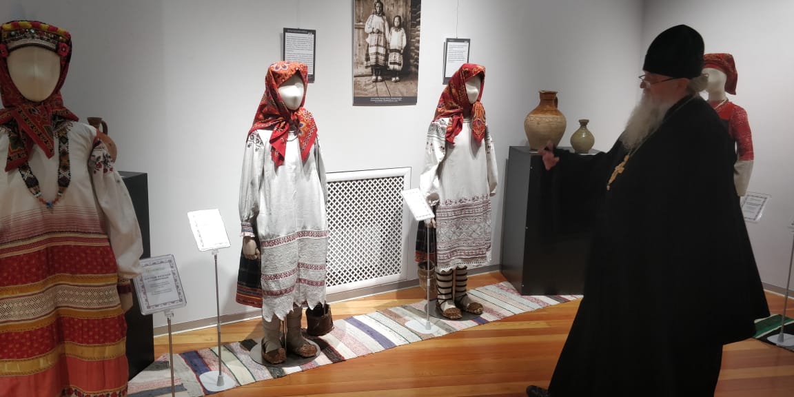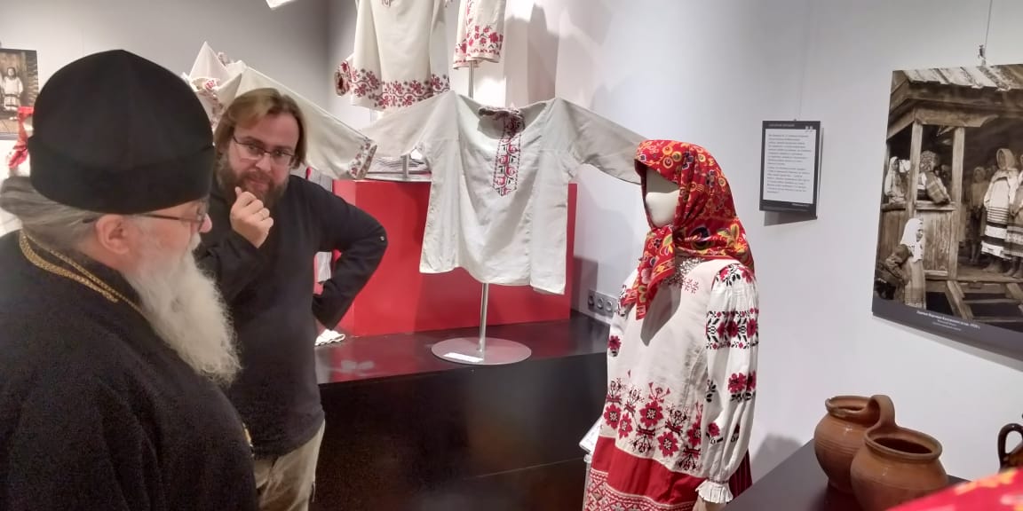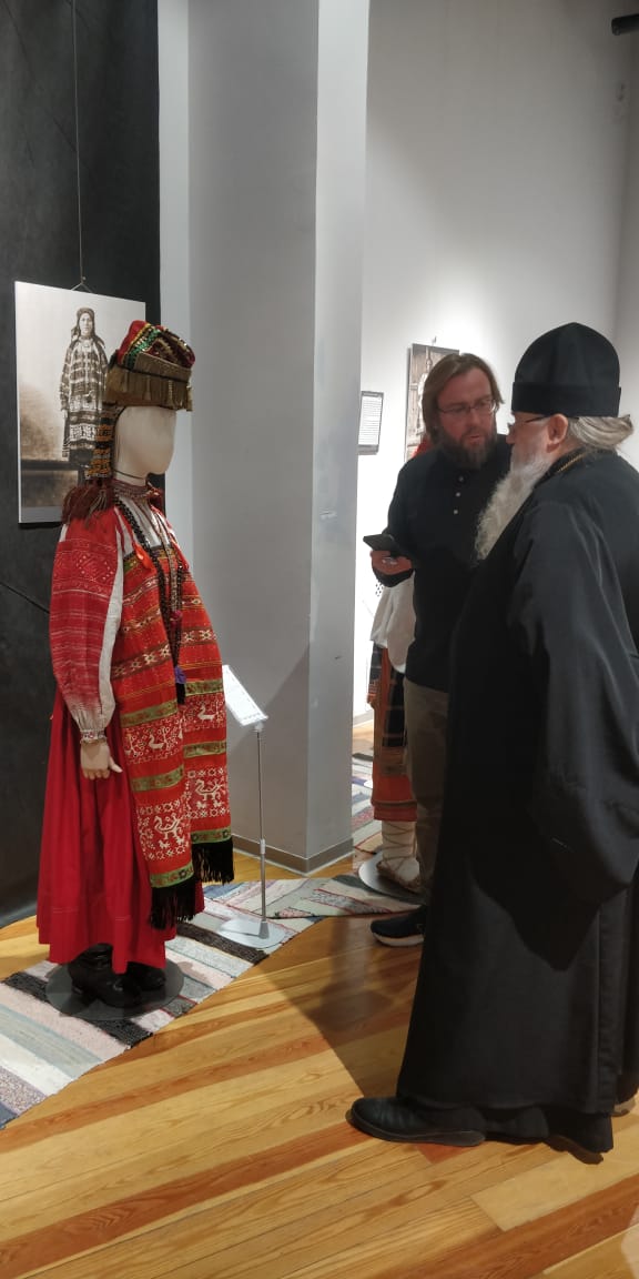 В этот же день отец Алексий посетил еще одну выставку по народным костюмам, организованную в Доме народного творчества и кино «Центральный».