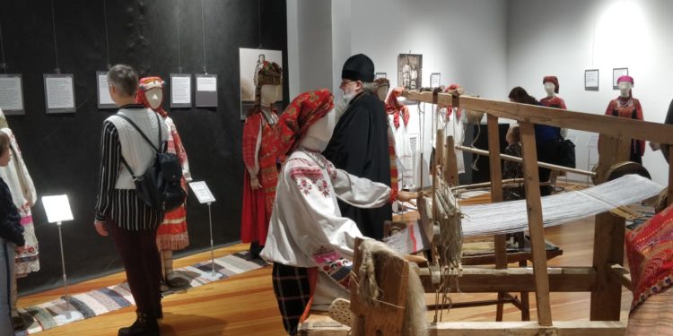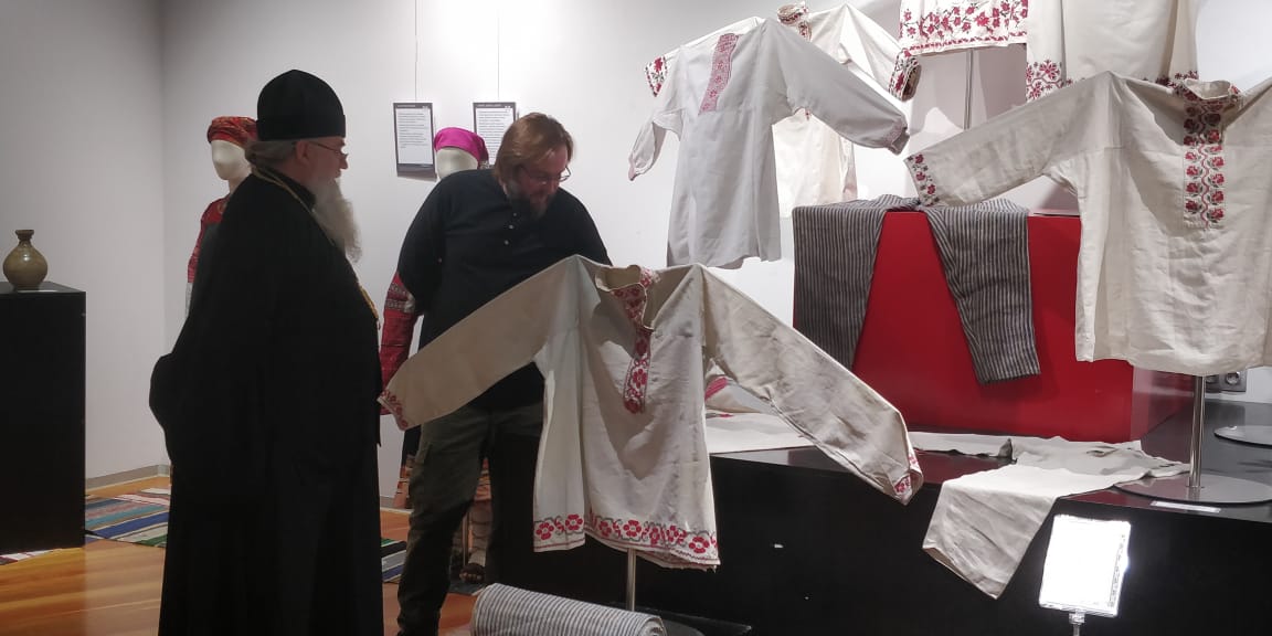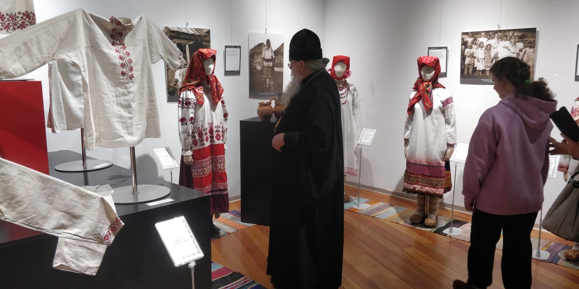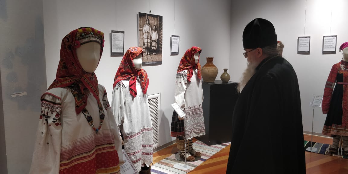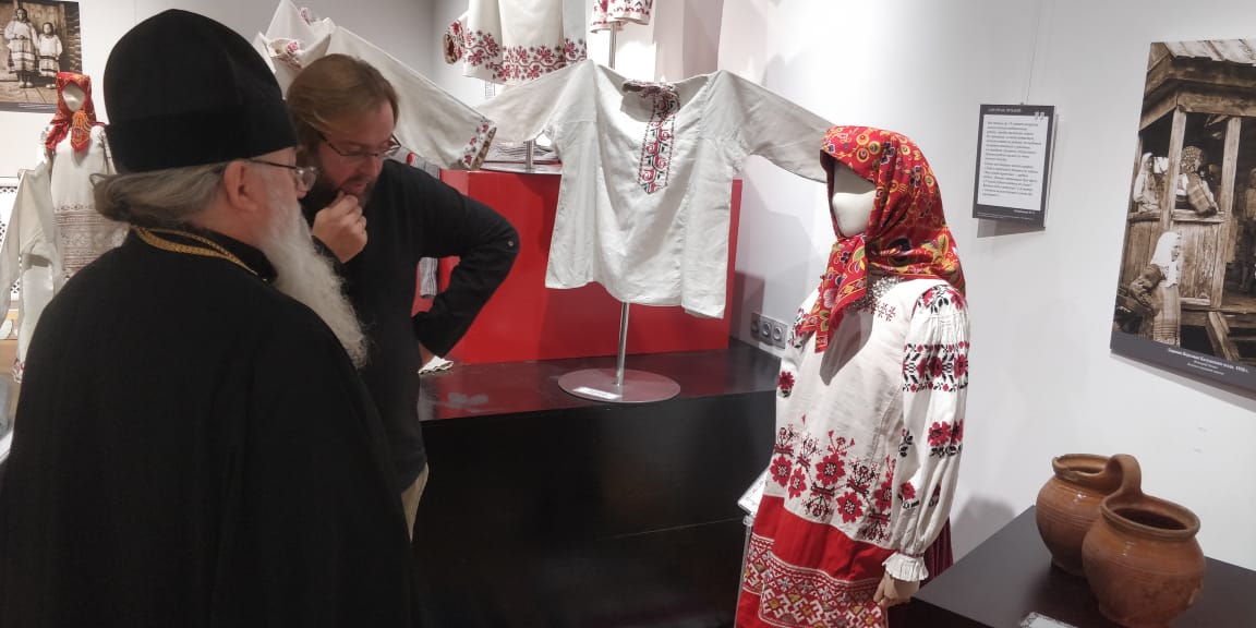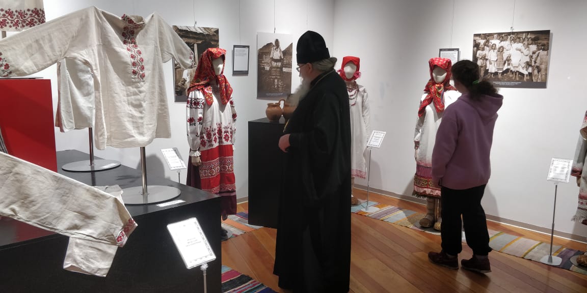 В этот же день отец Алексий посетил еще одну выставку по народным костюмам, организованную в Доме народного творчества и кино «Центральный».