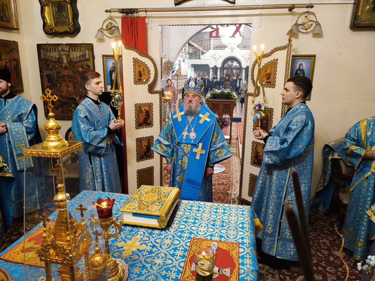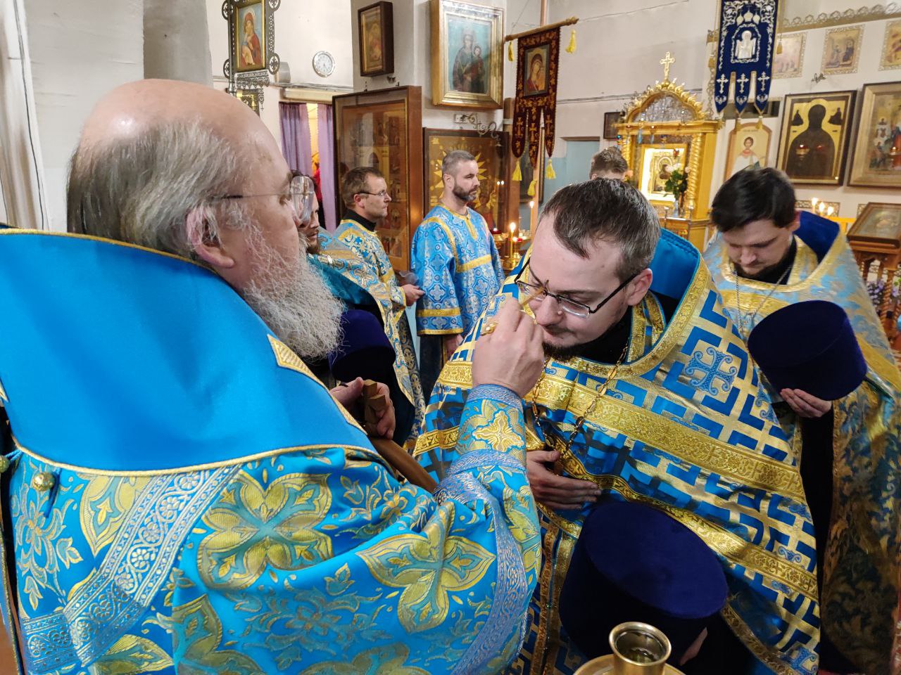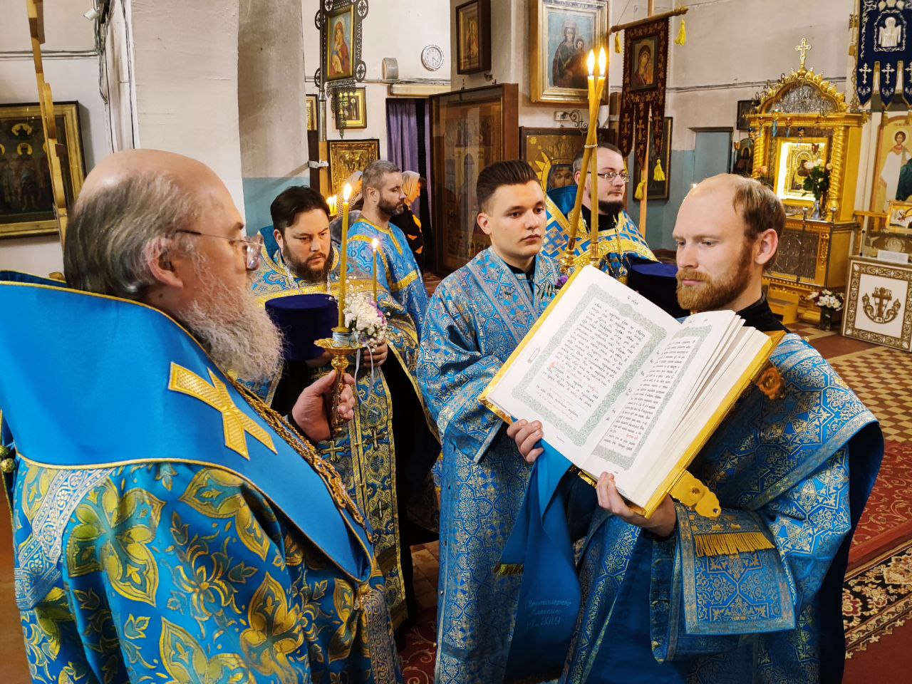 Архипастырю сослужили: настоятель собора, духовник епархии митрофорный протоиерей Алексий Жиганов, протоиерей Антоний Хатунцев, протоиерей Михаил Карпенко, иерей Алексий Сначев, иерей Виктор Кулаков, иерей Иоанн Майоров, диакон Евгений Ковригин, диакон Андрей Соколов и иеродиакон Лука (Старостин).