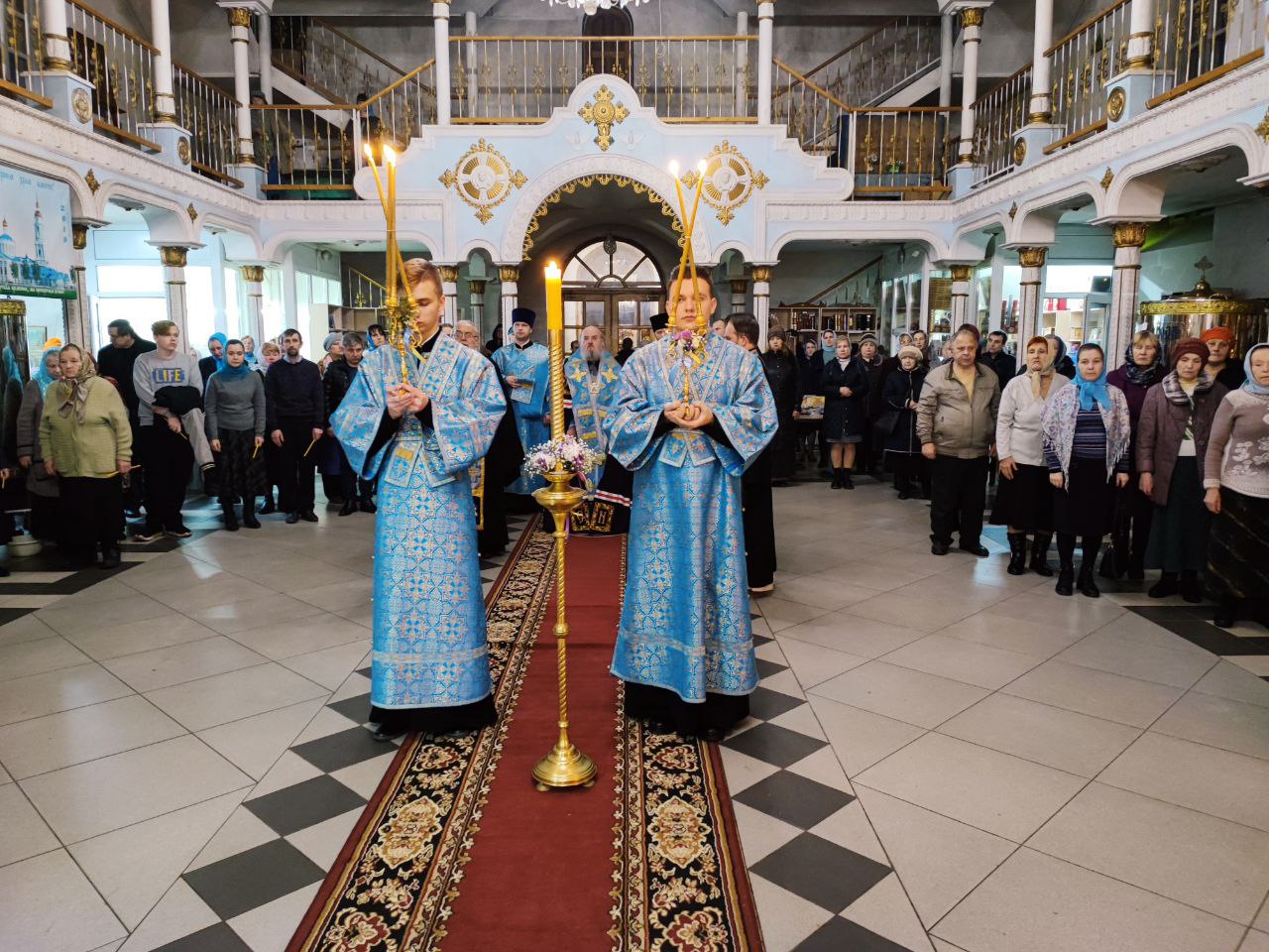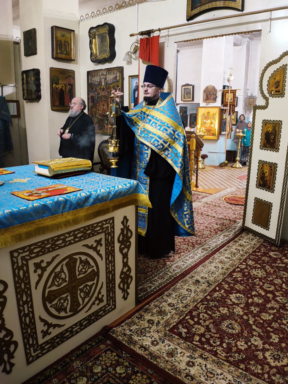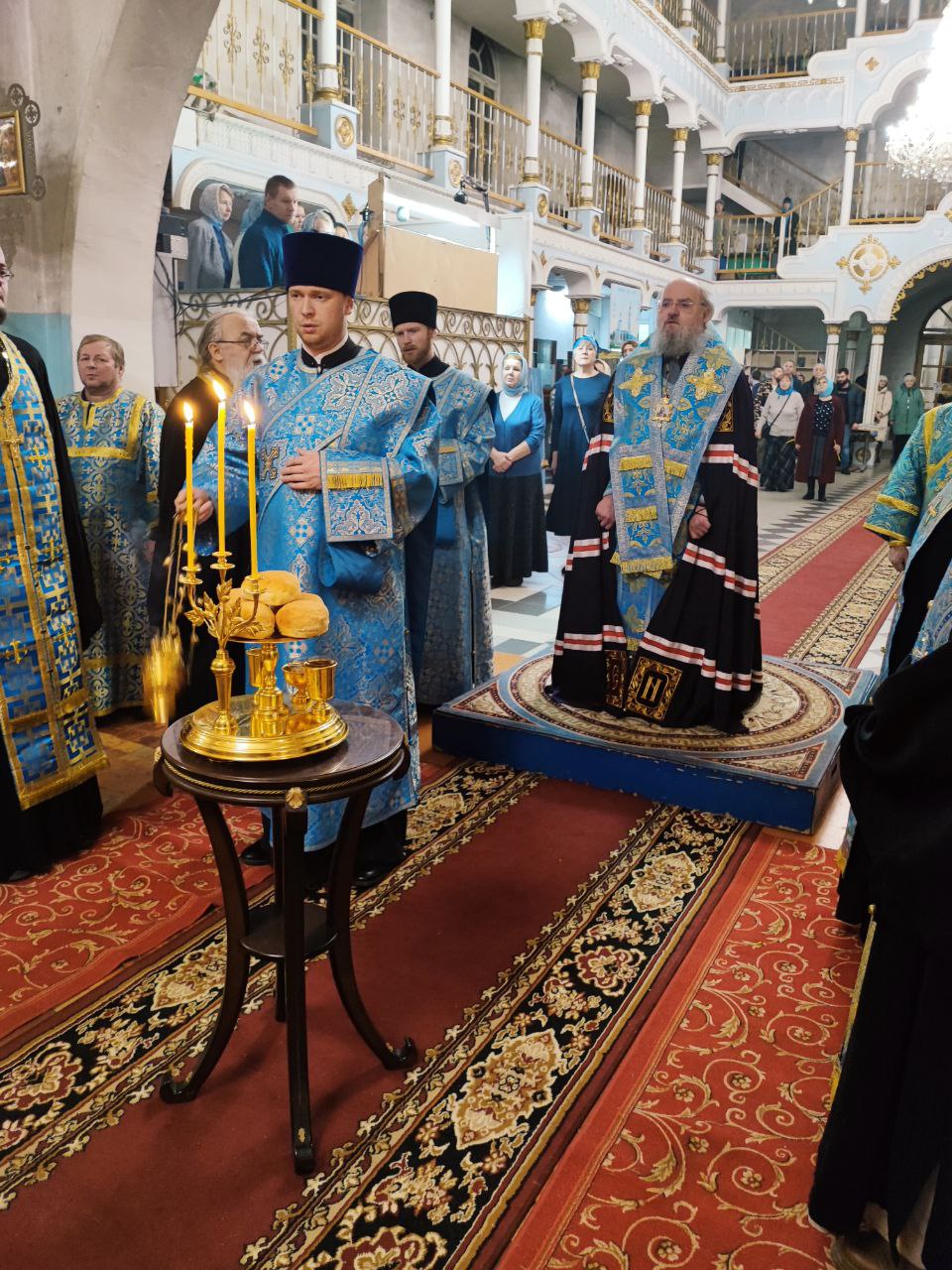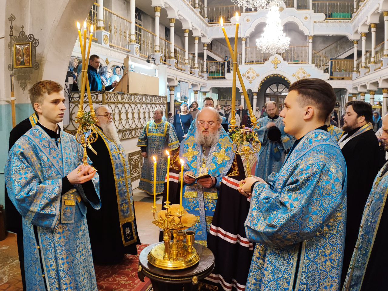Архипастырю сослужили: настоятель собора, духовник епархии митрофорный протоиерей Алексий Жиганов, протоиерей Антоний Хатунцев, протоиерей Михаил Карпенко, иерей Алексий Сначев, иерей Виктор Кулаков, иерей Иоанн Майоров, диакон Евгений Ковригин, диакон Андрей Соколов и иеродиакон Лука (Старостин).