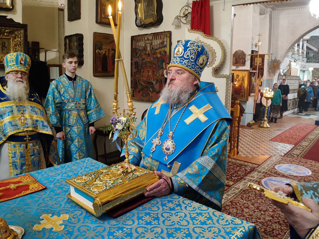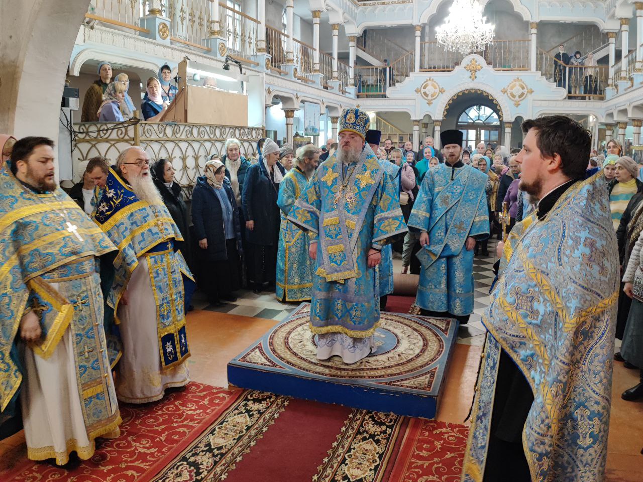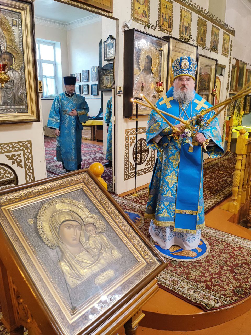 После отпуста литургии было совершено молебное пение Божией Матери перед Ее образом «Казанская». Завершая богослужение, владыка обратился к богомольцам с архипастырским словом.