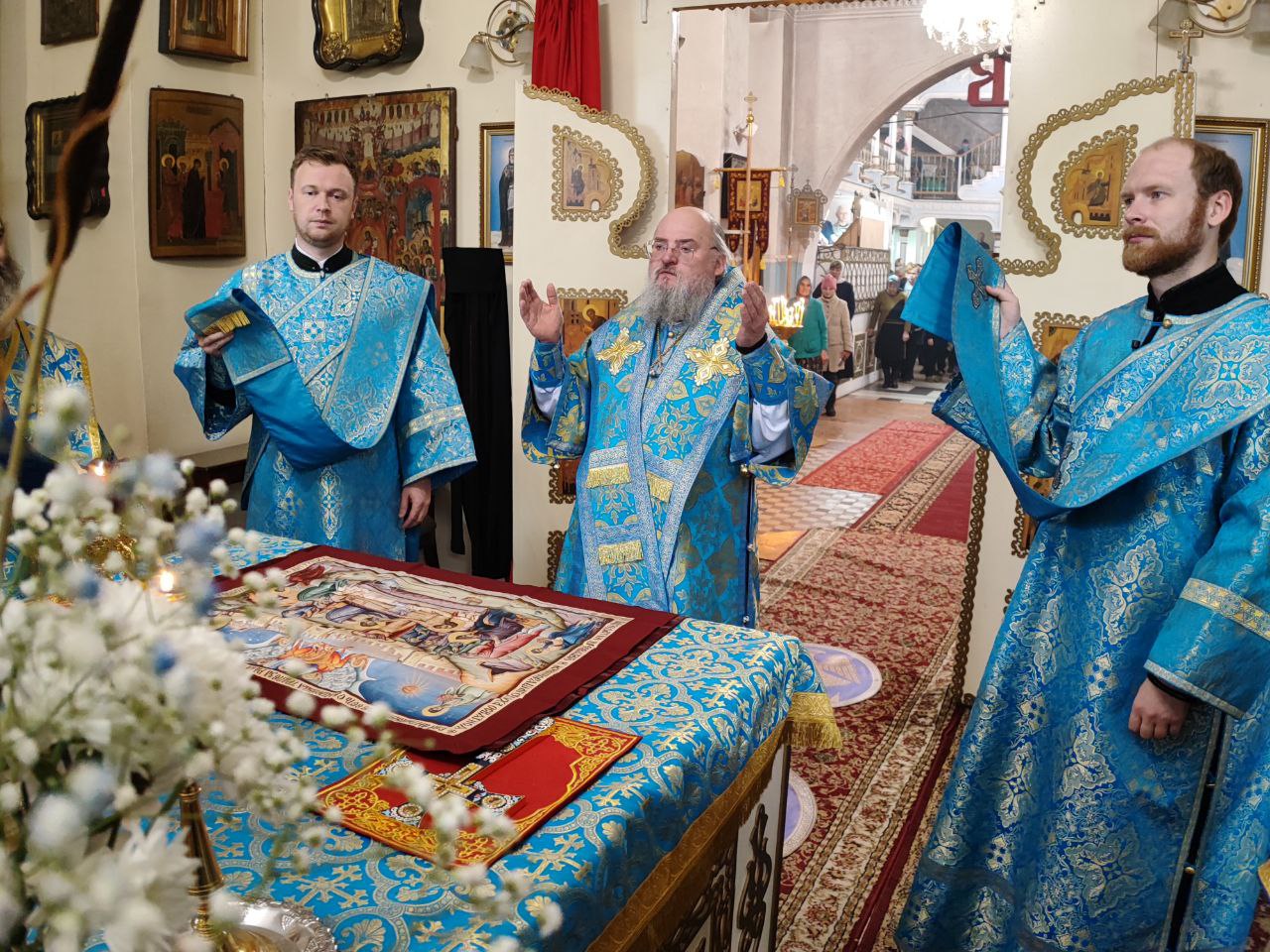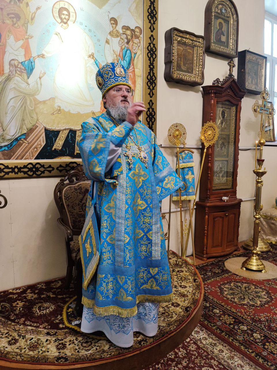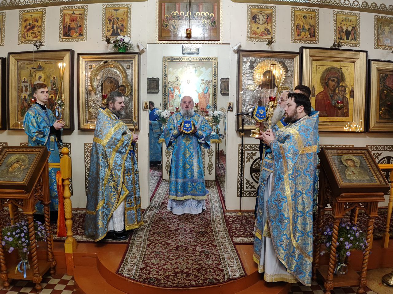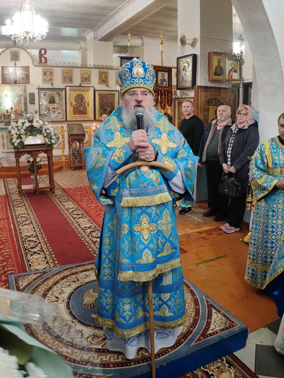После отпуста литургии было совершено молебное пение Божией Матери перед Ее образом «Казанская». Завершая богослужение, владыка обратился к богомольцам с архипастырским словом.