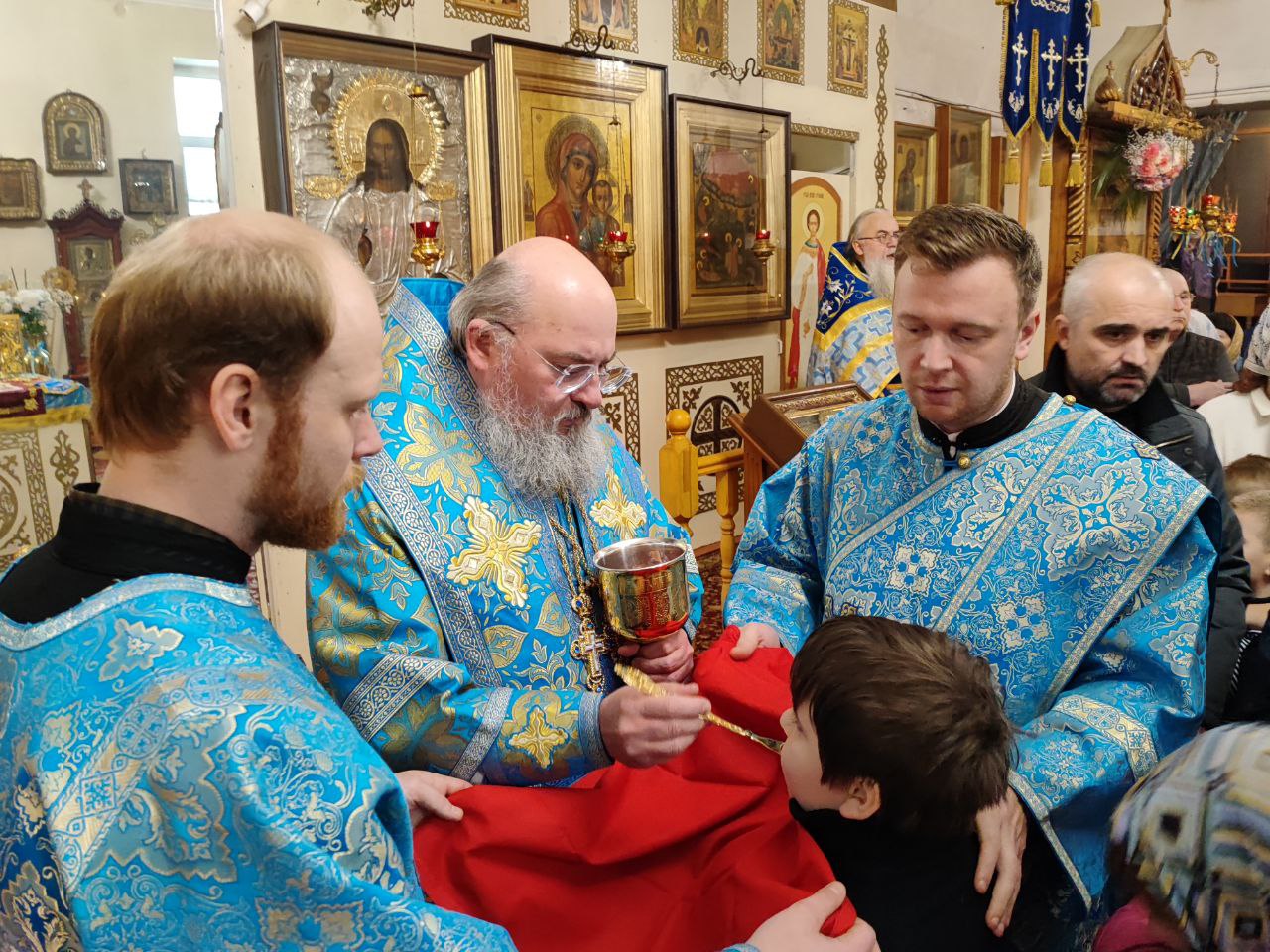 За богослужением были вознесены особые прошения и молитва о Святой Руси. По благословению Святейшего Патриарха Московского и всея Руси Кирилла эта сугубая молитва совершается во всех храмах Русской Православной Церкви за каждым богослужением.
