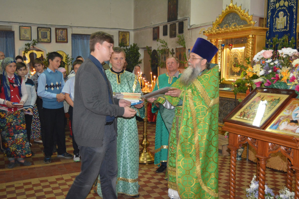 По сложившейся доброй традиции, на молитвенную память, выпускникам были подарены Молитвословы. Благодарственными грамотами и подарками были отмечены учащиеся Воскресной школы за прилежное учение в прошедшем учебном году.