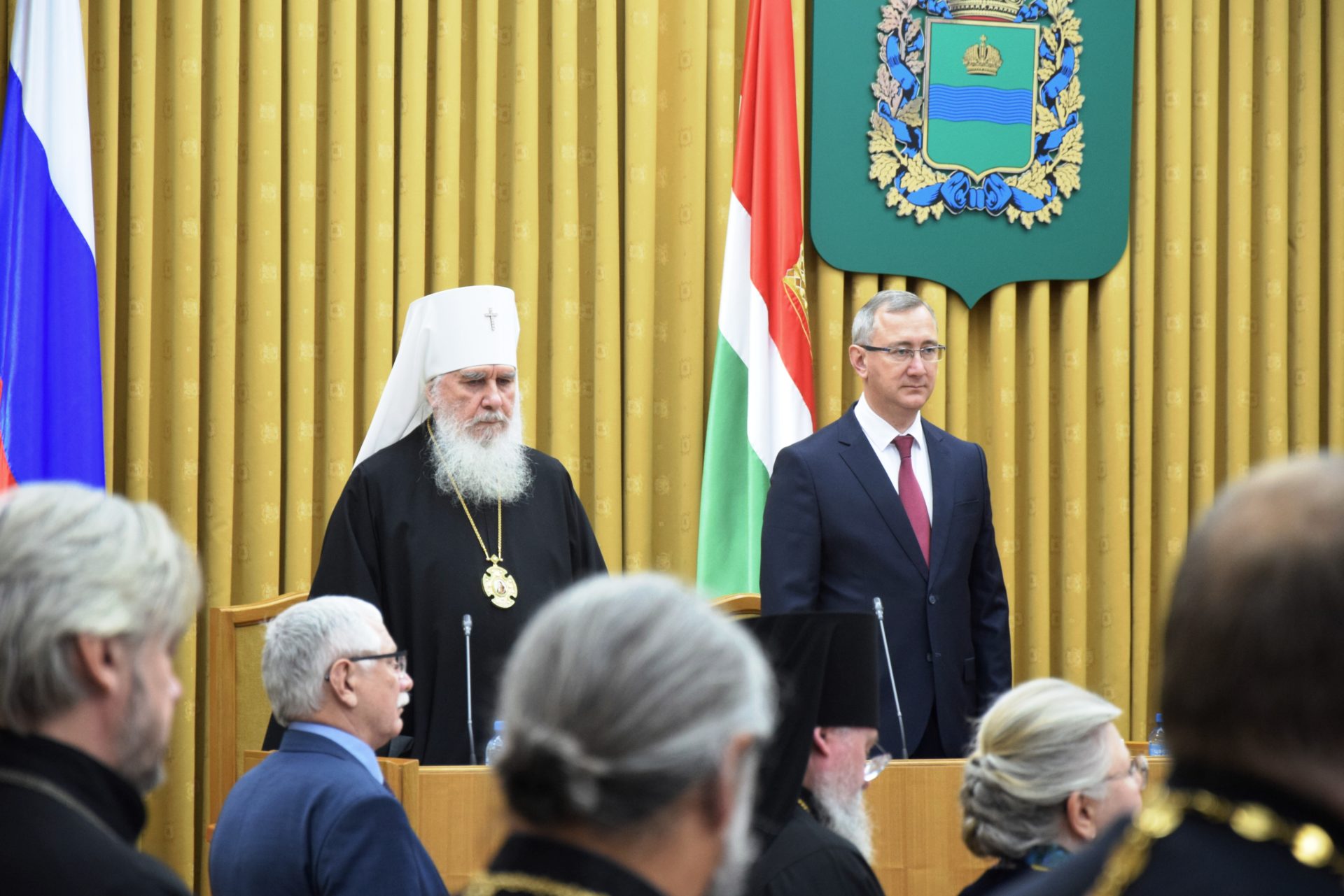 Завершилось заседание заключительными словами митрополита Калужского и Боровского Климента и Председателя Законодательного Собрания Калужской области Геннадия Станиславовича Новосельцева и совместной молитвой «Достойно есть…»