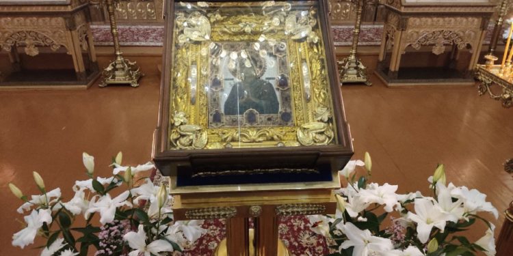11 октября в Успенский собор прибыла святыня – мироточивый образ Пресвятой Богородицы «Умягчение злых сердец» или иначе «Семистрельная» (Бачуринская).