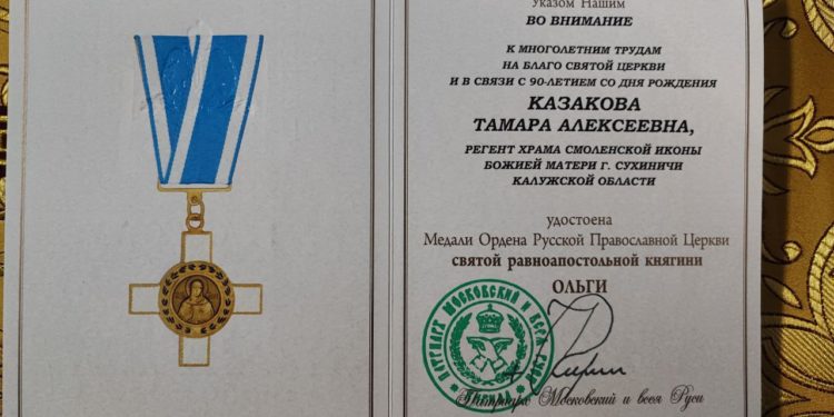 Матушка Тамара Алексеевна Казакова награждена медалью святой равноапостольной княгини Ольги
