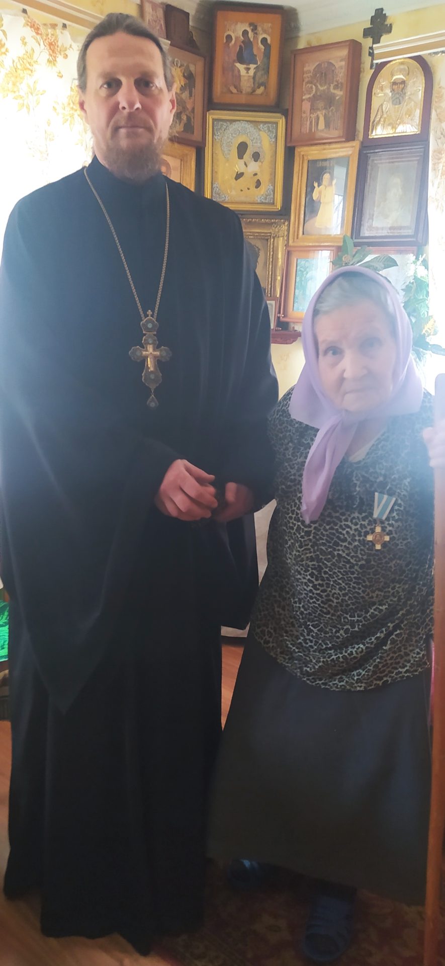 По состоянию здоровья матушка не смогла присутствовать на богослужении, хотя всей душой желала молиться в храме, поэтому награду от Святейшего Патриарха и букет цветов от владыки Никиты дома ей вручил ее сын – настоятель Смоленского прихода протоиерей Алексий Казаков.